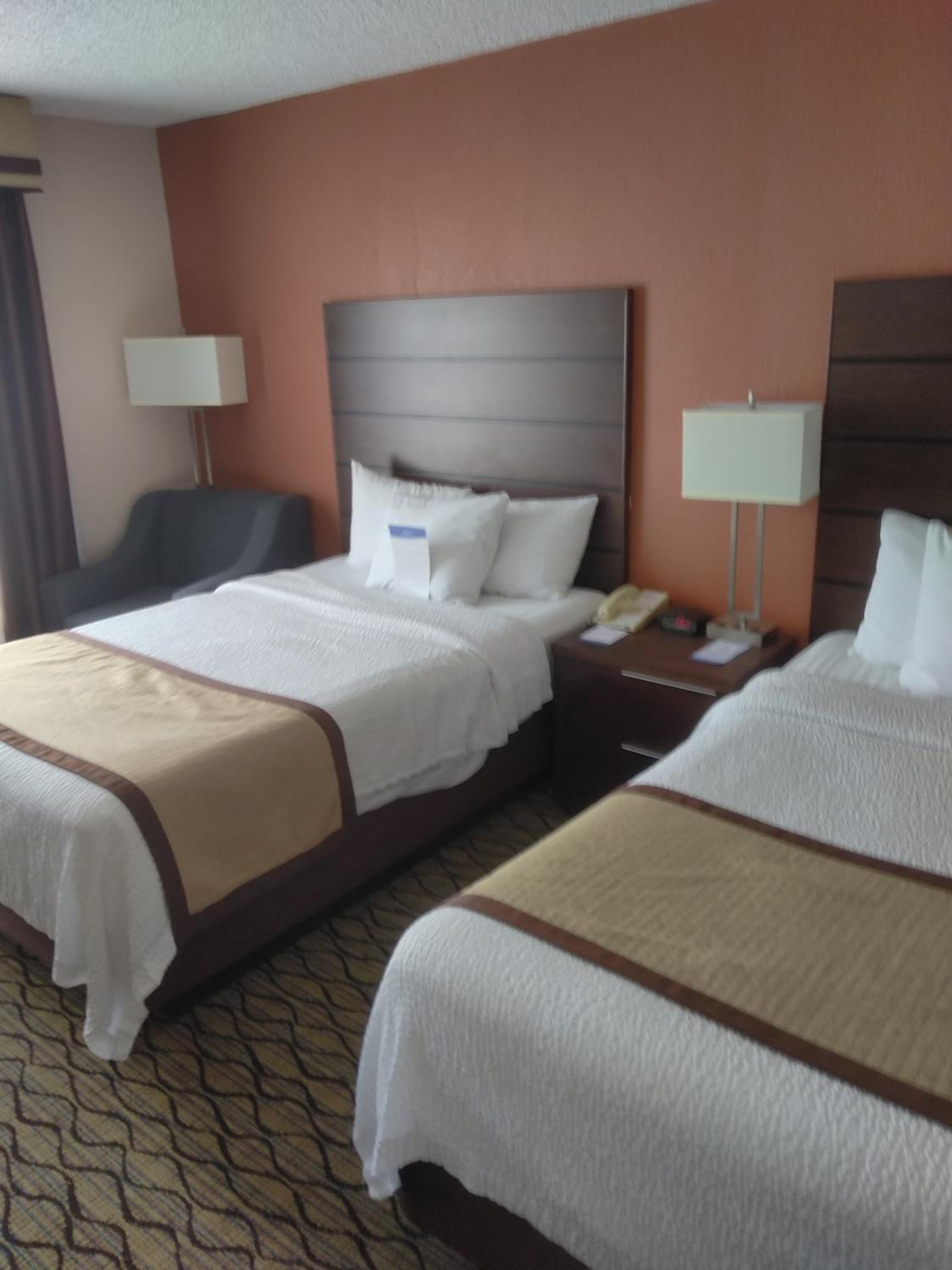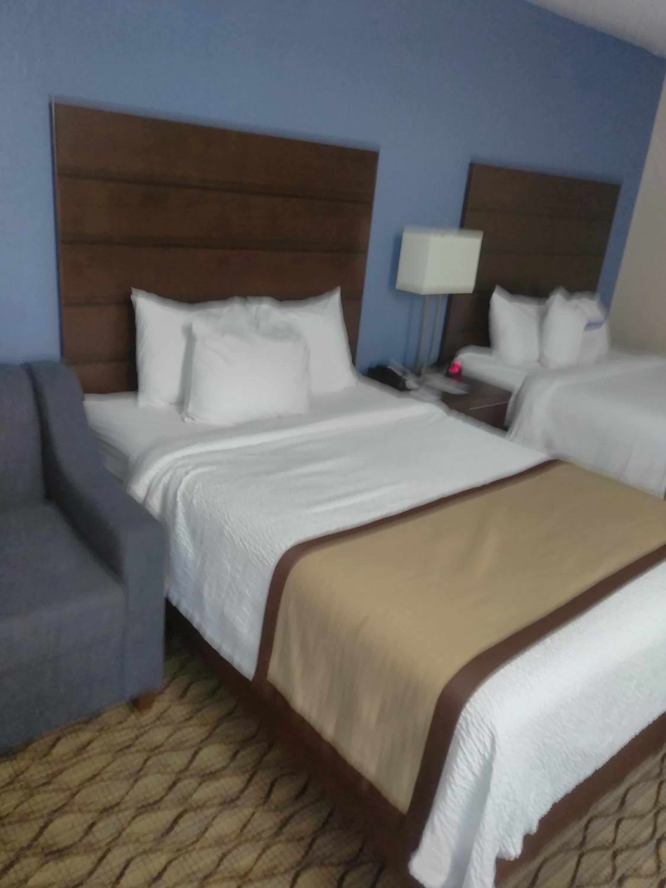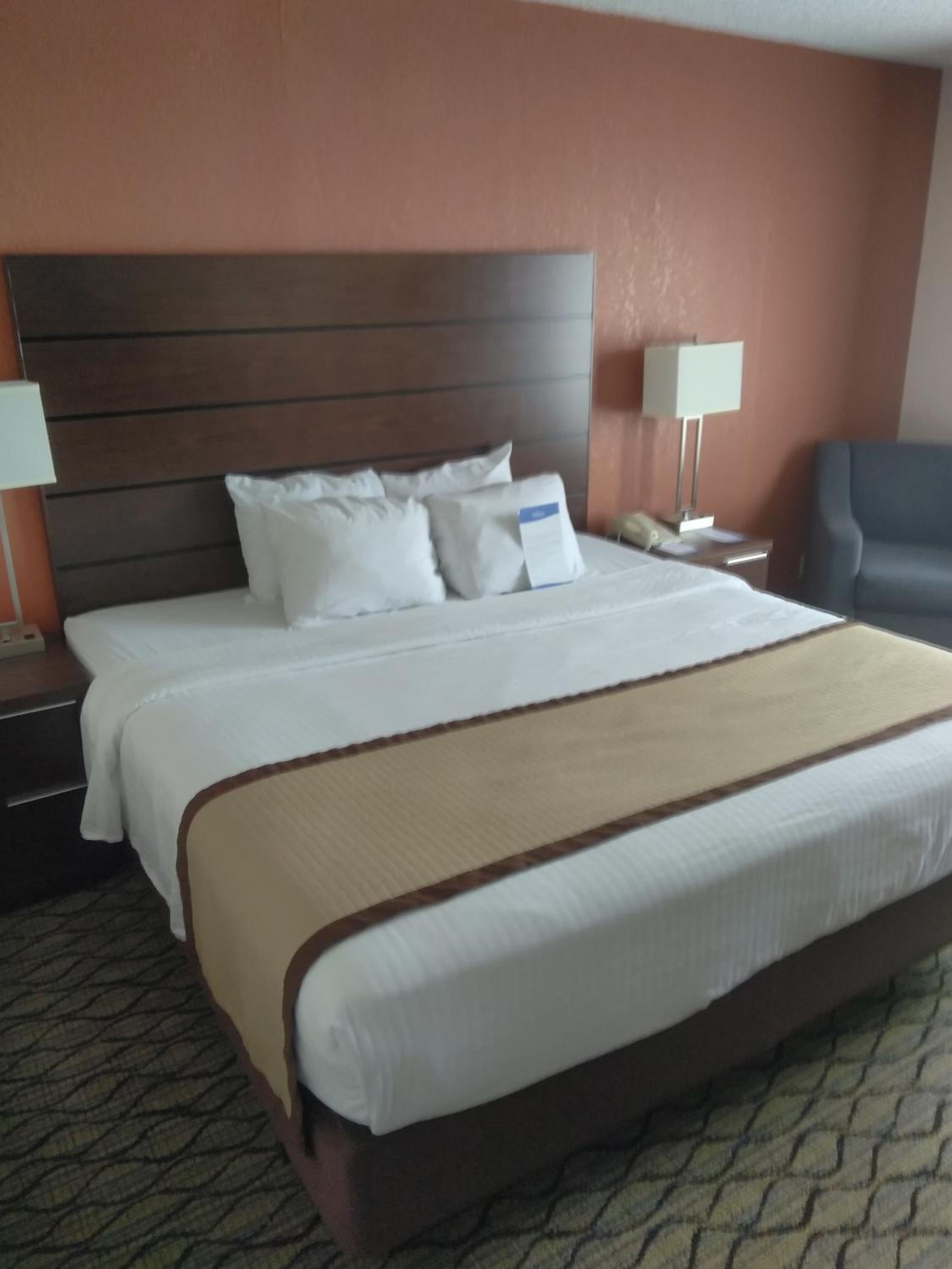 Room needs new bedding including pillows!! Room was noicy. Breakfast was poor quality.