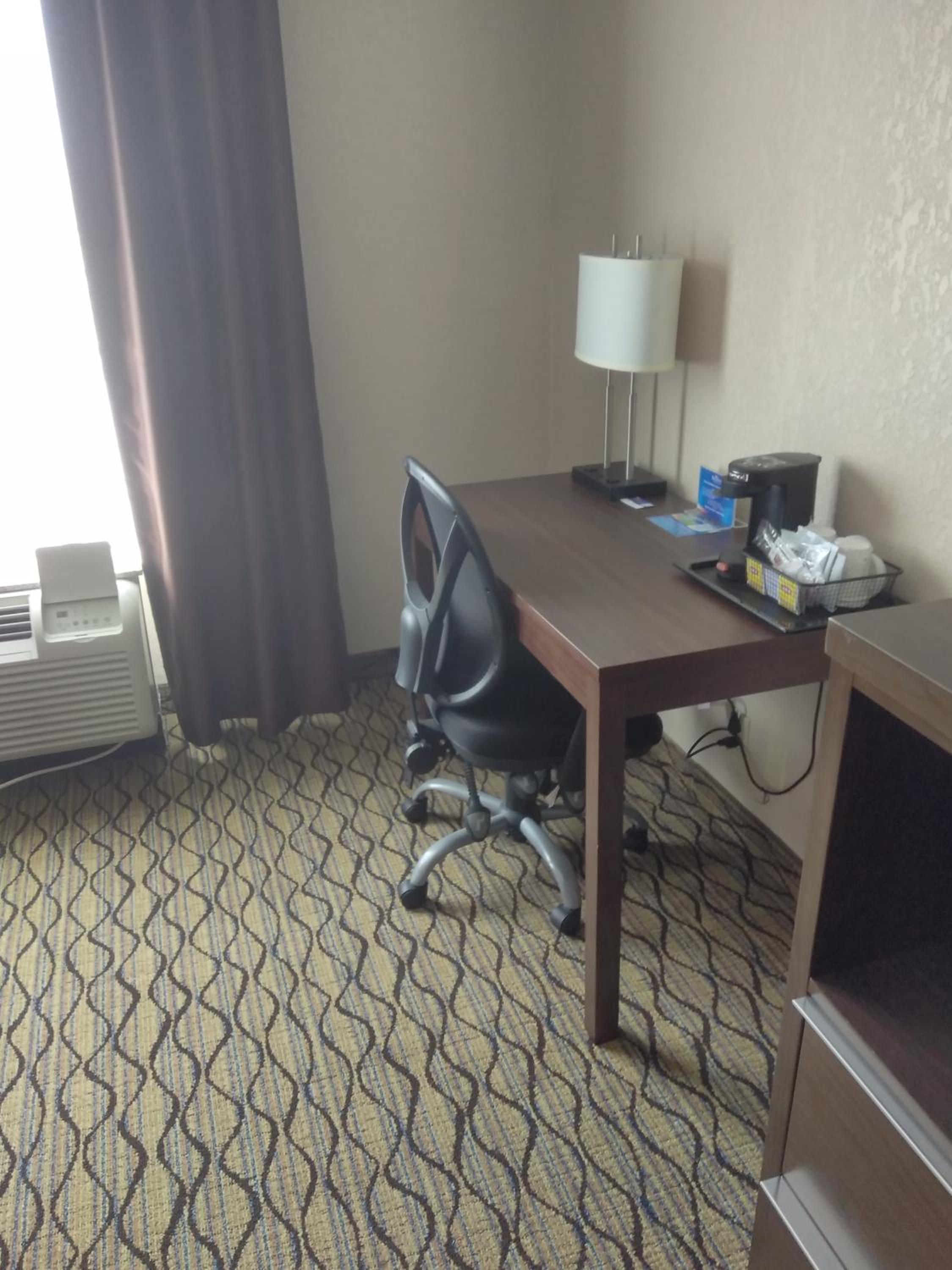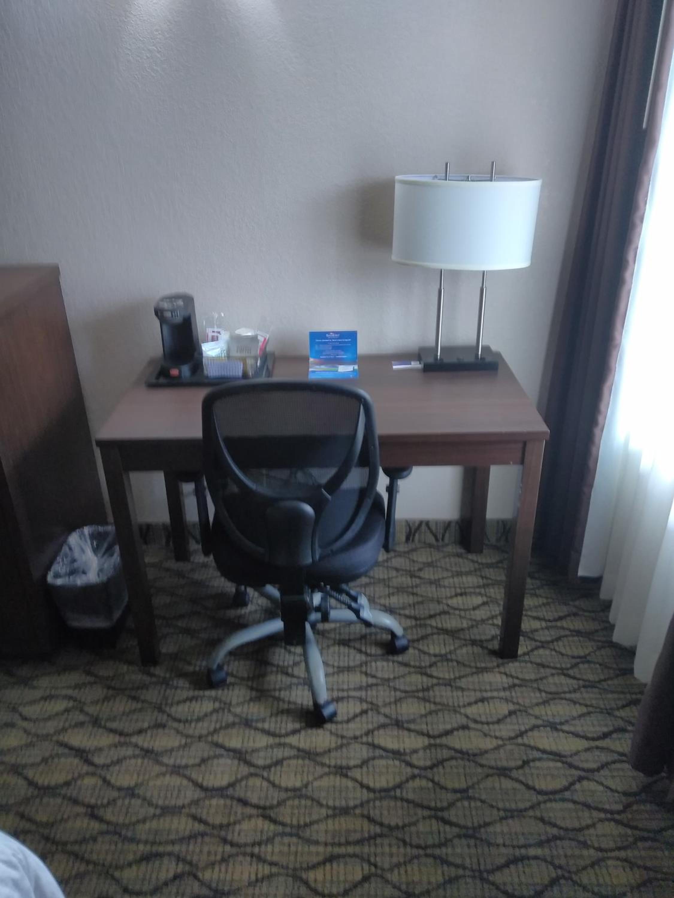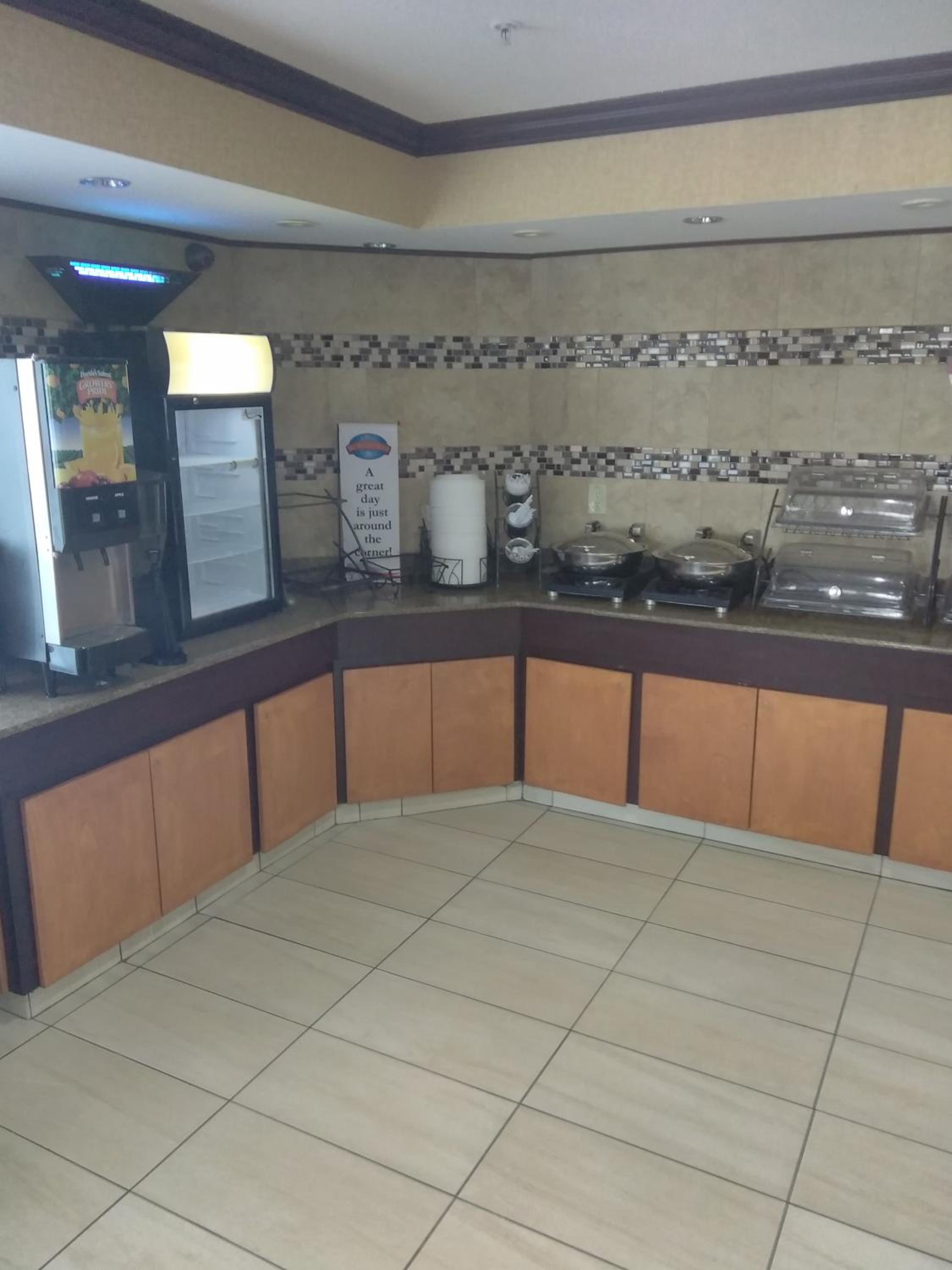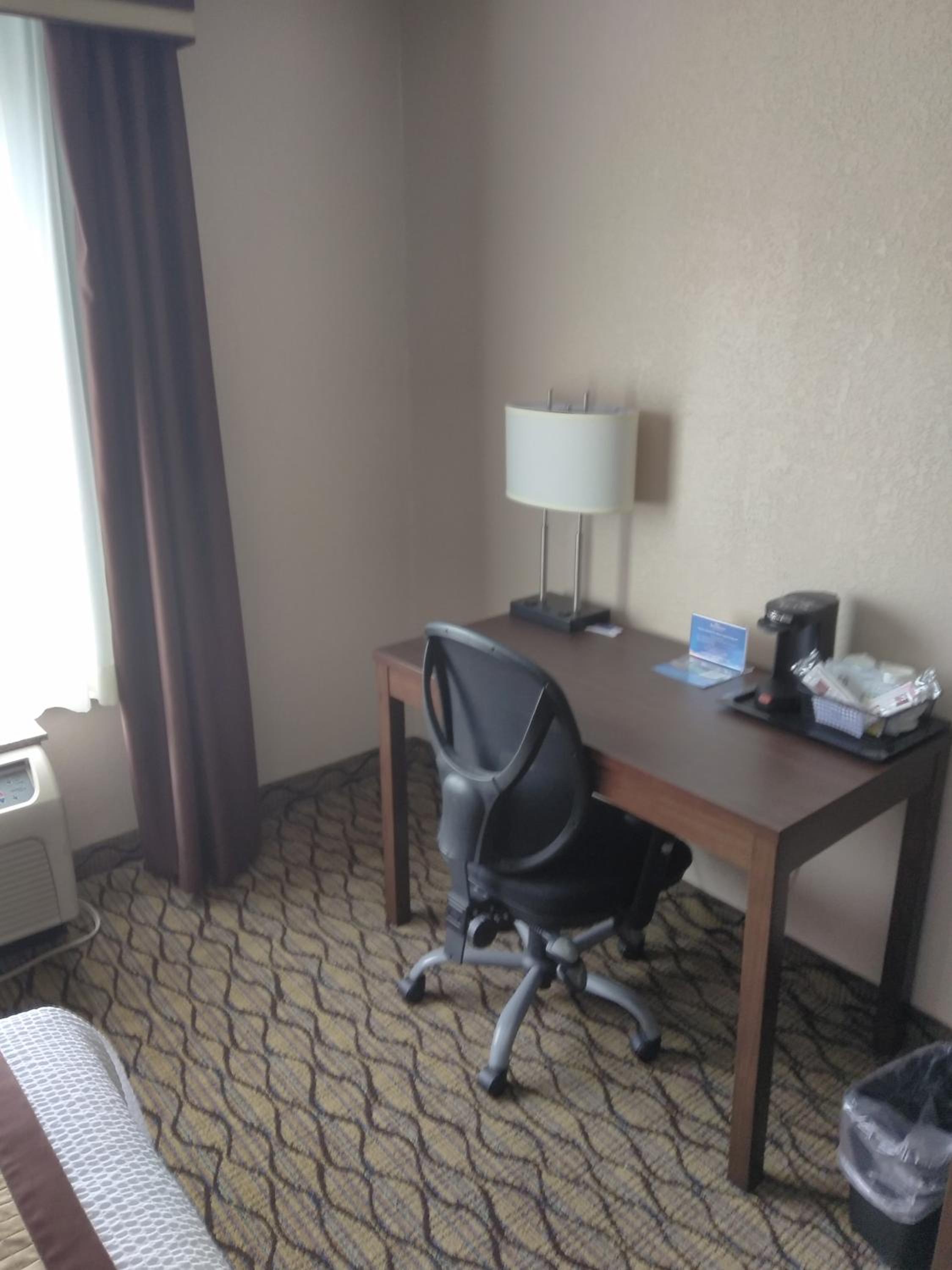 Room needs new bedding including pillows!! Room was noicy. Breakfast was poor quality.