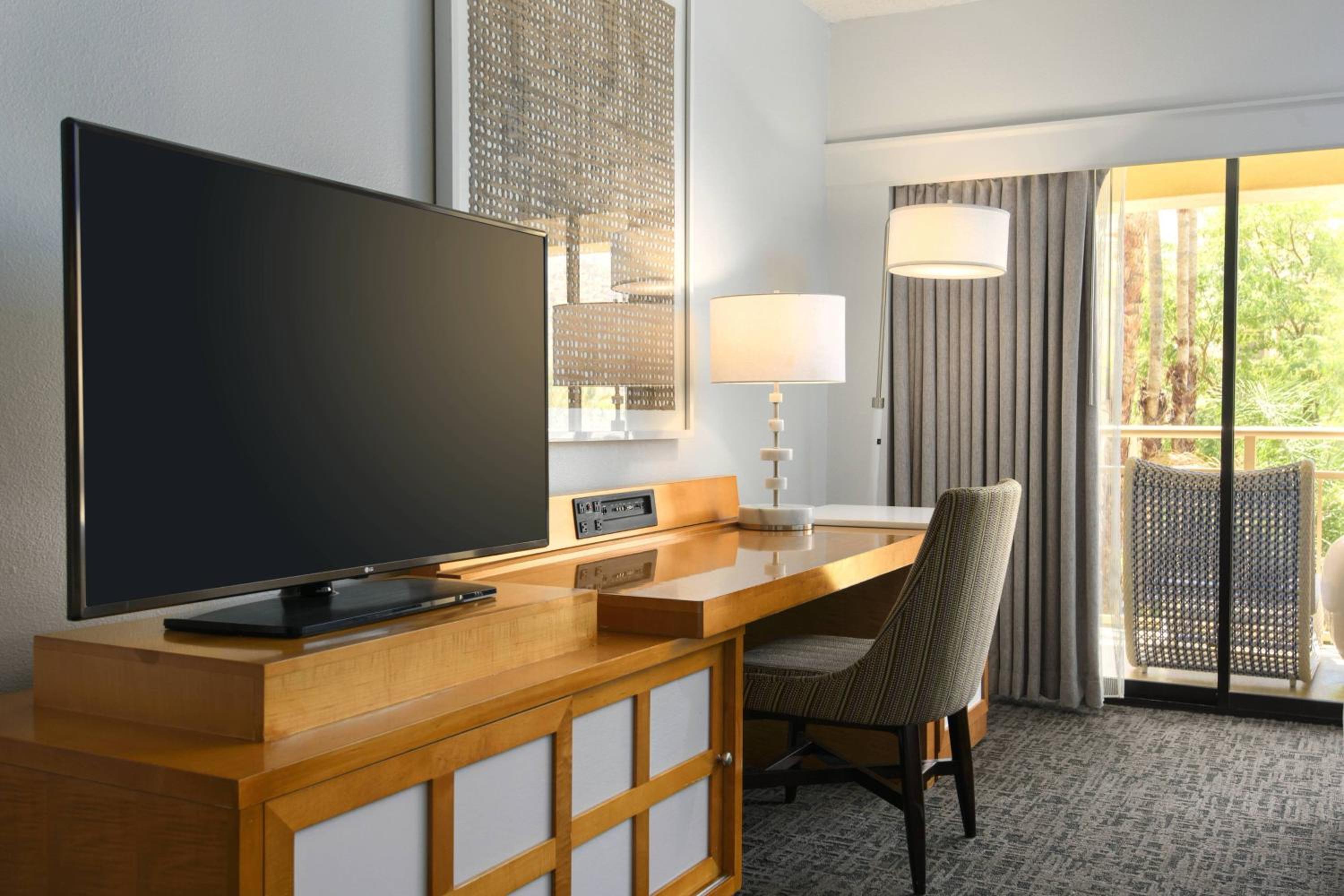 Experience modern and stylish guest rooms at Renaissance Palm Springs Hotel, complete with LCD TVs, iPod docks, and contemporary furniture. Enjoy stunning views of the San Jacinto Mountain Range from the comfort of your room, along with convenient amenities like in-room coffee makers and ironing facilities.