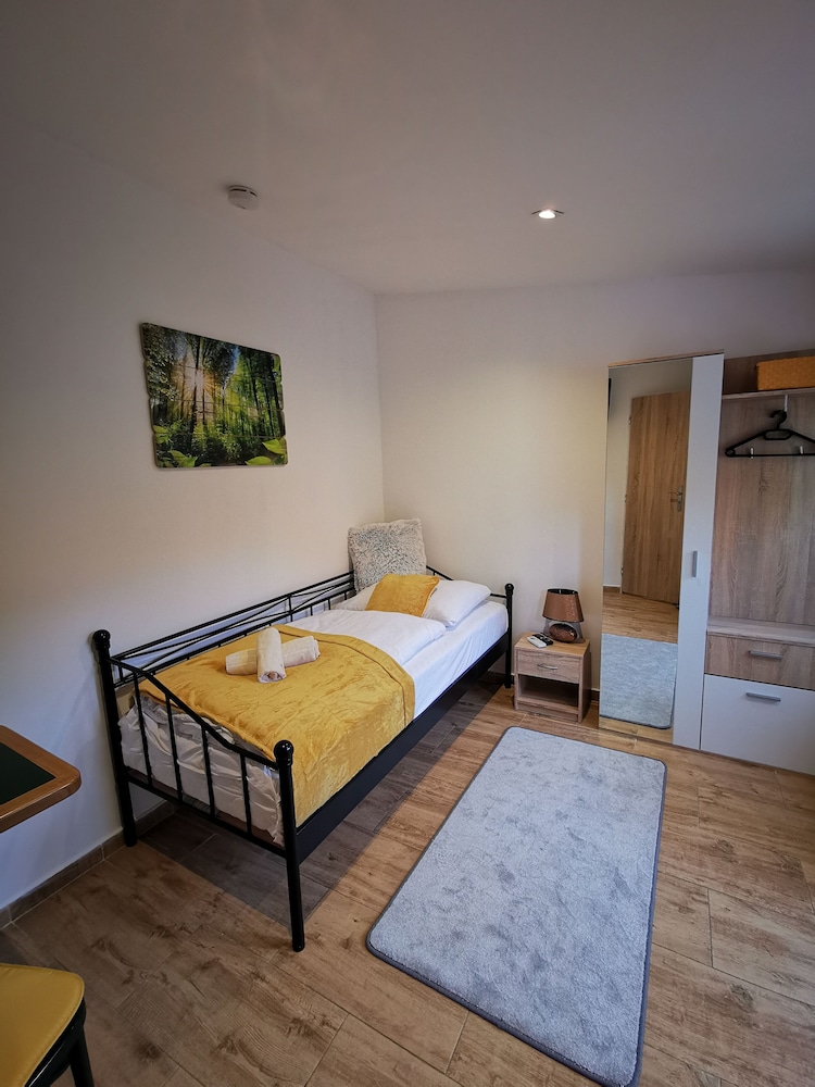 The location of the hotel is very good, also parking in front of the hotel. Unfortunately there have been spiders and other insects in the room (maybe because of the garden?) and one towel was dirty. Breakfast was ok.