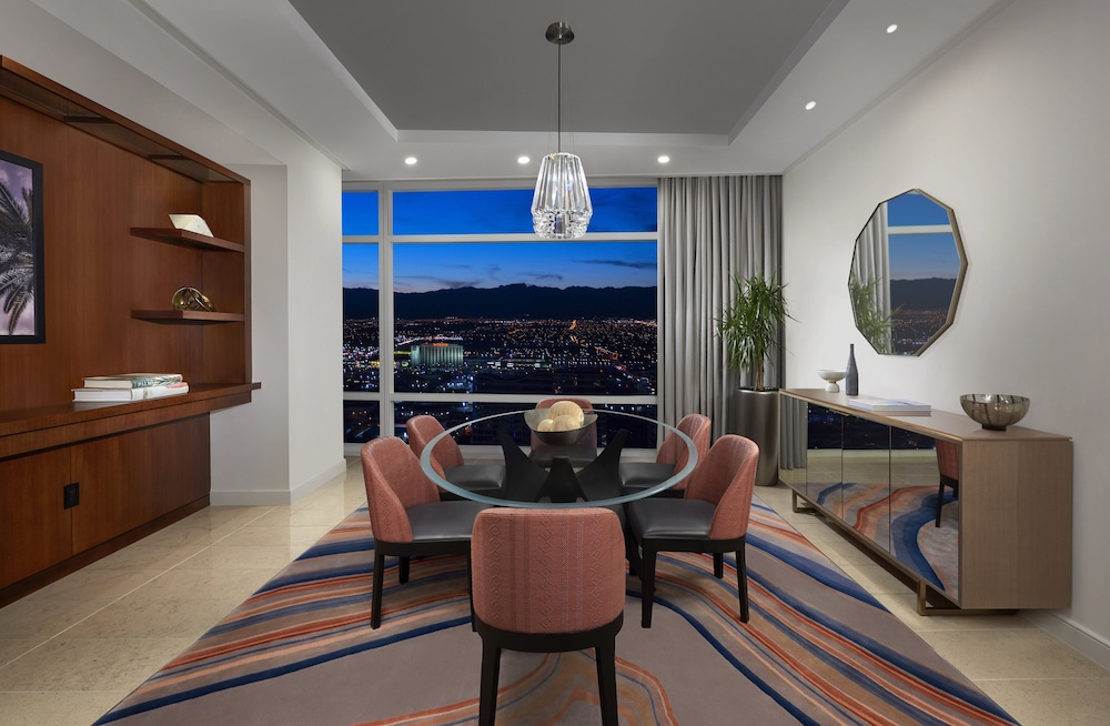 Benefit from express check-in/out, concierge services, and dry cleaning. With 51000 sq ft of event space, hosting meetings is a breeze. Your stay at ARIA Sky Suites ensures both luxury and convenience.