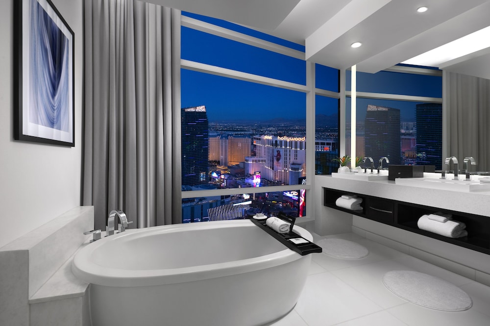 This place is overhyped beyond words. Room service (under $125) delivered in a paper bag; over sixty minutes waits for food; a “club” that’s an adjunct to the lobby and serves a few finger eats for breakfast; people tramping up the elevator with supplies because a bottle of water can set you back $20; curtains that let light through; shower that’s as old as the red hills; featureless marble floors; dorm room furniture. And so on. Staff is friendly and helpful when there’s more than one or two at the busy front desk. Haven’t the folks who love this place been to a really good hotel before? Save your money and stay elsewhere. Or better yet, avoid Las Vegas altogether. The city has seen better days — like 15 or 20 year ago — without much promise ahead.