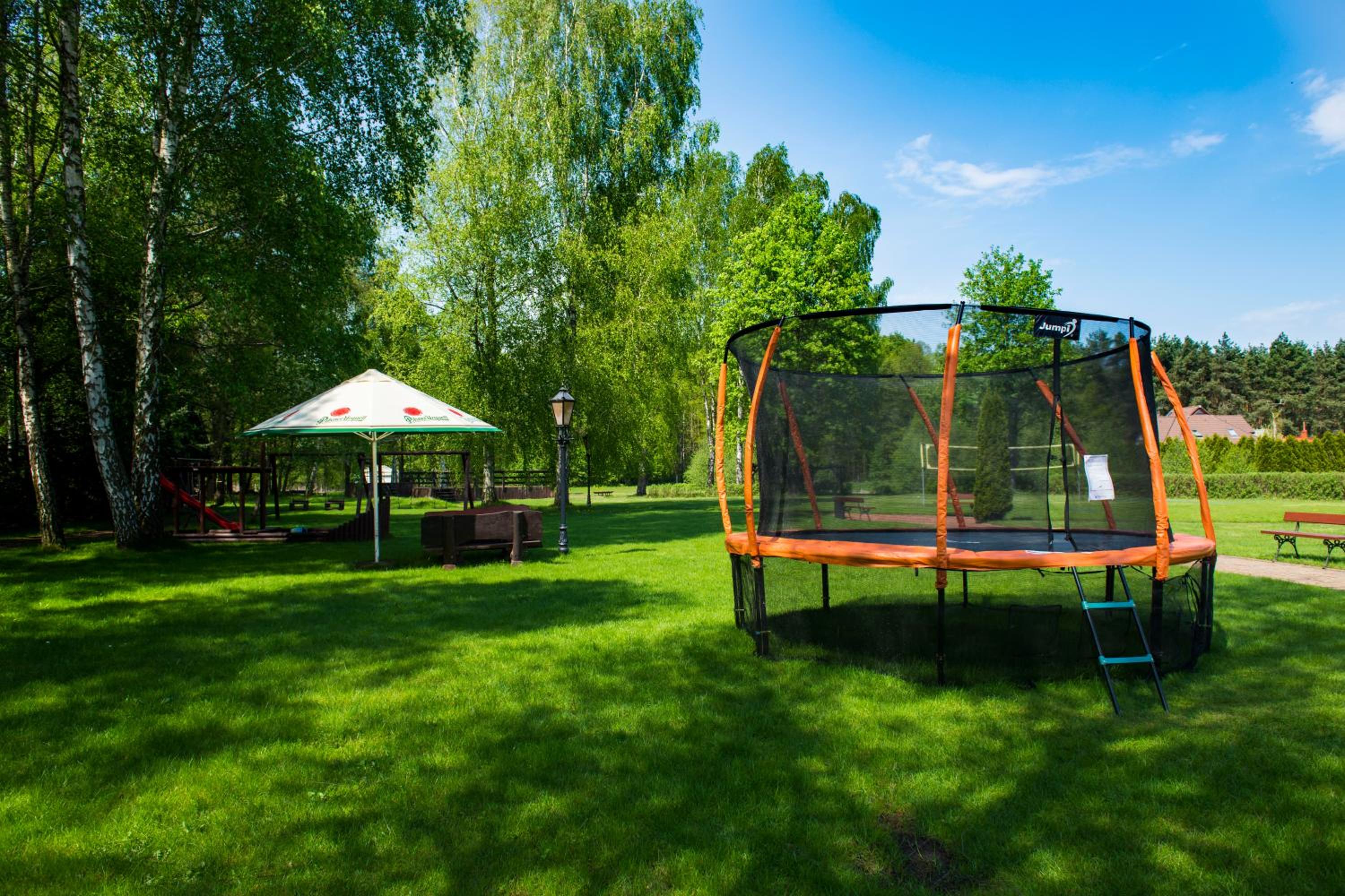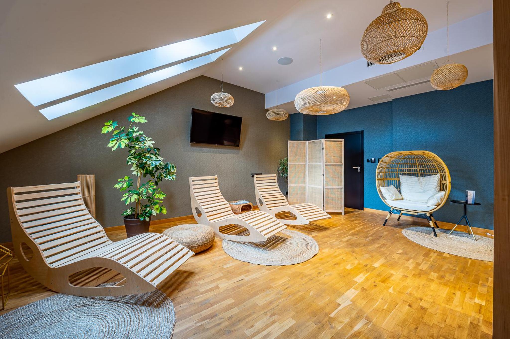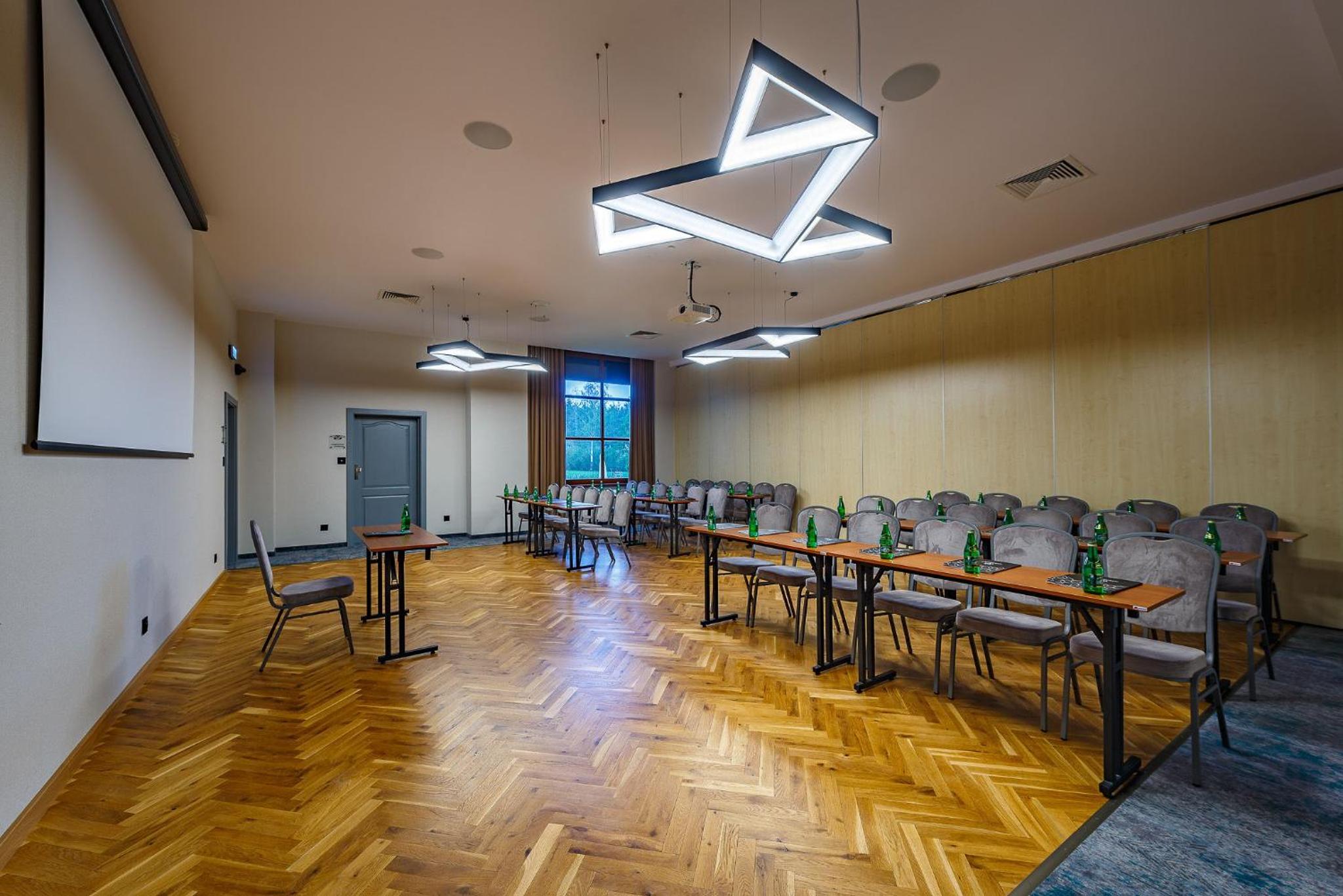 Indulge in relaxation at the hotel's fitness center, equipped with a sauna and offering rejuvenating massage services. Unwind in the tranquil garden area with a charming pond or on the inviting terrace. For dining options, savor delectable Polish and international dishes at the modern restaurant, known for its smoked specialties prepared in-house. The cozy hotel bar is perfect for enjoying a fine selection of wines by the fireplace.
