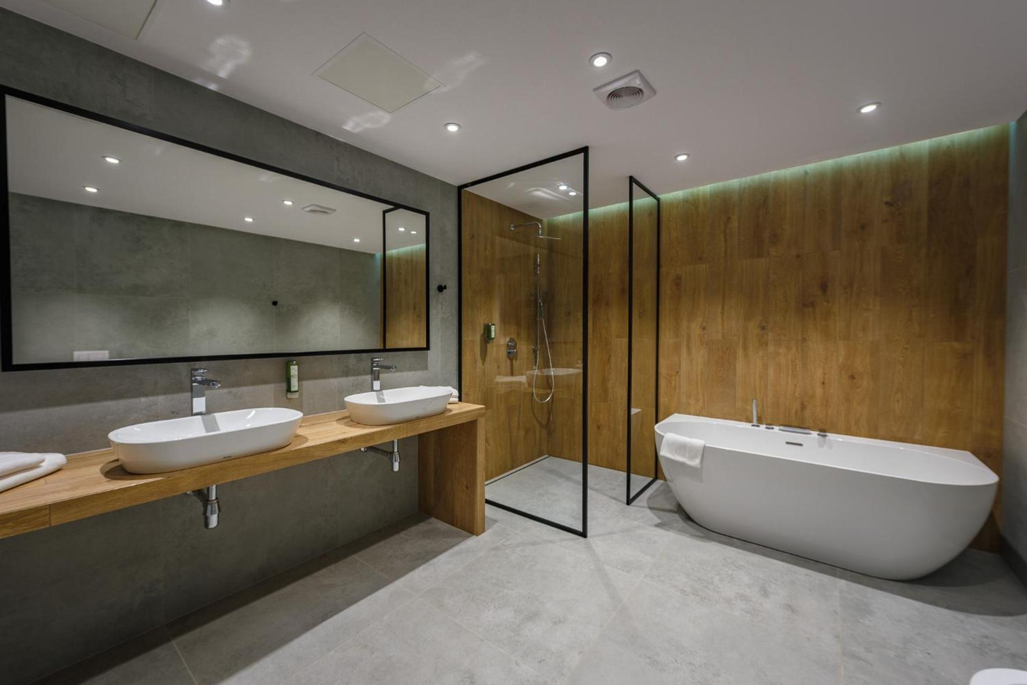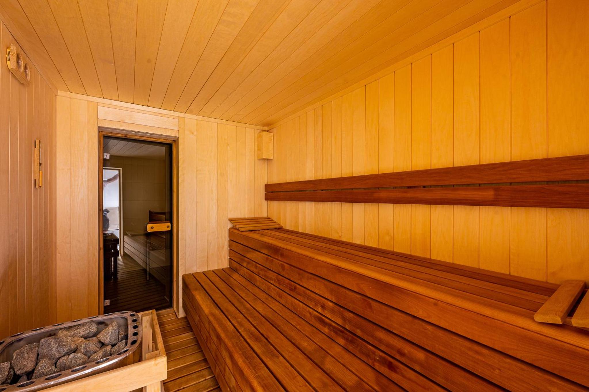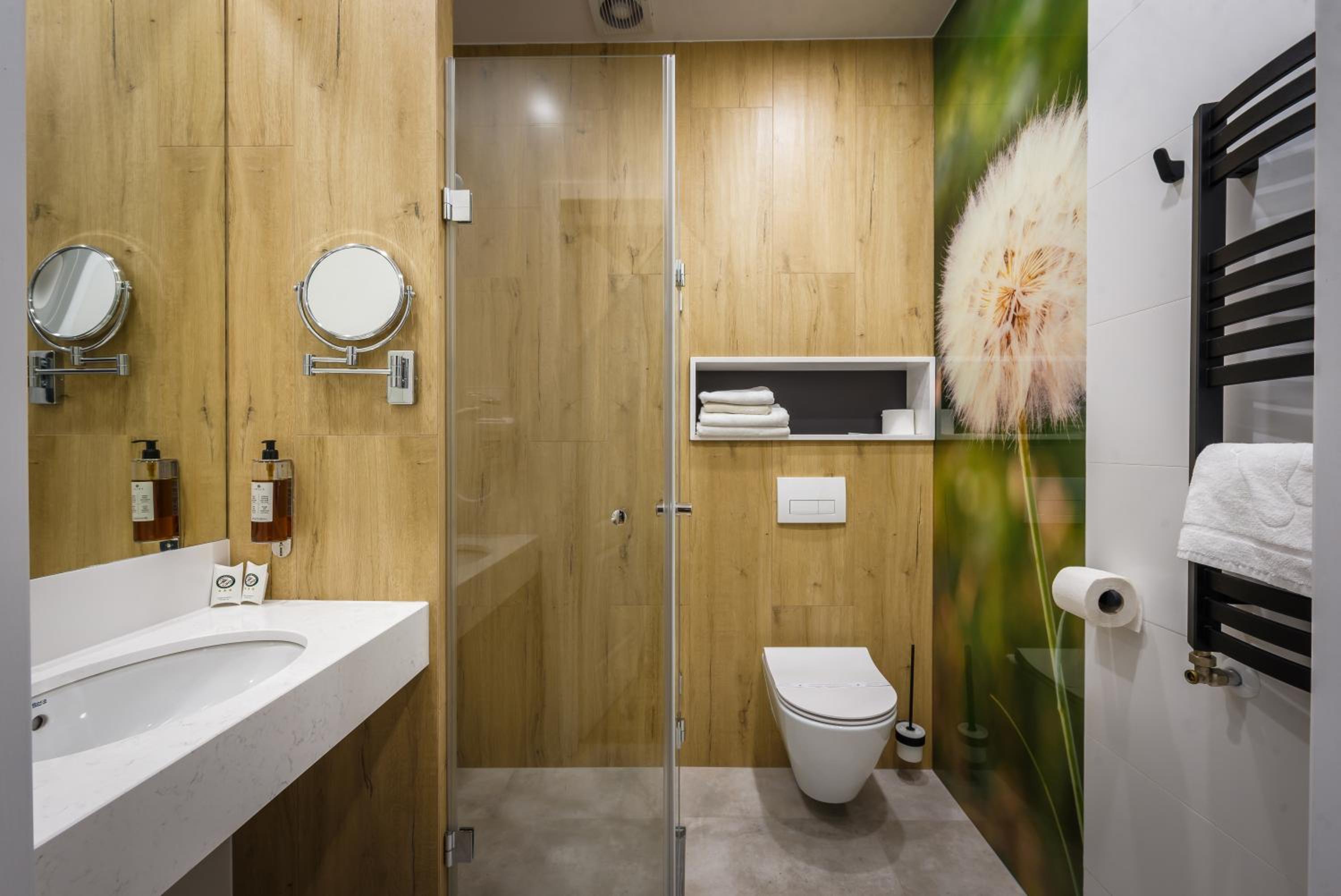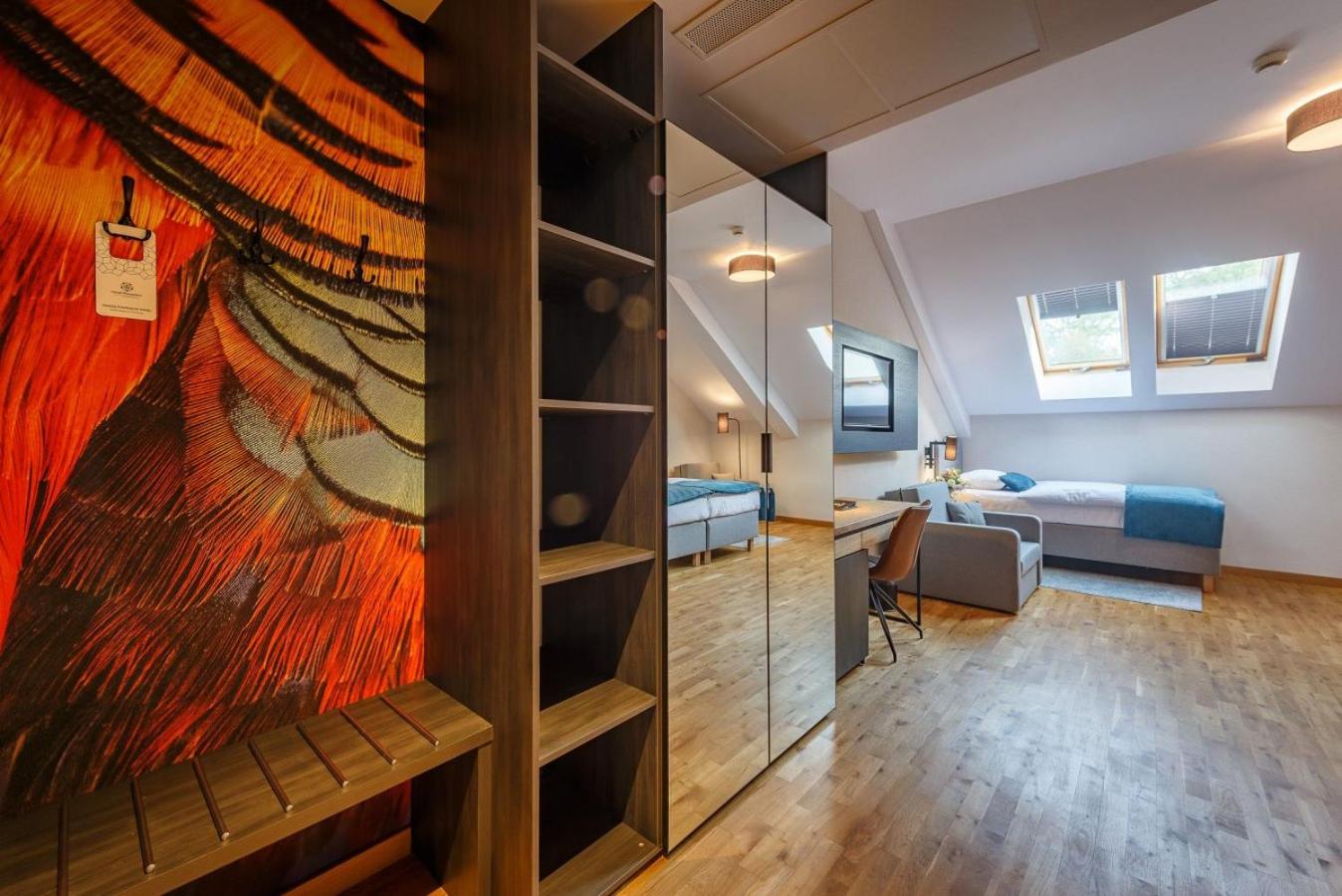 Indulge in relaxation at the hotel's fitness center, equipped with a sauna and offering rejuvenating massage services. Unwind in the tranquil garden area with a charming pond or on the inviting terrace. For dining options, savor delectable Polish and international dishes at the modern restaurant, known for its smoked specialties prepared in-house. The cozy hotel bar is perfect for enjoying a fine selection of wines by the fireplace.