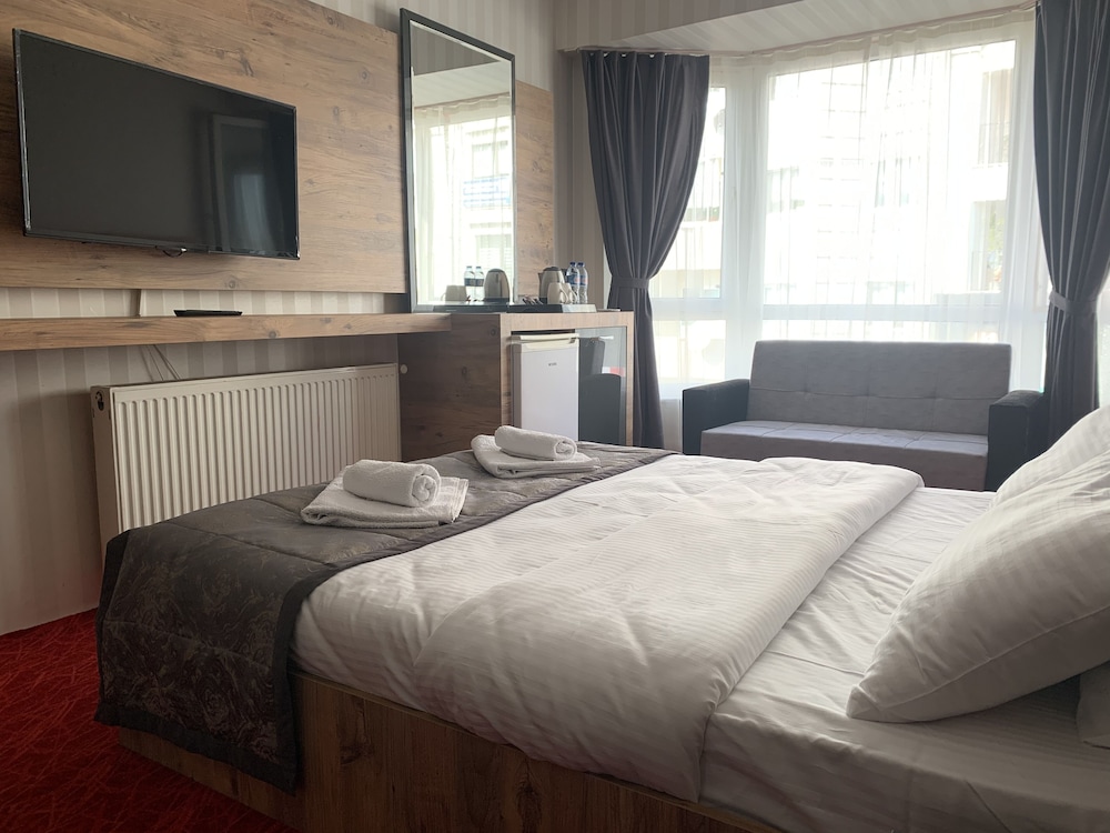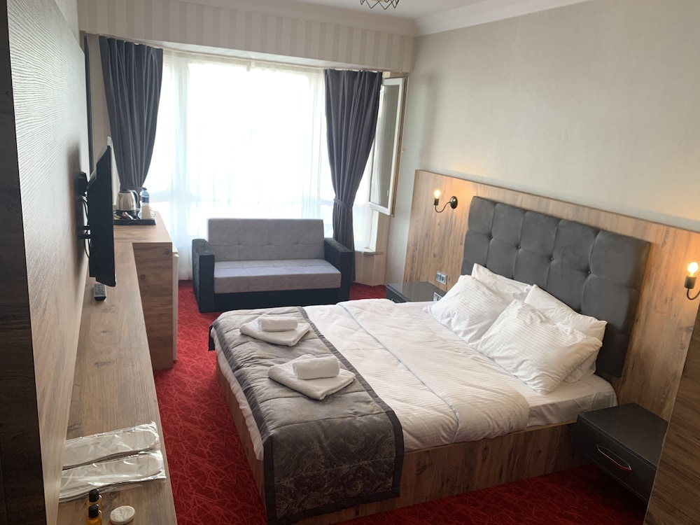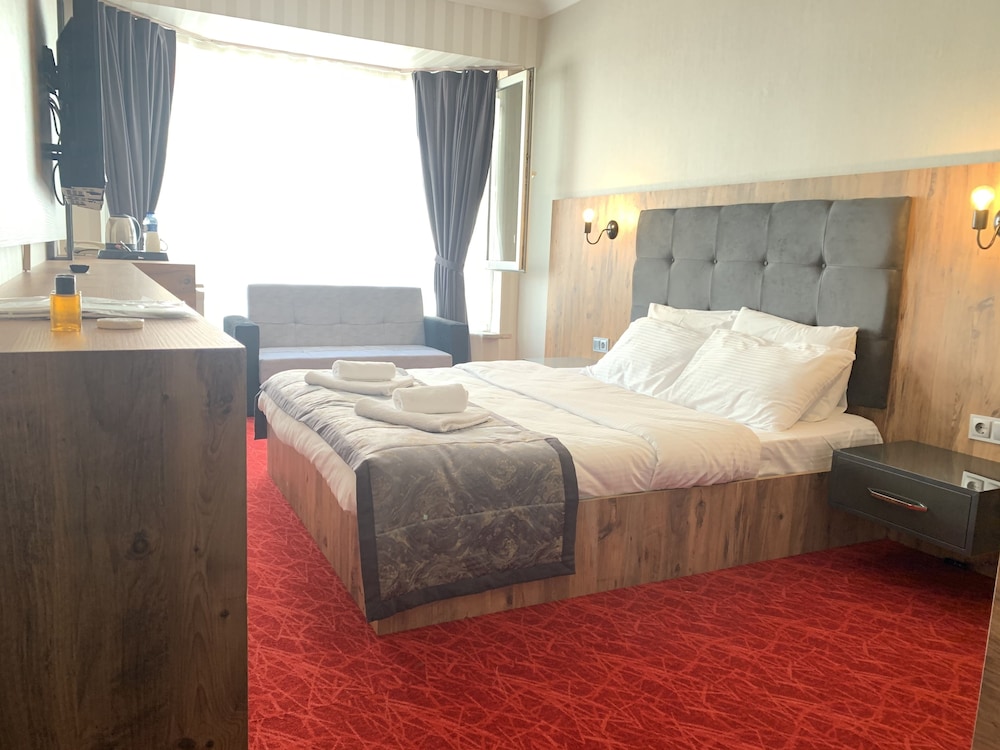 iş seyahatimiz için internet yorumlarına güvenerek tercih ettiğimiz otel şehrin tam merkezinde kendi otoparklarına yönlediriliyorsunuz oda fiyatları normale göre çok uygun odaları rahat ve geniş odalarda ikramları çay,kahve,nescafe ve su var mini bar var su ısıtıcısı var nevresimler temiz ve düzgün havluları kişi sayısına göre fazla sayıda ,kahvaltı çok fazla çeşitli normalde sıcak pek fazla sunulmuyor ancak patates kızartması,sosis,yumurta,peynirli börek gibi birçok sıcak sunuluyor kahvaltı salonu geniş ve düzgündü sunduğuınuz her olanak için teşekkürler paramızın karşılığını tam anlamıyla aldık teşekkürler..