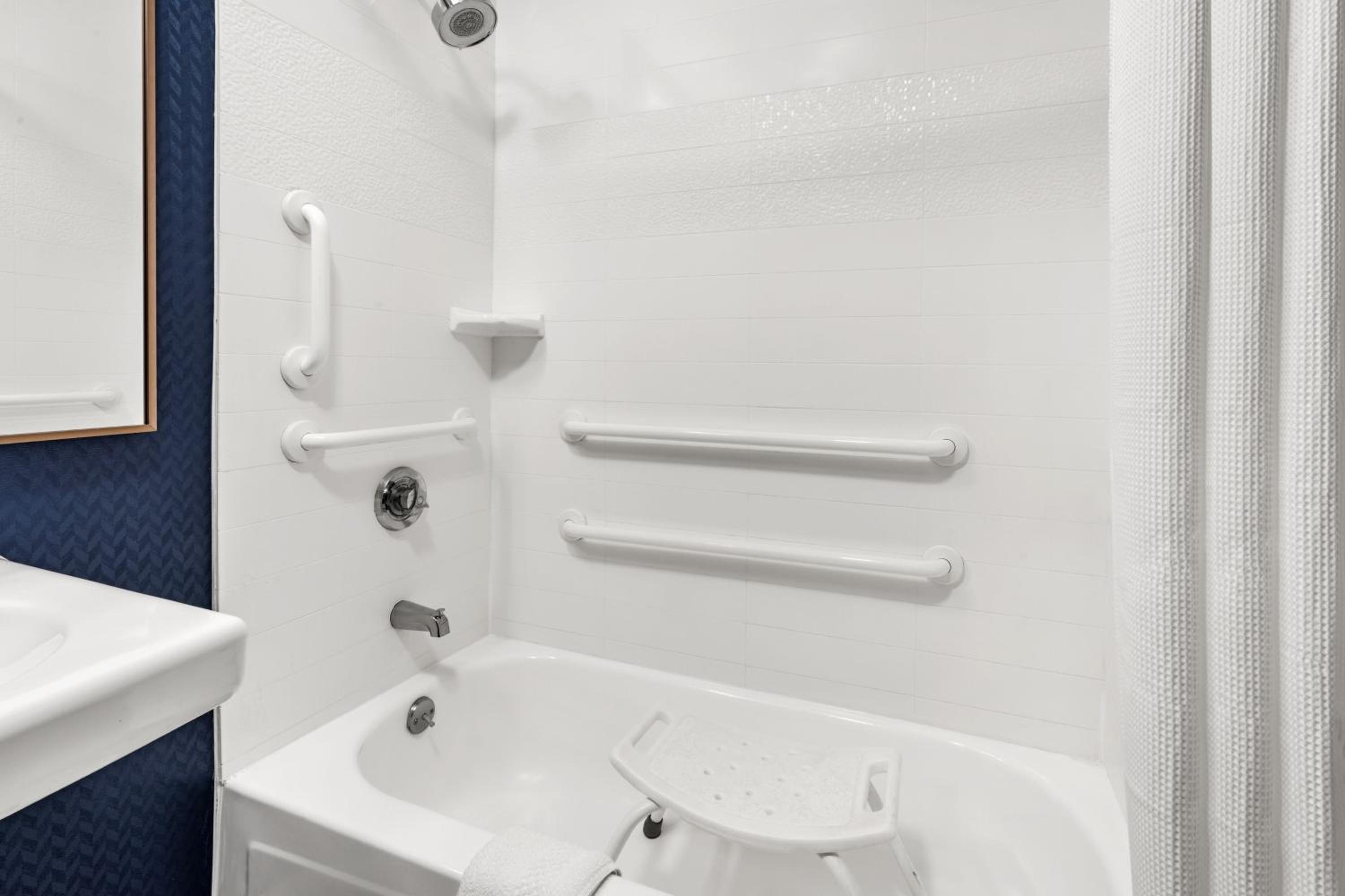 There biggest reason for the low facilities rating was the shower/bath tub. The tub was slick. We asked for a mat but were told Mariott does not allow them. My wife who is 75, short and with a replacement hip had a lot of difficulty getting in and out of the shower. There should also be grab bars in the showers.