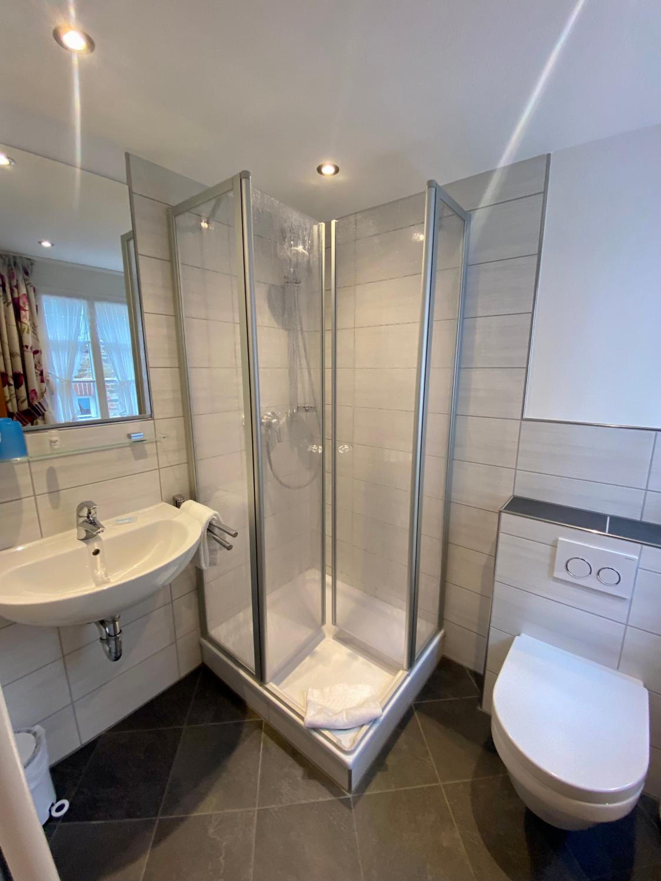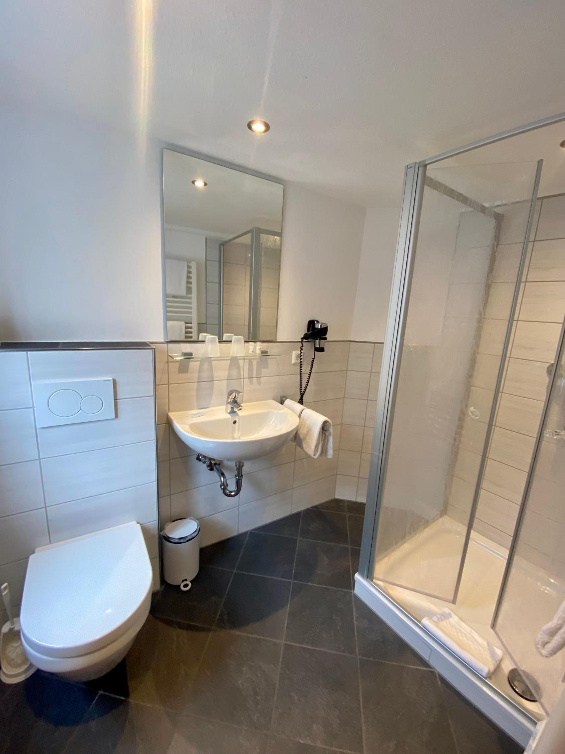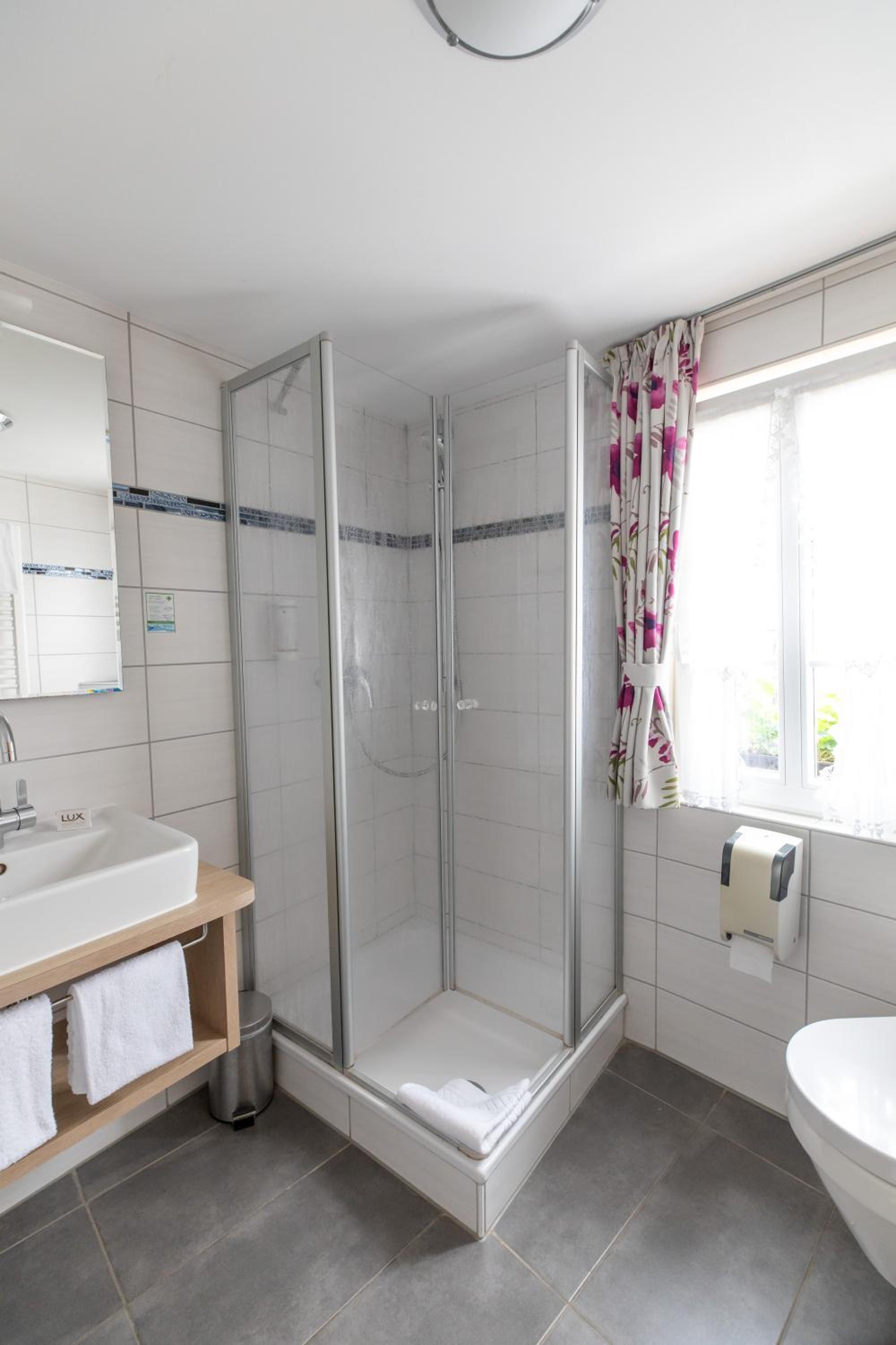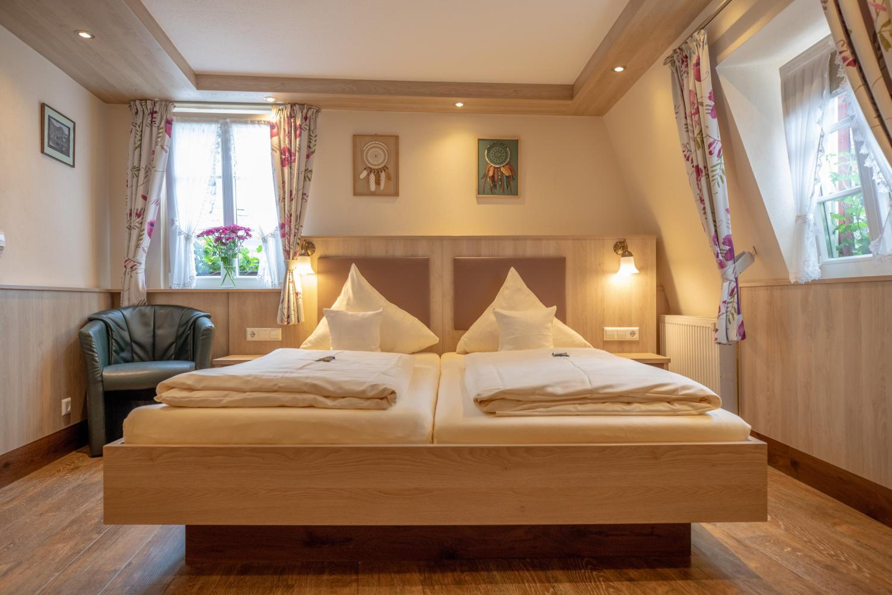 Rooms at Gute Quelle feature bright decor and comfortable wooden furniture, offering a cozy retreat. Enjoy entertainment with satellite TV and convenience with a private bathroom equipped with a hairdryer.