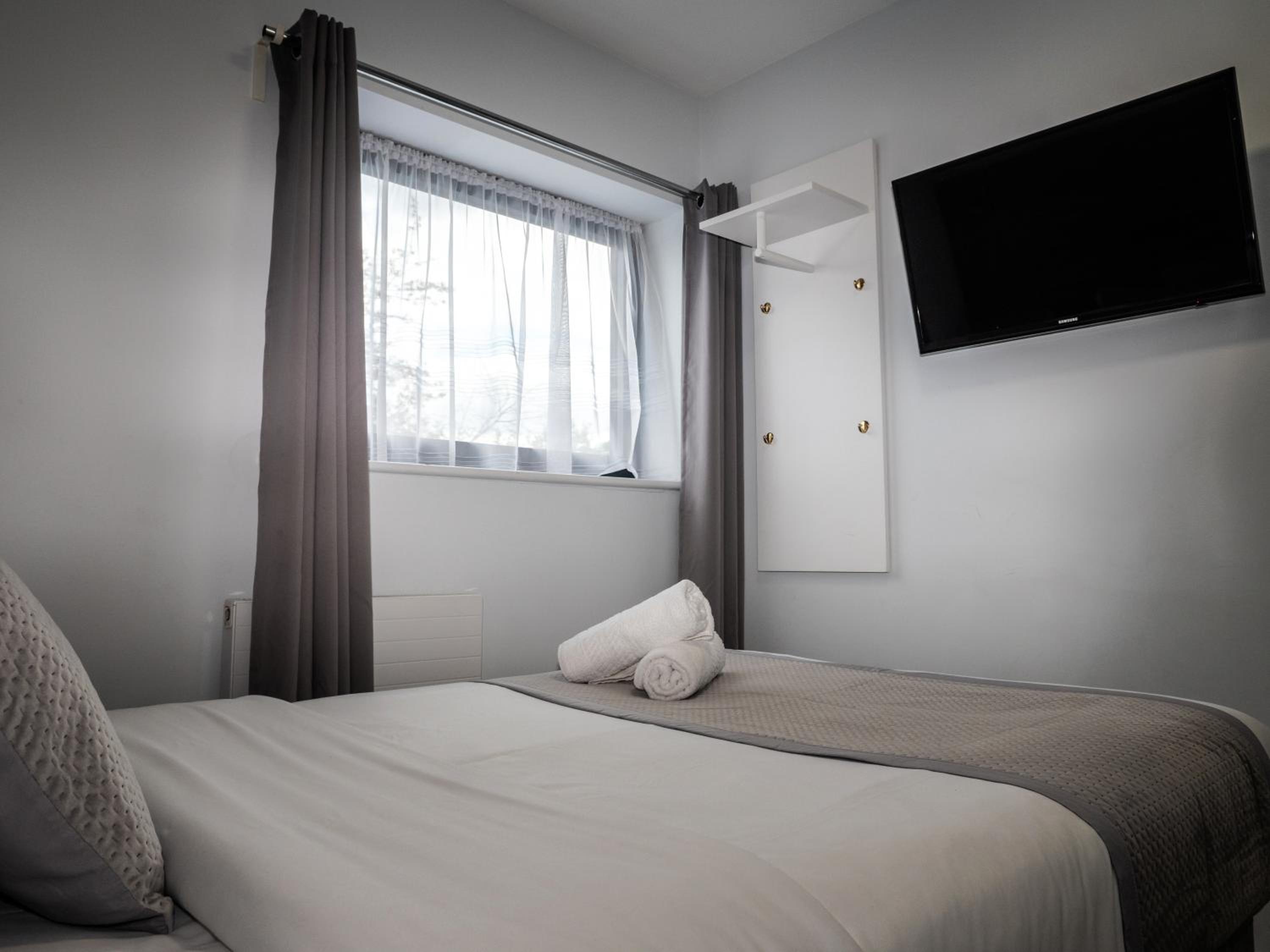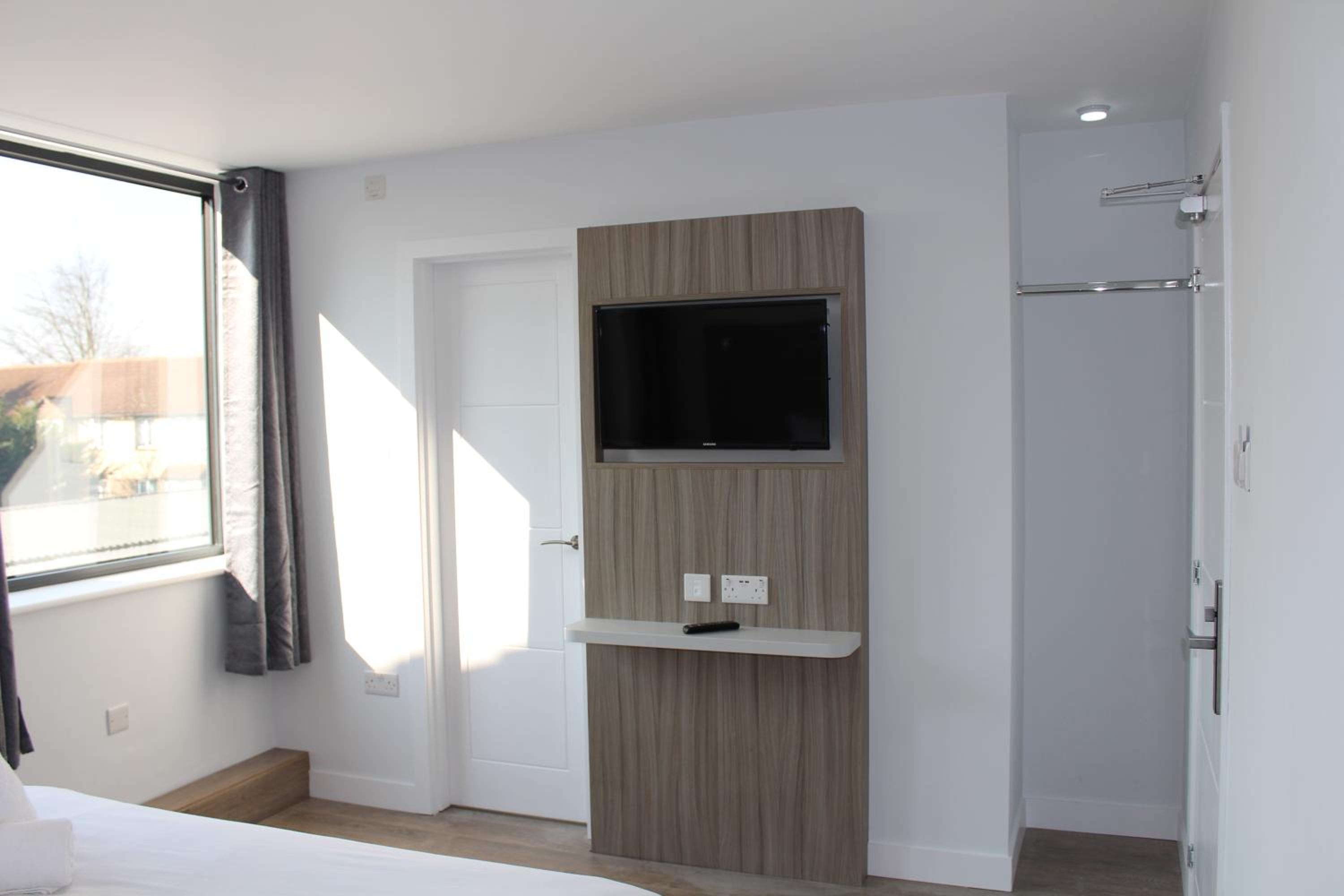 Experience comfort and convenience in our modern and spacious rooms equipped with a 32-inch flat-screen TV, USB charging points, and a private bathroom with a shower.