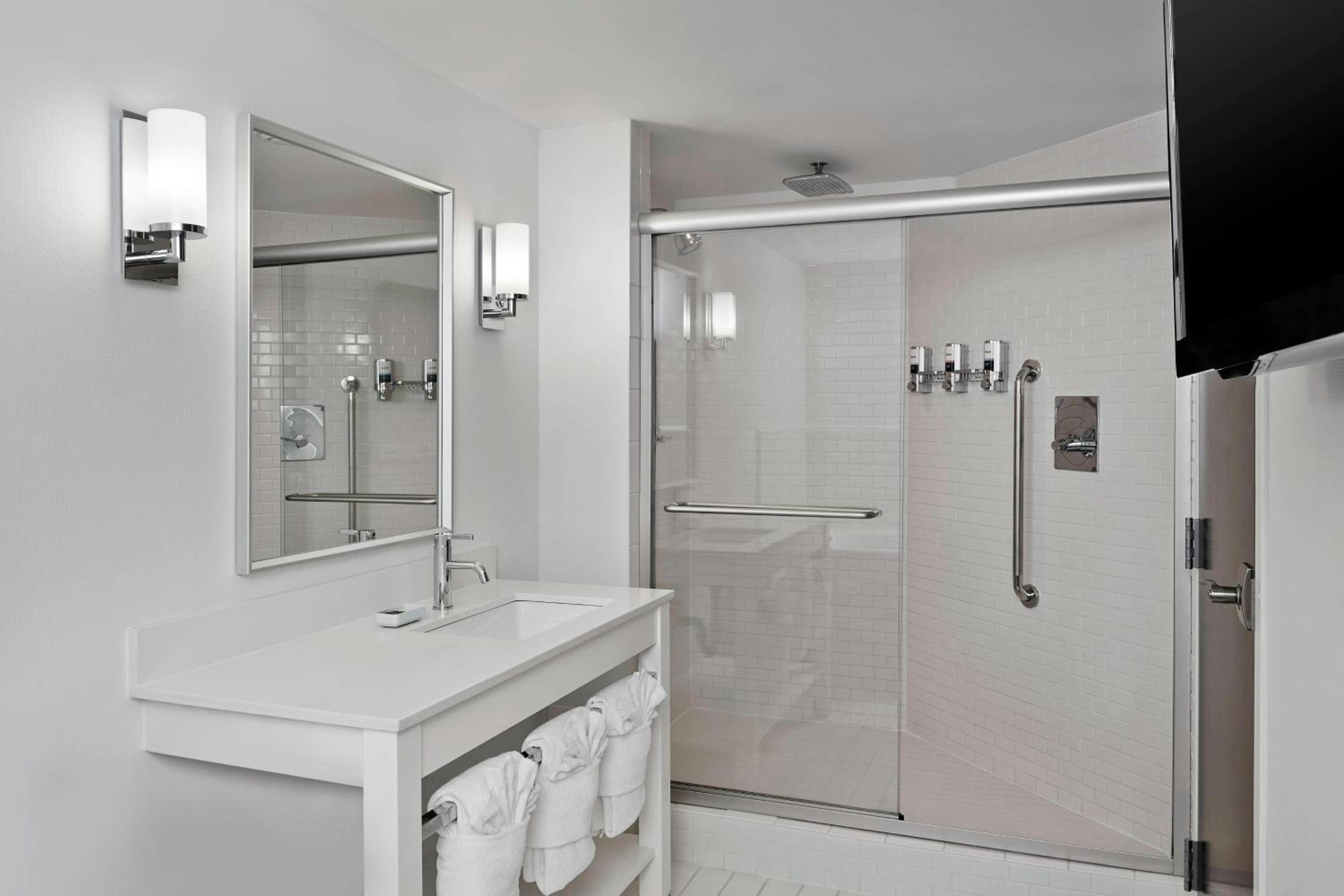 Convenient location, staff was super friendly. The little touches were very nice, like the free water bottles in the room and mouthwash. The tv in the bathroom!!!!!!!