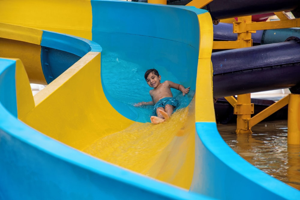 Water park was old and parts of it not functioning. Lots of rust . Tiles coming off in the pool, leaving sharp edges,my daughter sliced her toe open.We talked to others with a similar experience. Manager stated the pool is safe, and has had no complaints. No effort to rectify anything.