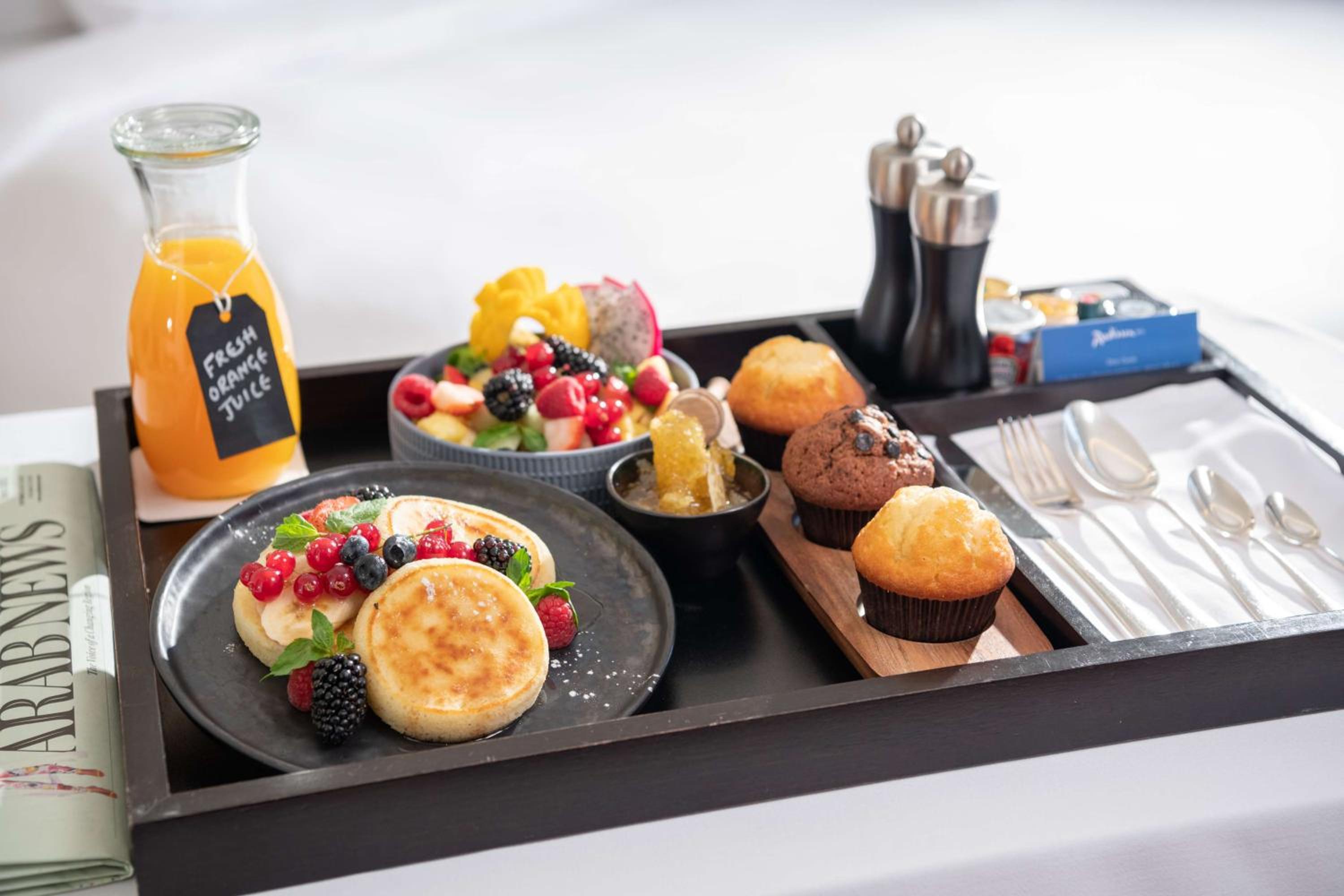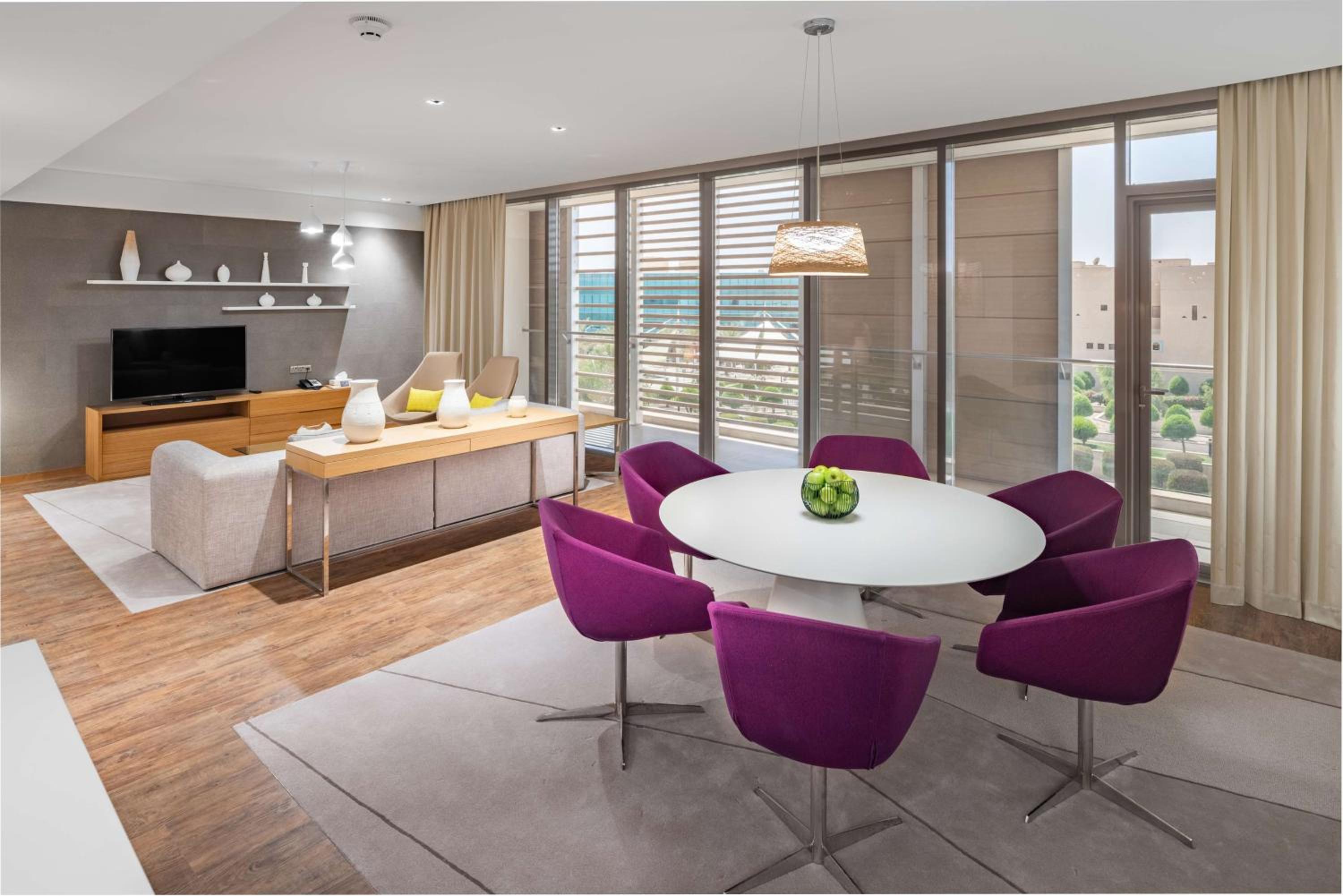 Experience 5-star luxury at Radisson Blu Hotel & Residence, Riyadh Diplomatic Quarter. Each room is elegantly furnished with modern amenities including air conditioning, flat-screen TV, and a private bathroom. Some rooms even feature a fully equipped kitchen, perfect for extended stays.