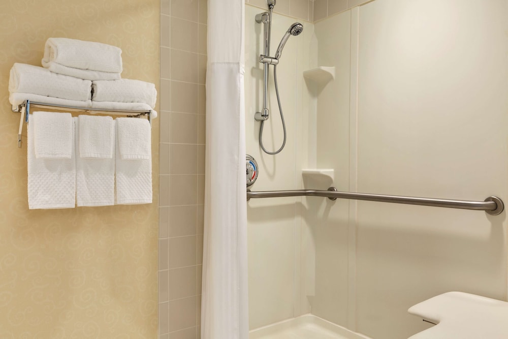 This was our first time traveling here. It wasn't hard to find however it is literally by nothing. If the hotel restaurant wasn't open you absolutely had to drive a bit or order door dash. I requested a mini fridge on our reservation, which we did not get. Room was dusty, smart water bottle behind couch, old cookie aside of the couch and the pull out bed was full of mold on the underneath. Elevators were slow with the amount of people there. It was a place to rest our heads but not overly exciting. The staff we interacted with was nice and when we requested sheets for the sofa bed and extra towels those were given pretty quickly no questions asked.