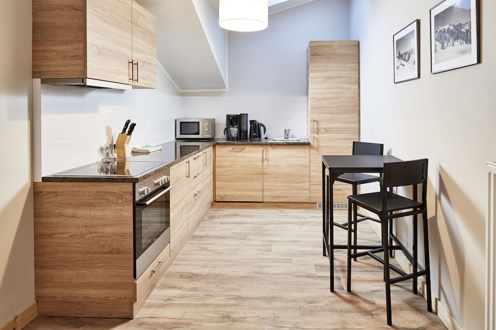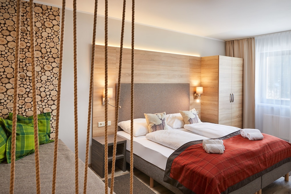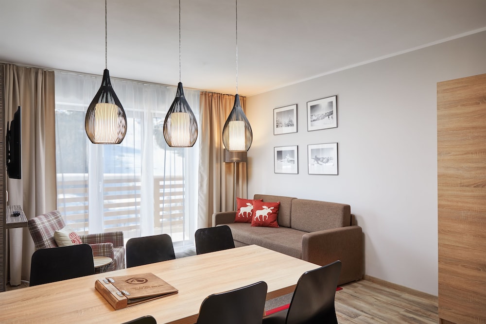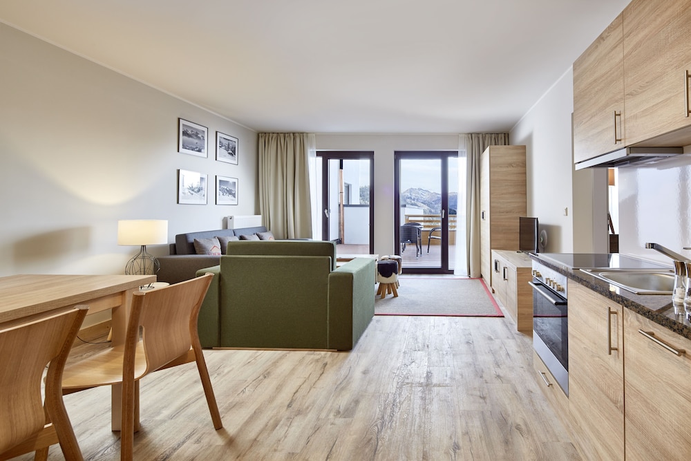 The room was above expectations. Amazing view of the Alps! The hotel staff are so friendly and helpful. There is a play room for kids as well as an outdoor playground associated with the property. We ate breakfast there a couple times and also cooked in the room - both great experiences. The skikeller was safe and in a great location for ski-in-ski-out. We absolutely loved this hotel!!