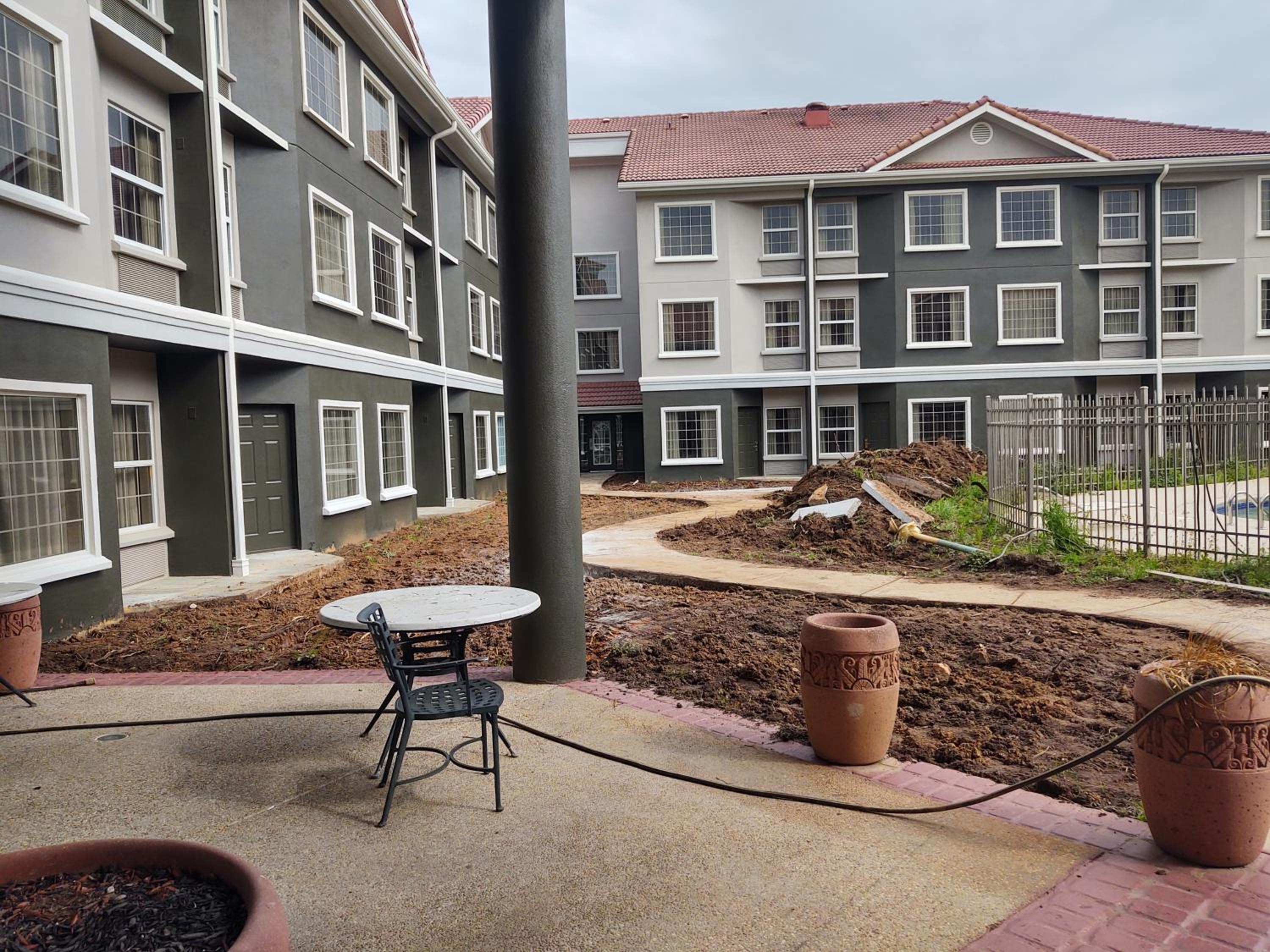 Dog shit all over grassy areas! Shower wand was missing in bathroom shower, damn hard for handicapped person to clean up! Hallway carpet worn to the threads and filthy! Freeway noise unbearable as our room was right below the highway. This was the worst La Quinta experience I have ever encountered . Requesting a refund for our payment as overall conditions were inexcusable!!!!