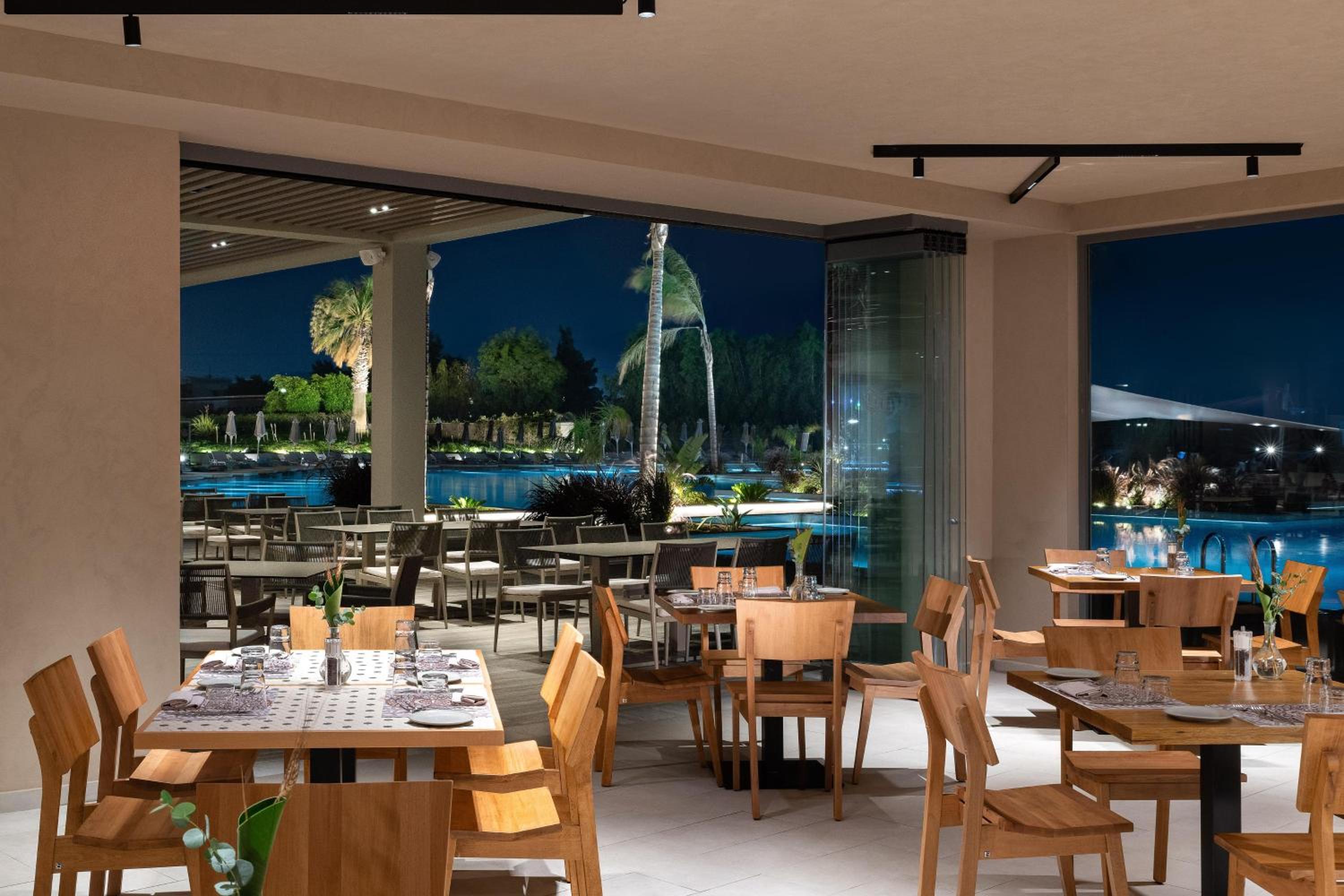 Guests can enjoy a Greek Breakfast in the dining area or explore the 3 on-site restaurants offering Italian and Chinese cuisine. Local and International drinks are served at the lobby, lounge, and pool bars, providing a variety of dining options.