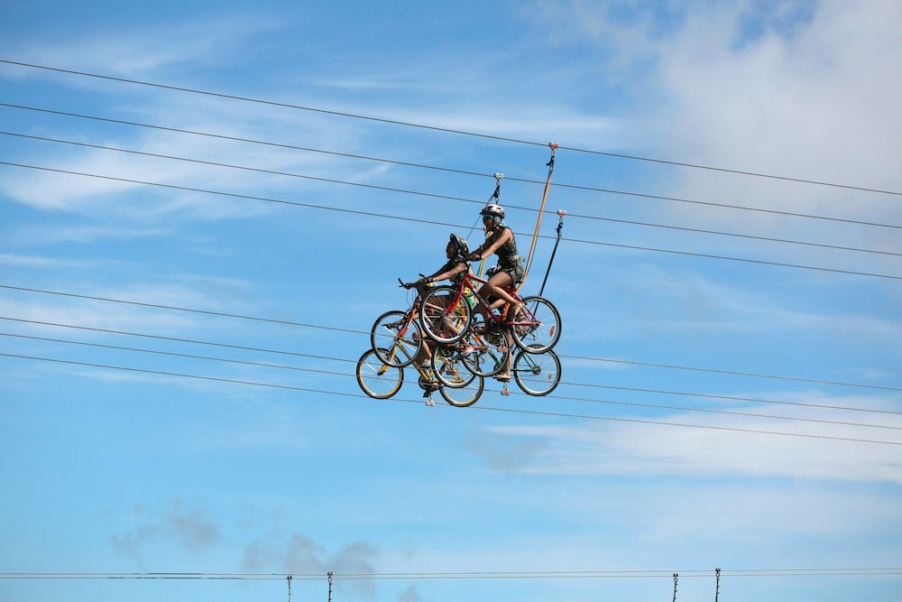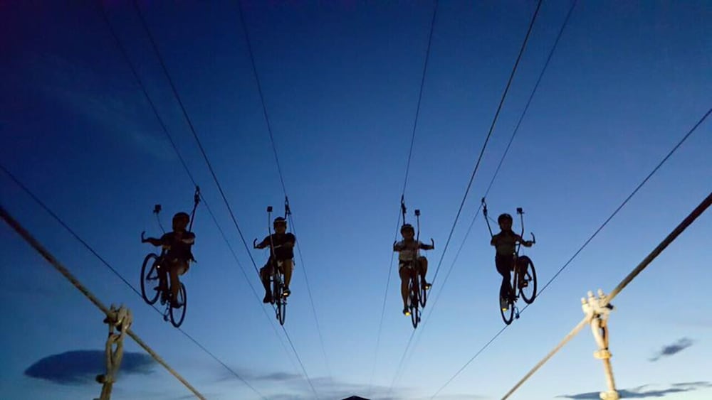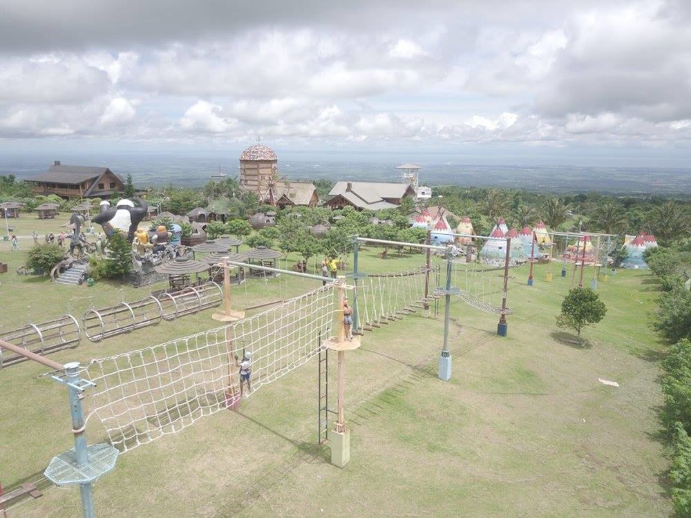 Campuestohan has zip lines, bike zip lines, a suspended zip line confidence/obstacle course, a hanging rope bridge, an animatronic dinosaur park (included with entry), a merry-go-round (included with entry), and a spa.