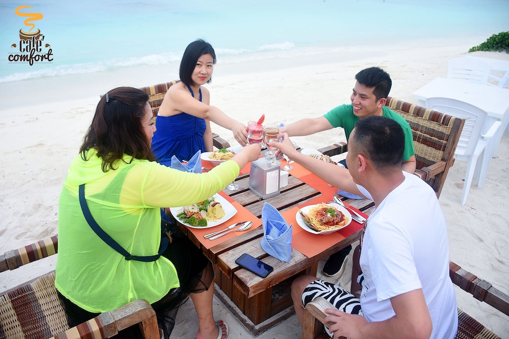 The staff picked us up upon arrival at the airport and drove us to the hotel. It was very late so can't see the surrounding areas but can hear the waves. The room was average, clean but very old. It was nice to have breakfast and water. They helped to arranged our seaplane departure as they were direct in contact with our resort.