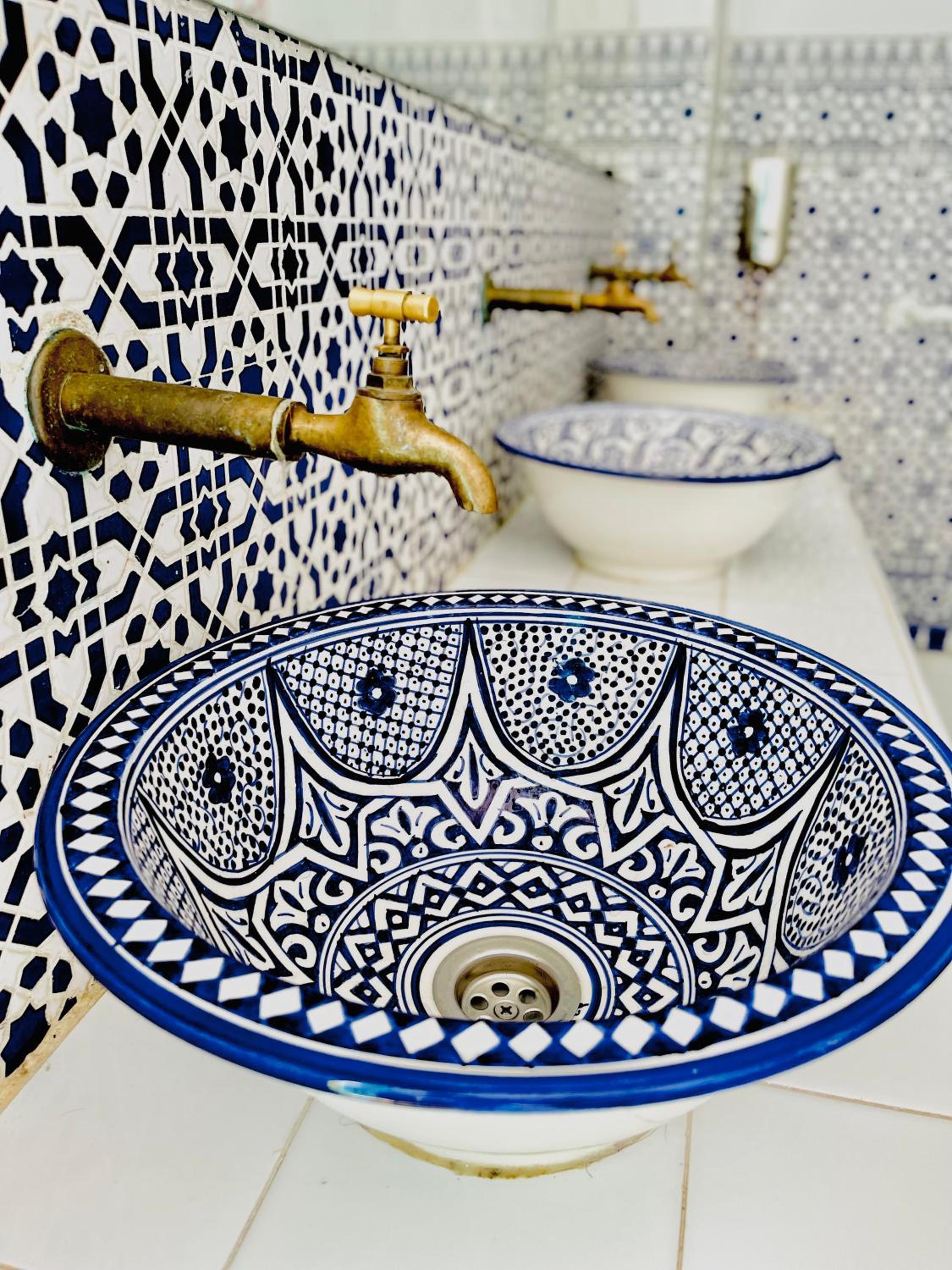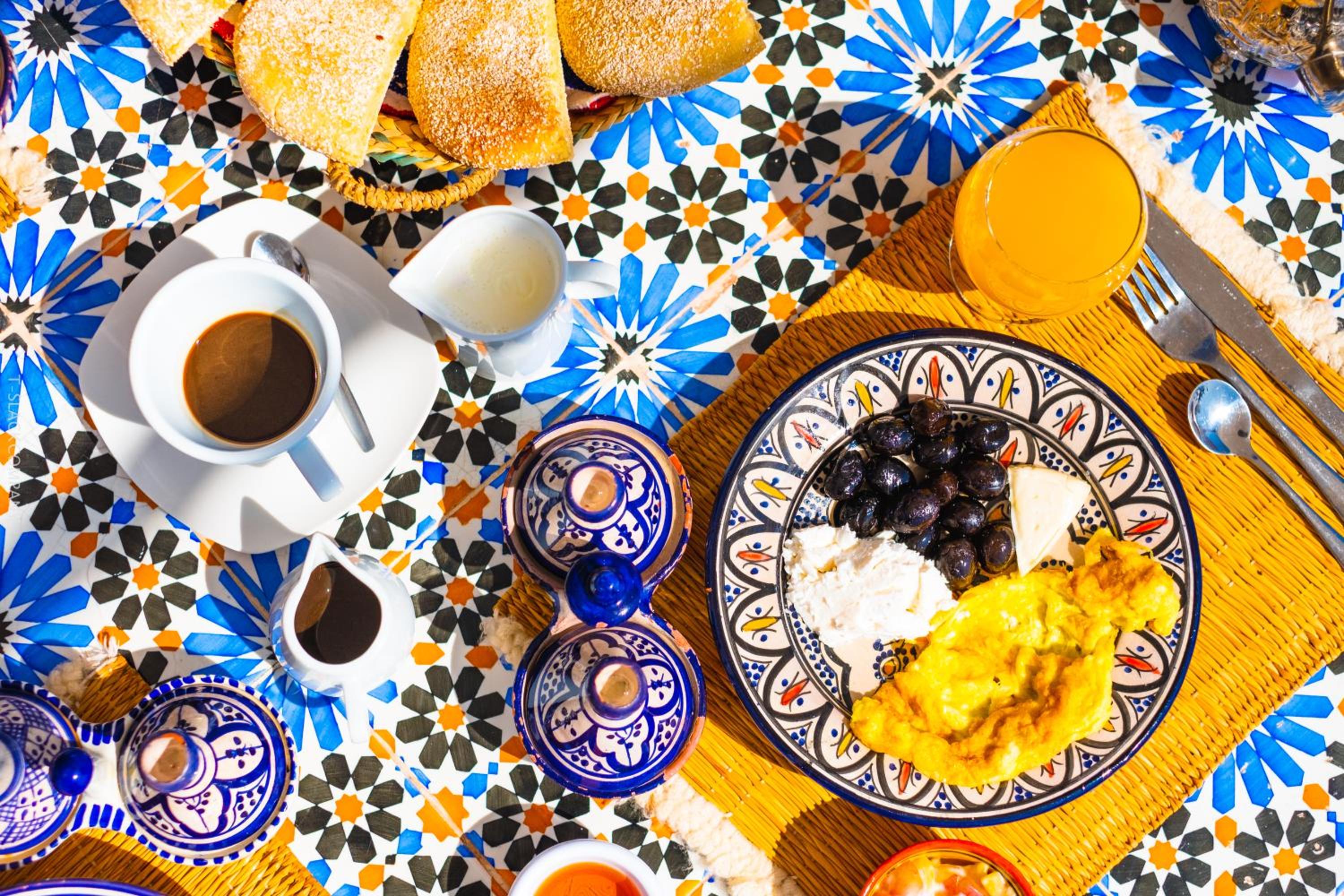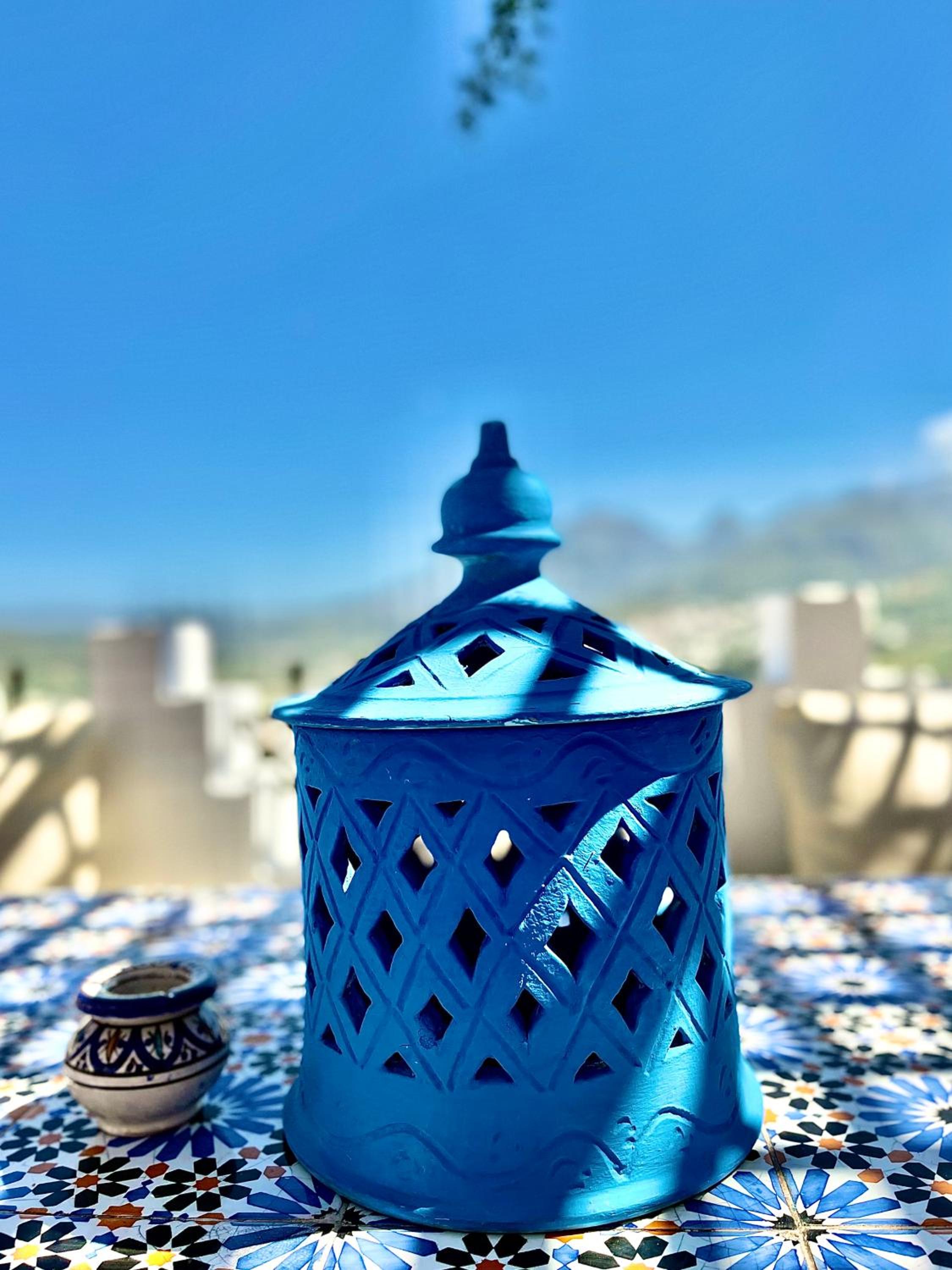 La terrazza bellissima aperta anche agli esterni bellissimo panorama. Struttura ben arredata e molto colorata. Nella medina ma zona molto silenziosa.