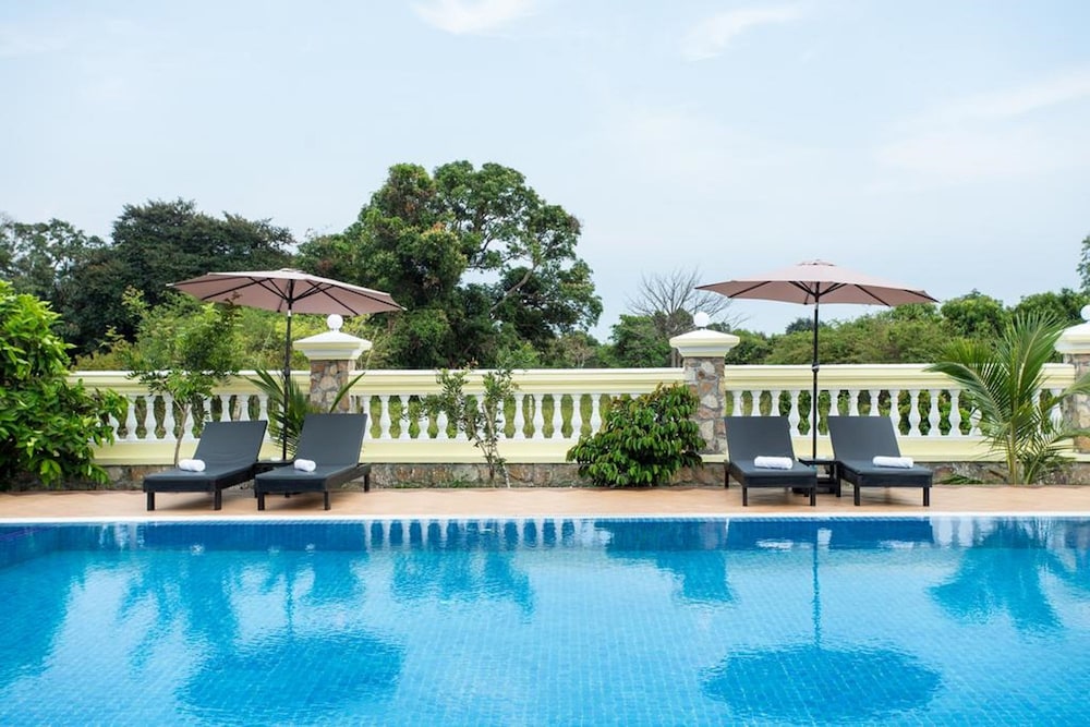 Enjoy the outdoor pool and terrace with garden views at La Kep Boutique hotel for a relaxing stay.