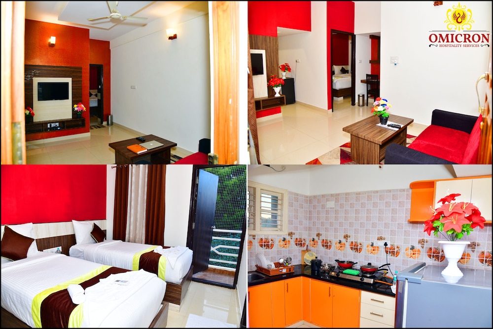 Take in the views from a rooftop terrace and make use of amenities such as complimentary wireless internet access. Manyata Tech Park - 0.8 km / 0.5 mi. Located in Bengaluru, Omicron Hotel 1 BHK Studio Rooms is a 3-minute drive from Manyata Tech Park and 10 minutes from Cubbon Park. This hotel is 7.1 mi (11.5 km) from Bangalore Palace and 7.4 mi (11.9 km) from UB City. Near Manyata Tech Park. Book now for a relaxing stay with convenient amenities and stunning views.