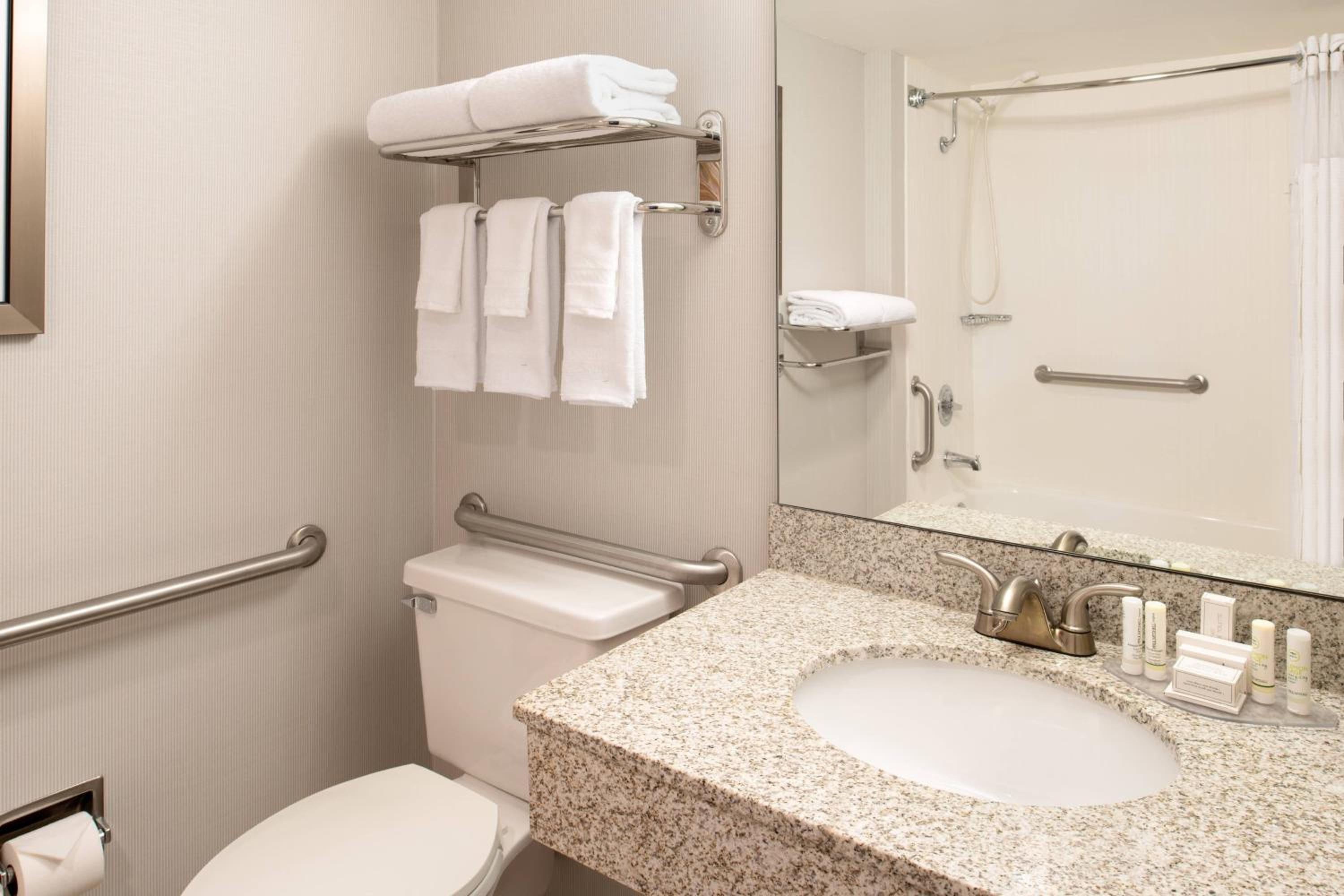 Great location. Quick shuttle to the airport in the morning. Great dinner and drinks in the restaurant with great staff. Great place to stay before your flight. Nice lounge and outside seating with fire pit. Great job Marriott Courtyard.