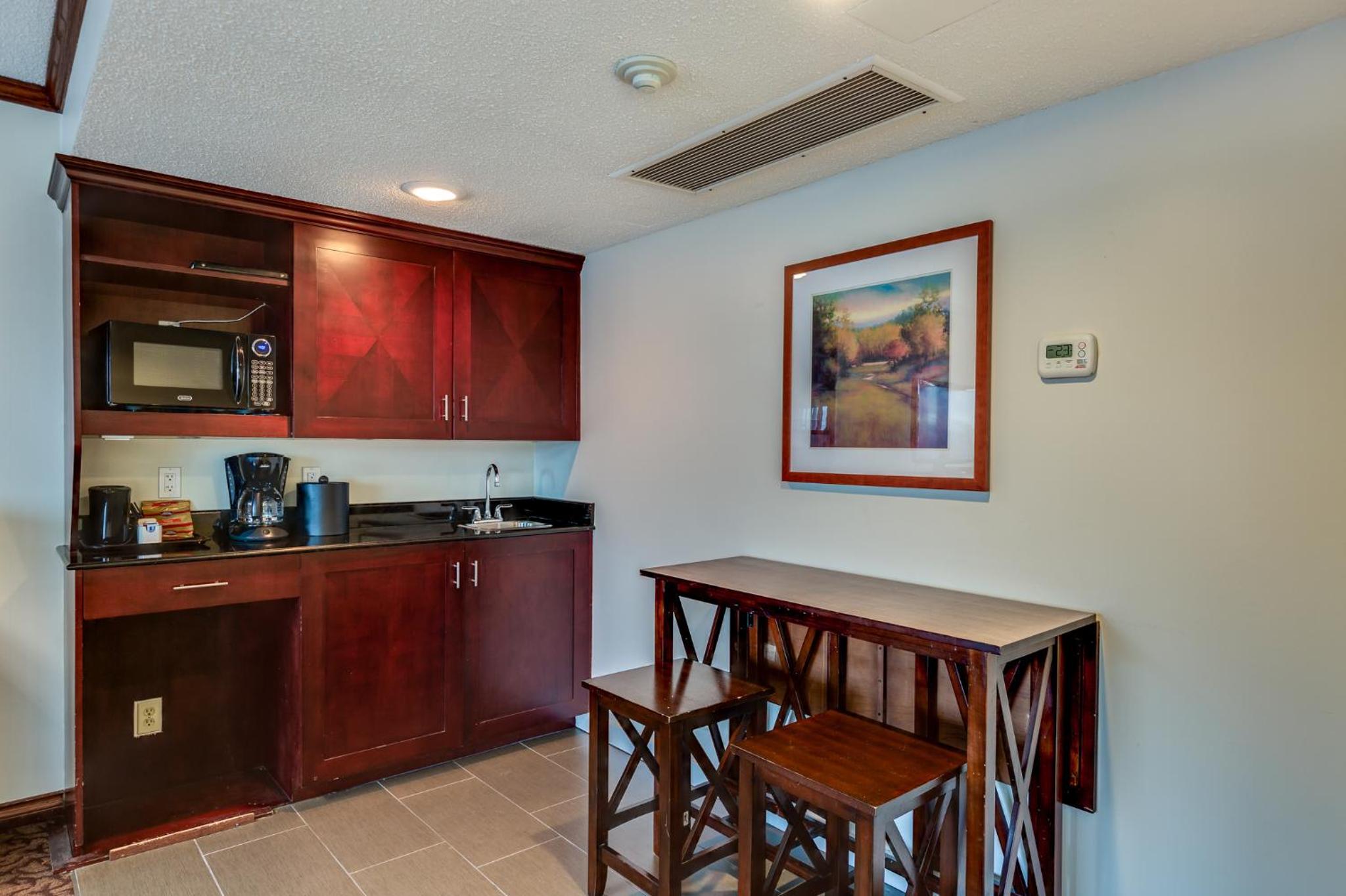 Hot tub was down for maintenance - on a lengthy ski trip, I appreciate a nice soak! Parking a bit constrained for full size pickup, as there were a lot of large vehicles this night, the lot has narrow aisles and hotel guests are restricted to the western half