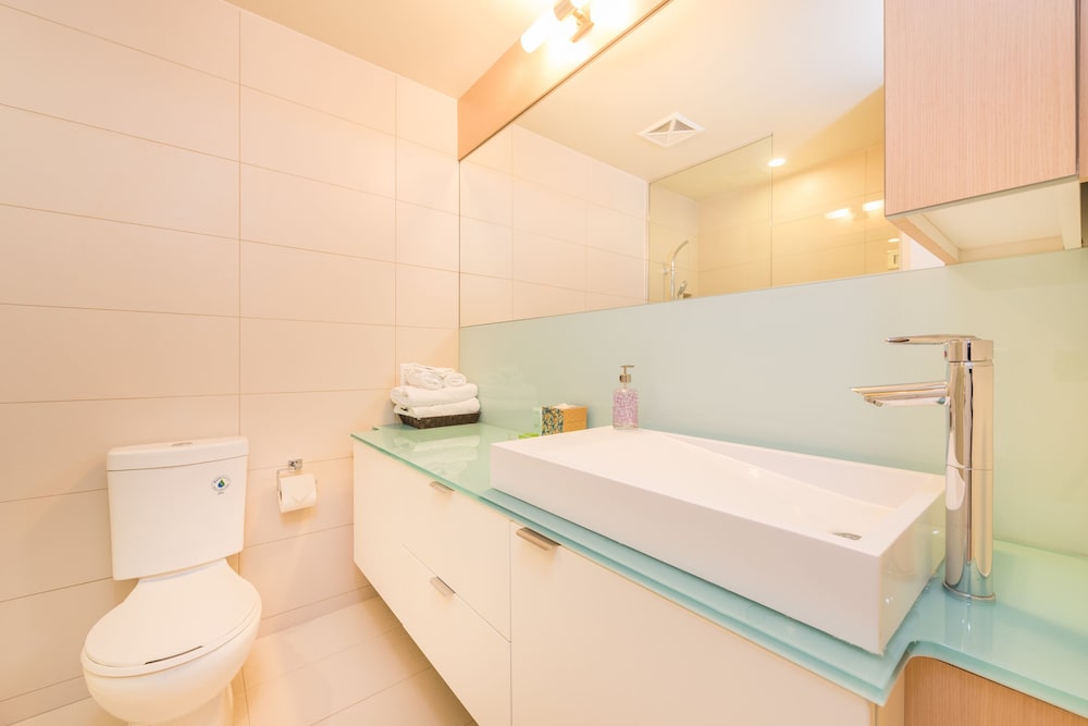 We loved the location!! Walking distance to so many things we wanted to do. Lots of great eating spots close by. The unit definitely needs some attention. Towel racks falling off the wall, very little cutlery, towels needed replacing, pillows definitely need replacing, shower heads have very little flow and should be fixed or replaced. Overall needs some attention of personal use items. Decorated nicely. Living area was comfortable. Our group was 3 adults and we felt that was max number comfortably.