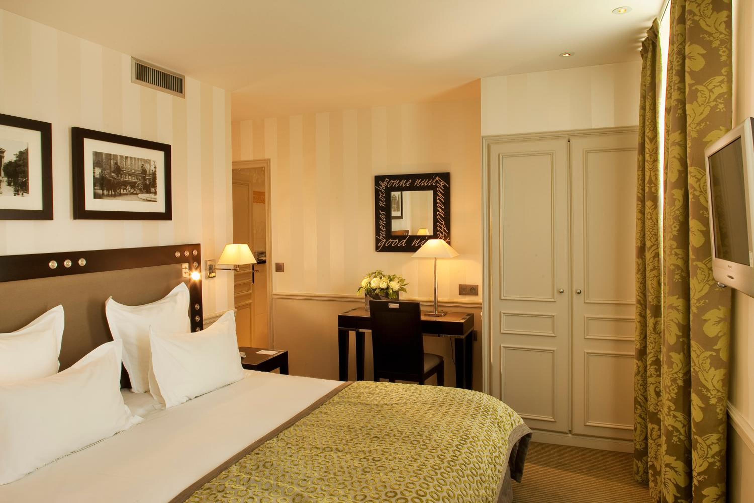 Our standard room was very clean with a comfortable bed. Yes, the room was on the smaller side, but that’s very typical for Paris — and for us it was perfectly adequate. The bathroom shower was excellent, and the air conditioning worked very well, keeping the room at a comfortable temperature throughout our stay.