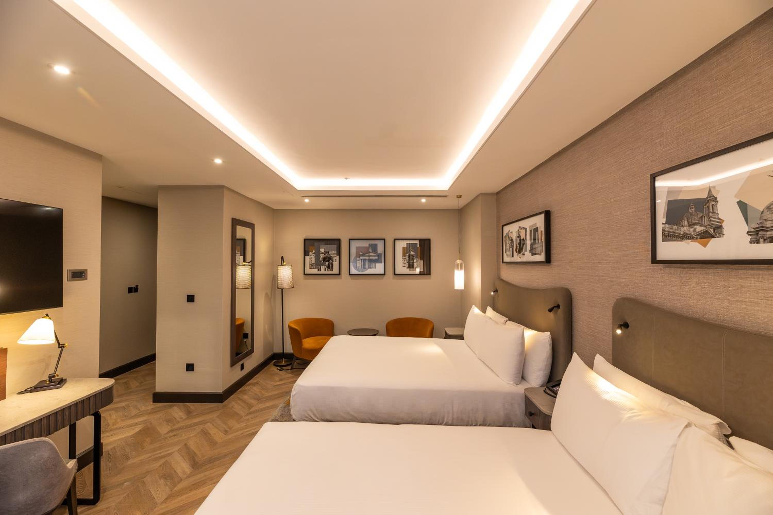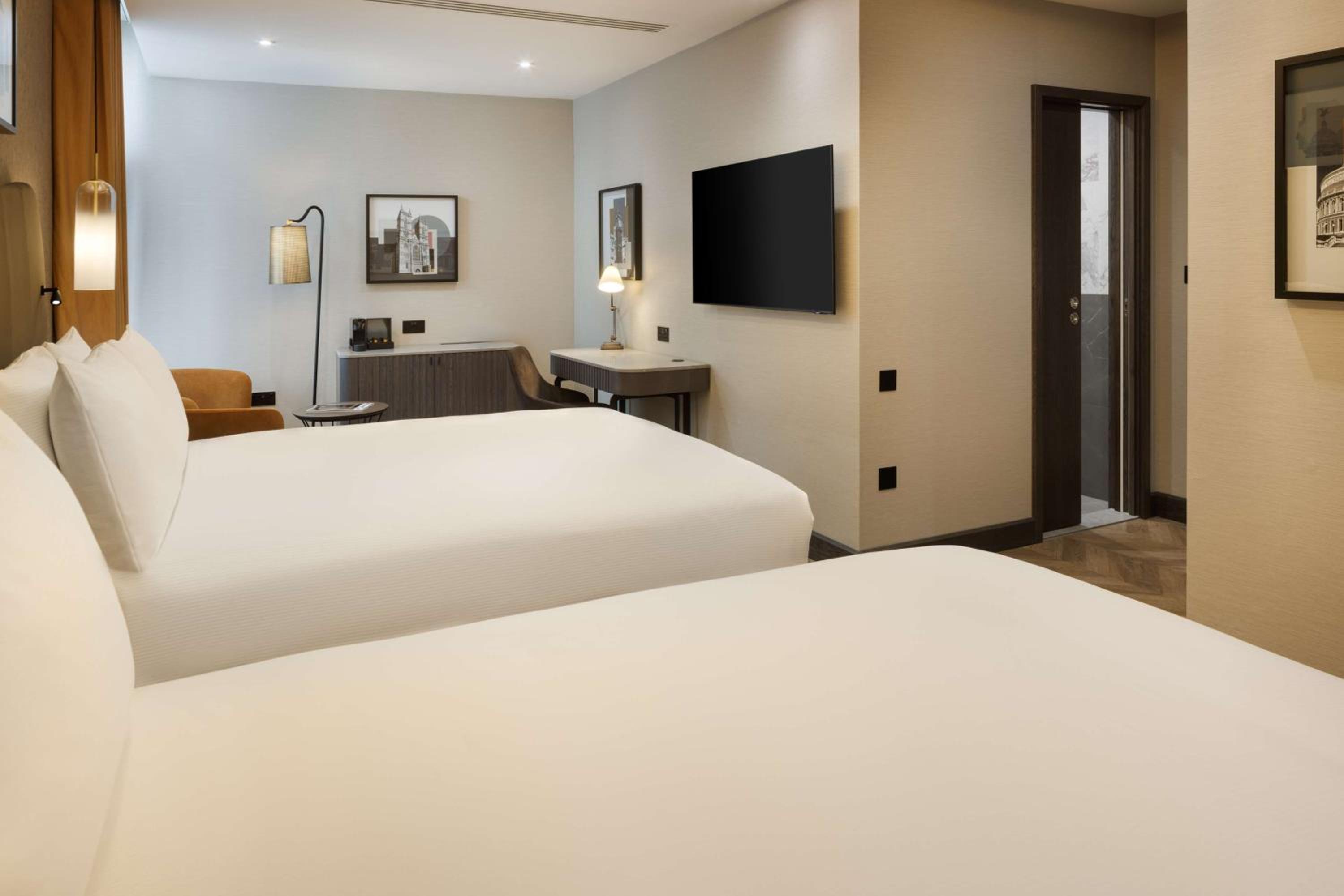 The Double Tree by Hilton London - Victoria offers spacious and warmly furnished rooms equipped with private bathrooms, flat-screen TVs, and complimentary WiFi. Some rooms even feature balconies for a touch of luxury.