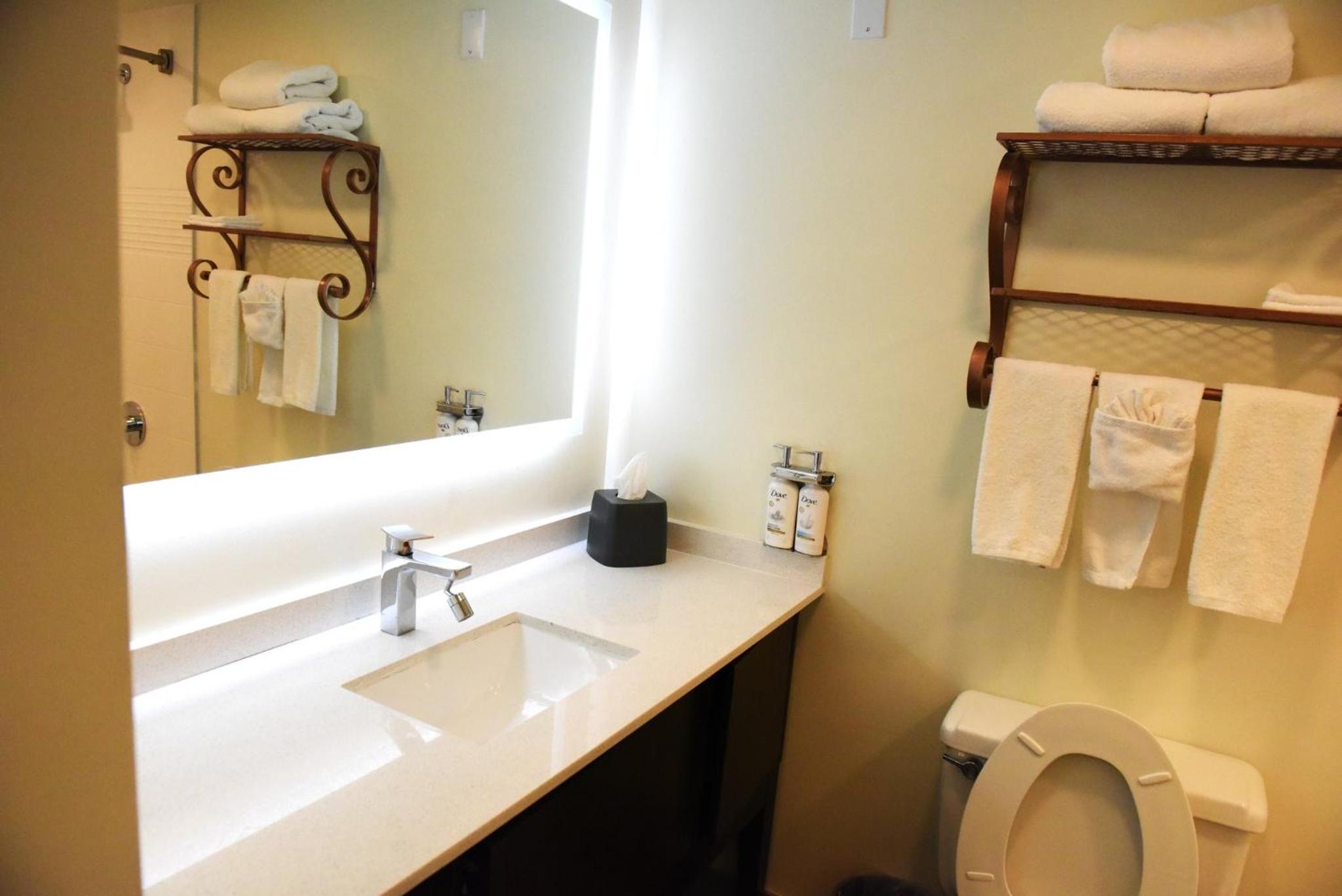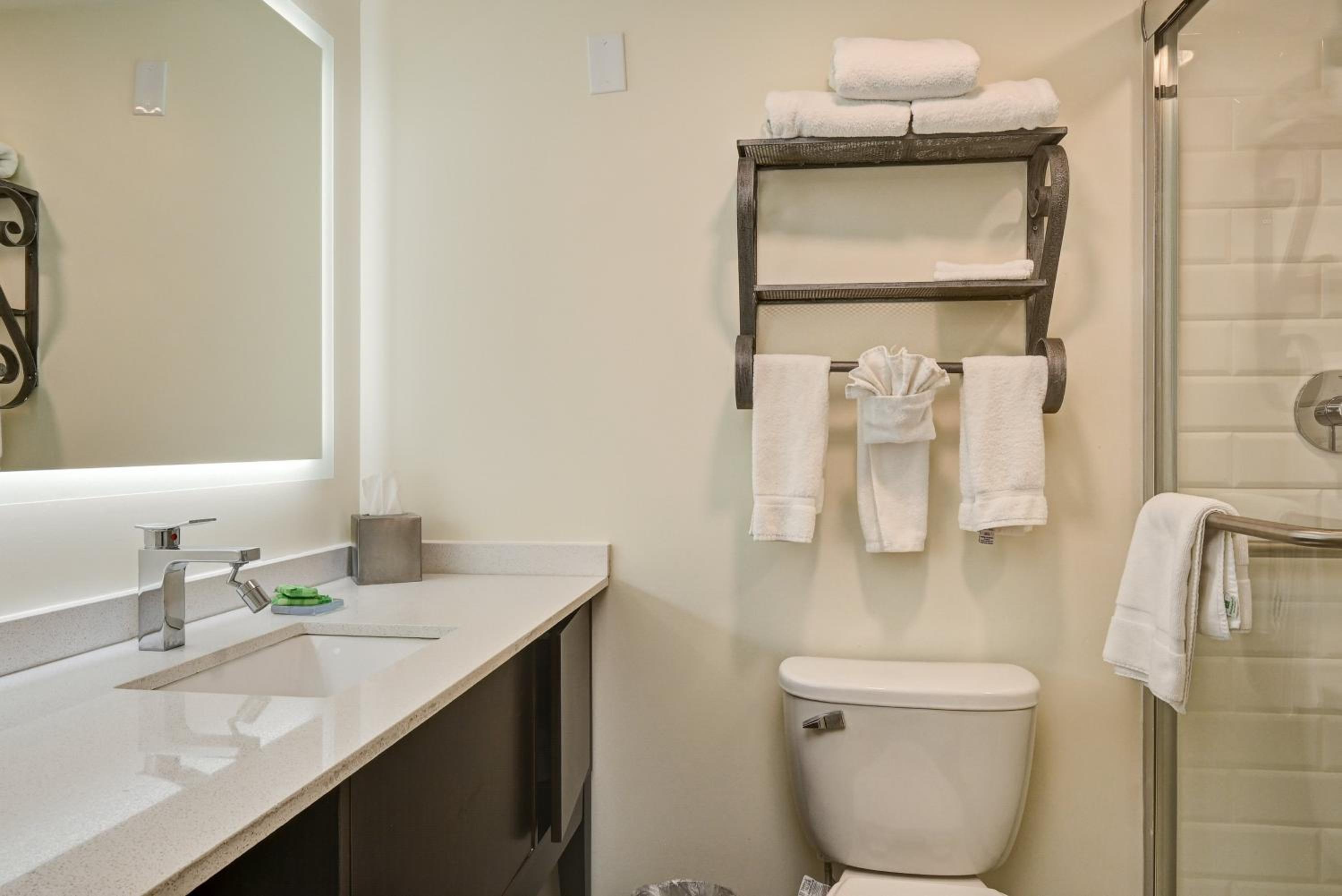 Anyway the front desk agent, even acknowledging that there were many better rooms available as I showed he on the app, said that she was not allowed to give us an upgrade. I explained the IHG Diamond rules to her but she wouldn't budge. She claimed all upgrades had to be done by the manager before 10:00 am (which is nonsense as I know from staying at so many IHG hotels; the good ones upgrade you in advance without asking but all of them will upgrade you upon arrival if available) so I asked her to call the manager but she claimed that she tried and he wasn't available. So we got a standard room, which was on the small side and cheaply renovated, clearly an older motel type property. Bathroom in particular was cheaply redone and low end.