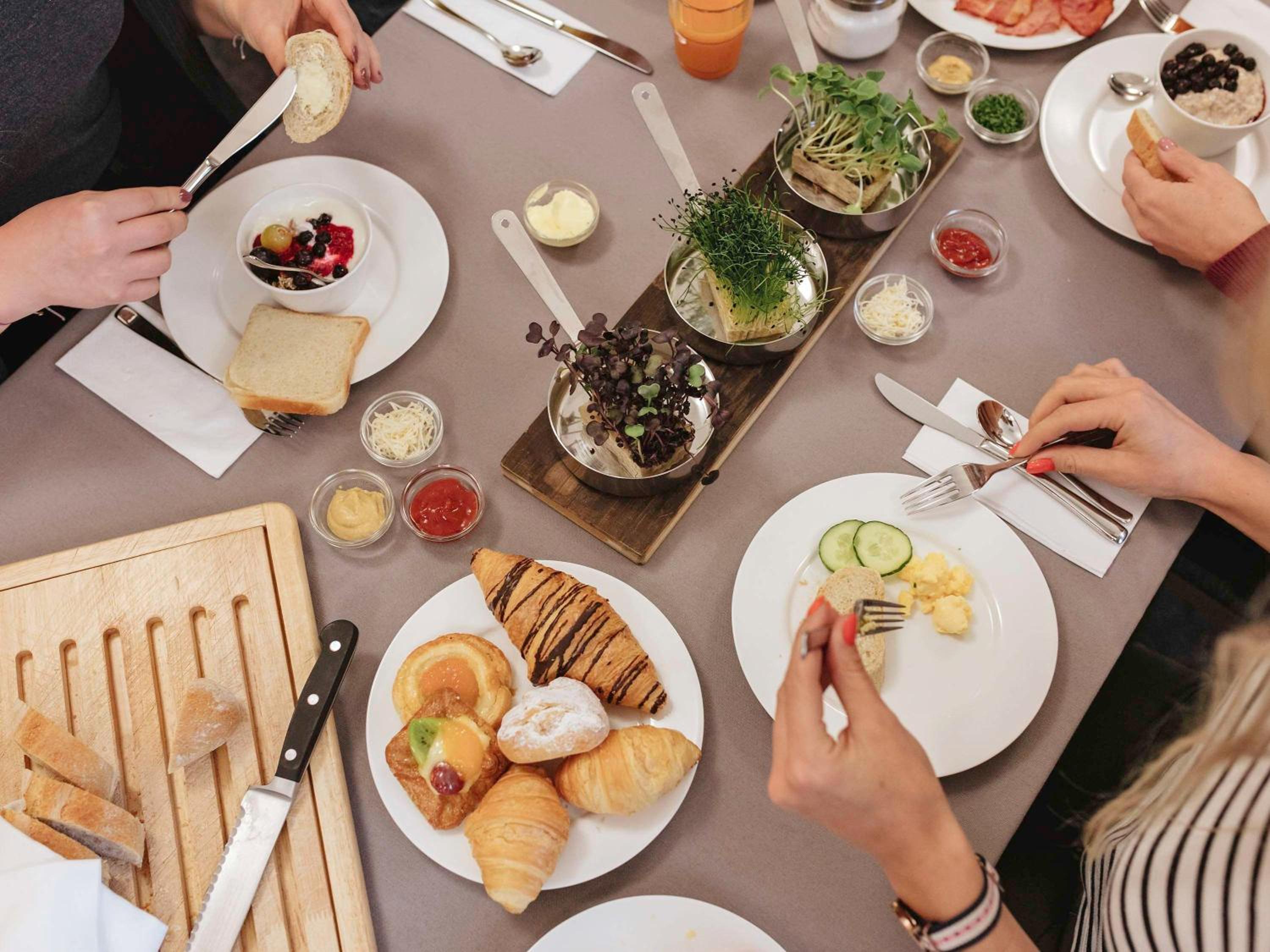 Sehr leckeres Frühstück, große Auswahl, vegetarische Brotaufstriche, glutenfreies Brot. Beim Frühstück auch mega nettes Personal. Bequeme Betten.