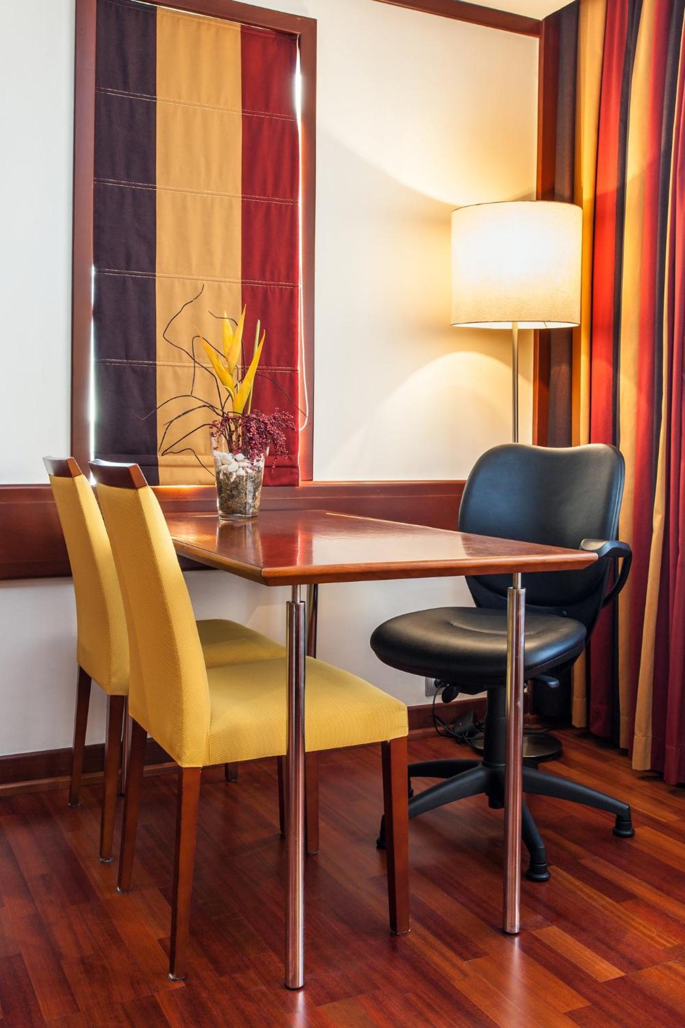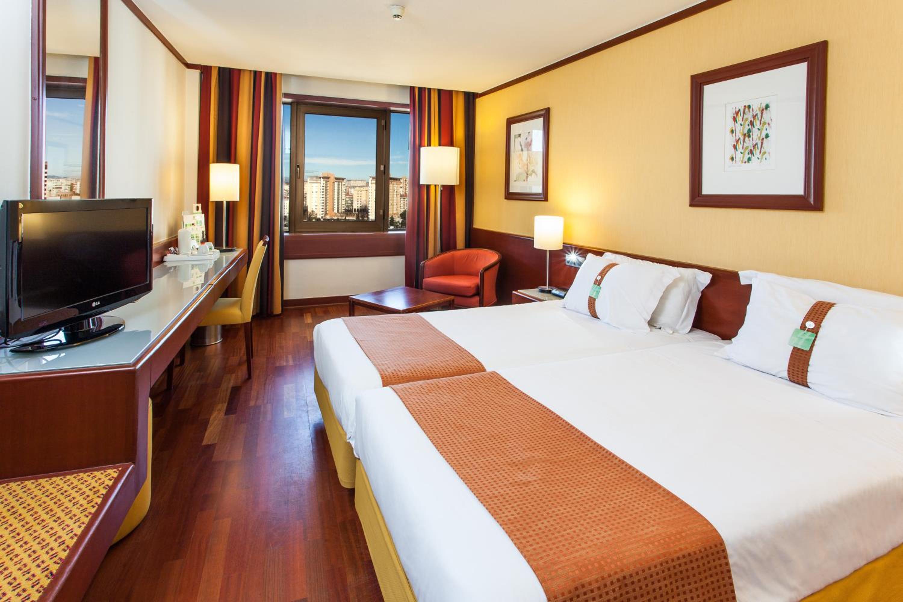 Experience comfort and style in our modern rooms at Holiday Inn Lisbon-Continental. Decorated with warm colors and featuring parquet floors, each room is equipped with a flat-screen TV, electric kettle, work desk, and an en suite bathroom.