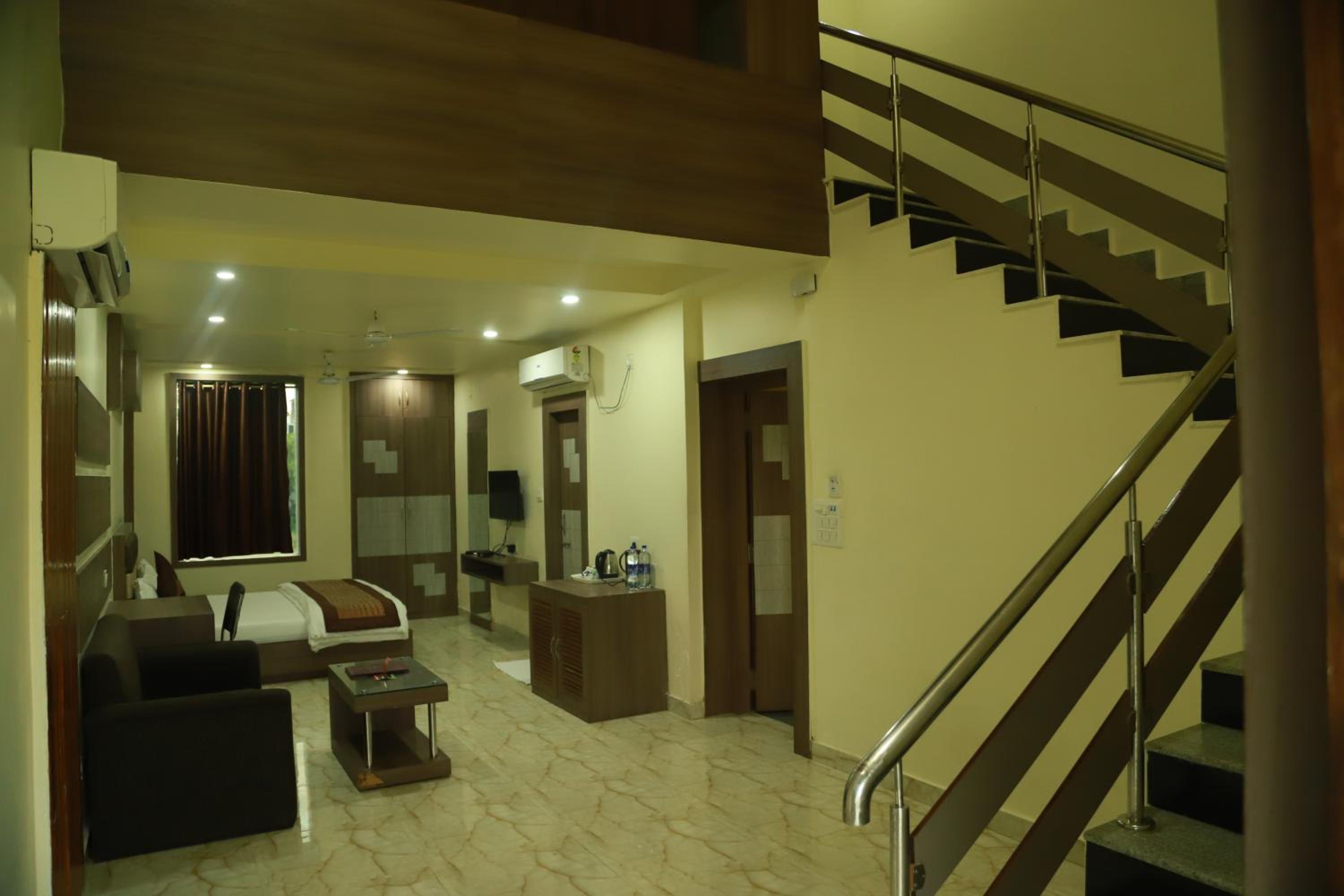Hotel Sukhdeo Palace in Gaya offers a 3-star experience with picturesque garden and pool views. Each room features modern amenities including a private balcony, flat-screen TV, and cozy bed linens. Guests can unwind in the hot tub or enjoy evening entertainment in the shared lounge.