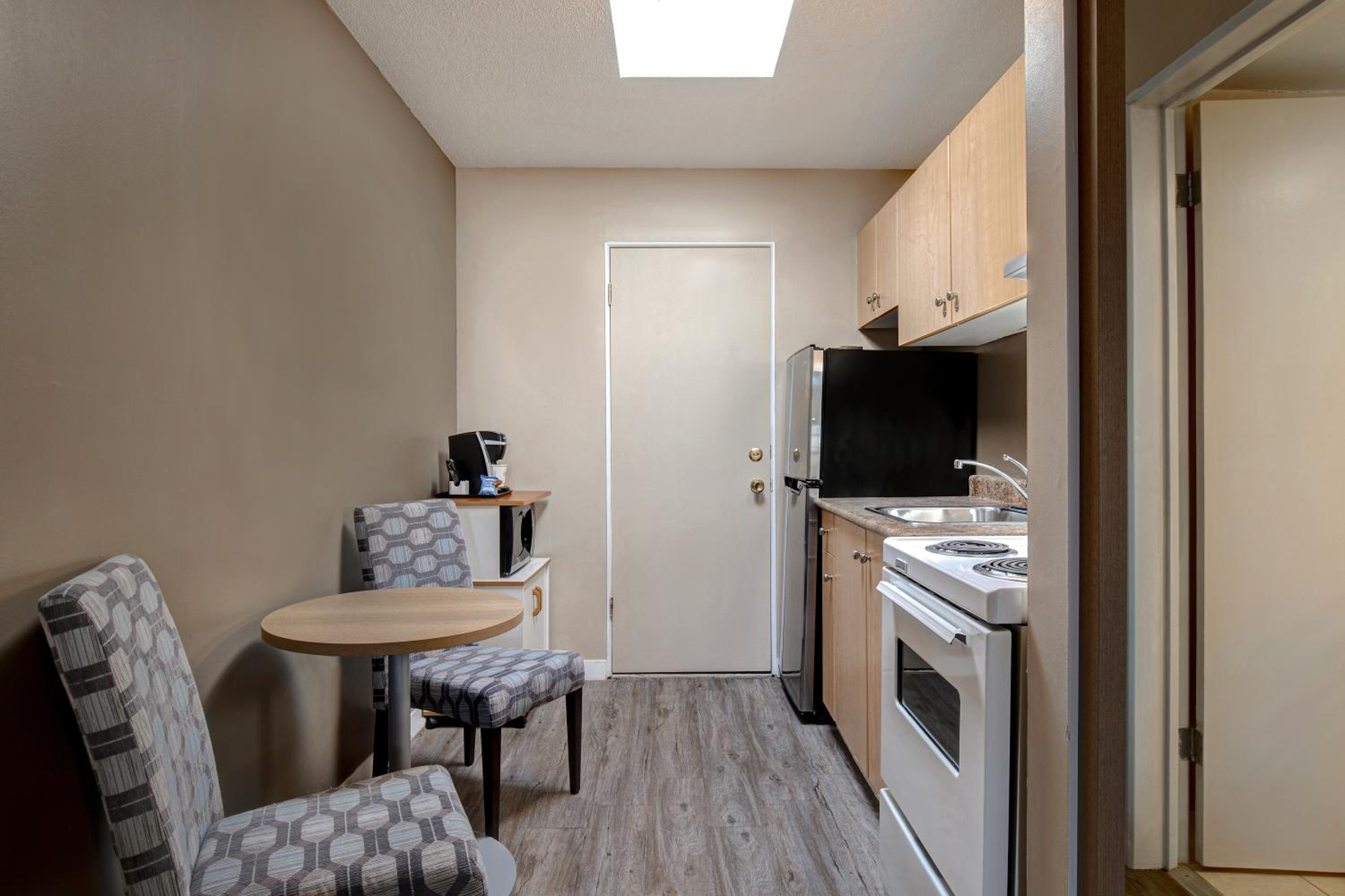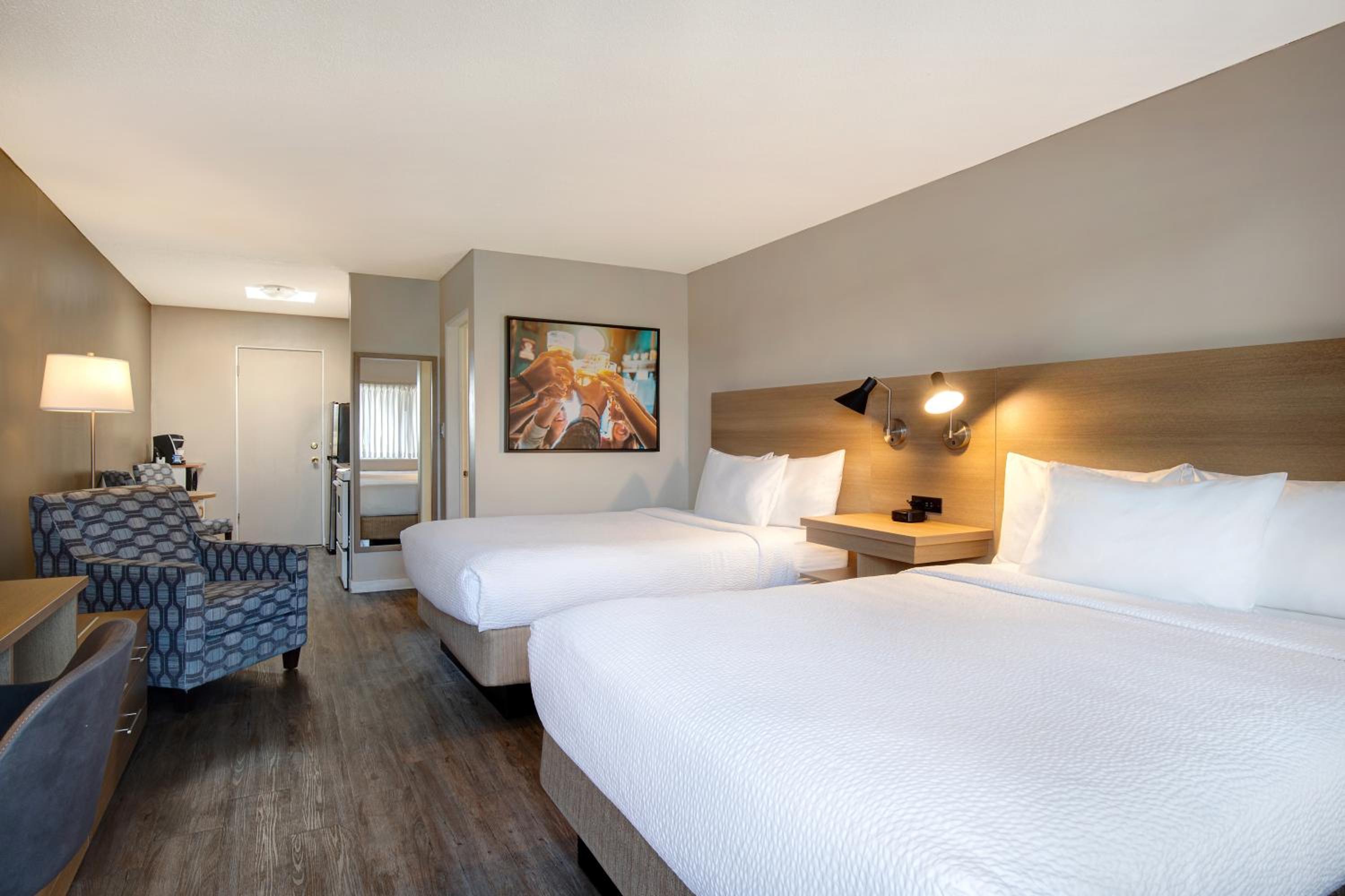 Great hotel for families that is not right downtown but close enough. Older building bur its gives it character. Has a great view especially for sunset and sunrises. Rooms were comfortable and clean and had a kitchenette to save on food costs . Has a pool and small gym nothing fancy but huge bonus to have on site! Easy check in and check out, there is no waiting to get in or out! Lots of parking available. Overall highly recommend and at an exceptional price!
