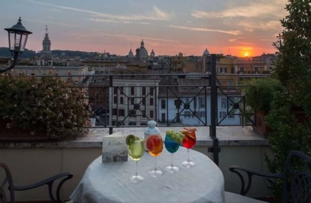 Experience breathtaking views of Rome from our rooftop terrace, the ideal spot to relax after a day of exploring.