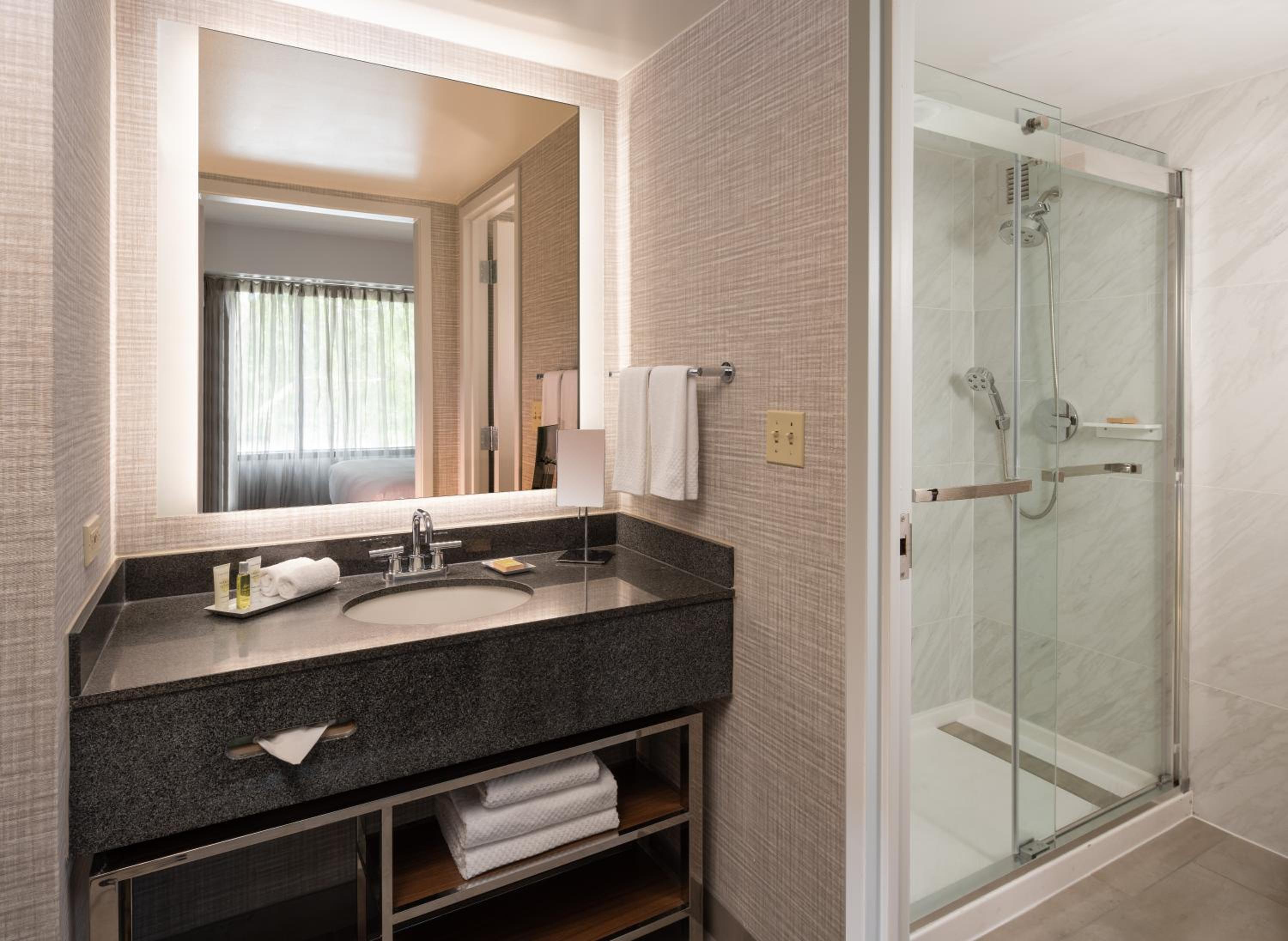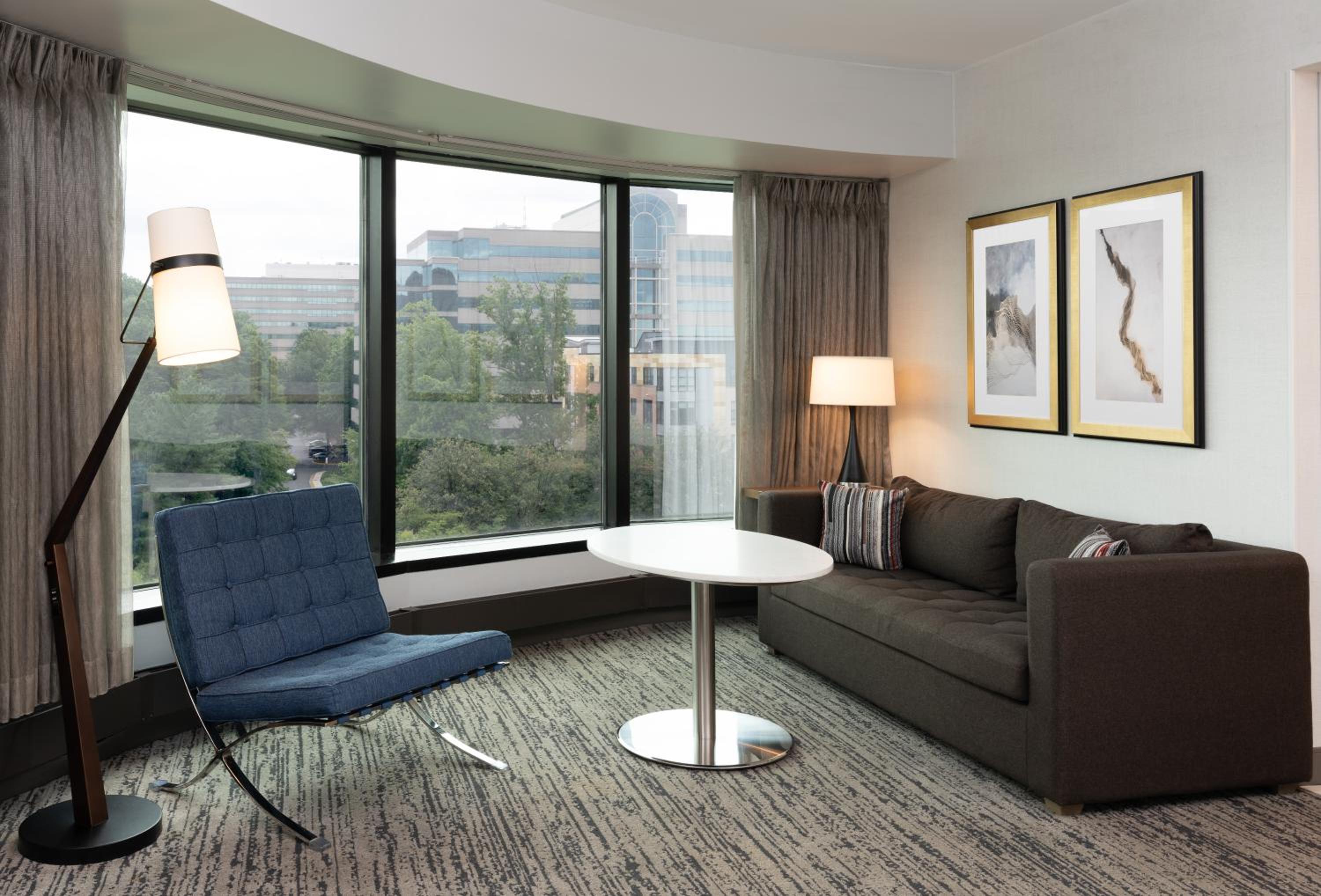 Each room at the Hilton Fairfax boasts a flat-screen cable TV, iPod docking station, and en suite bathroom. Some rooms even feature a comfortable sofa bed. Guests can enjoy the fitness center, 24-hour business center, and hotel-wide WiFi access.