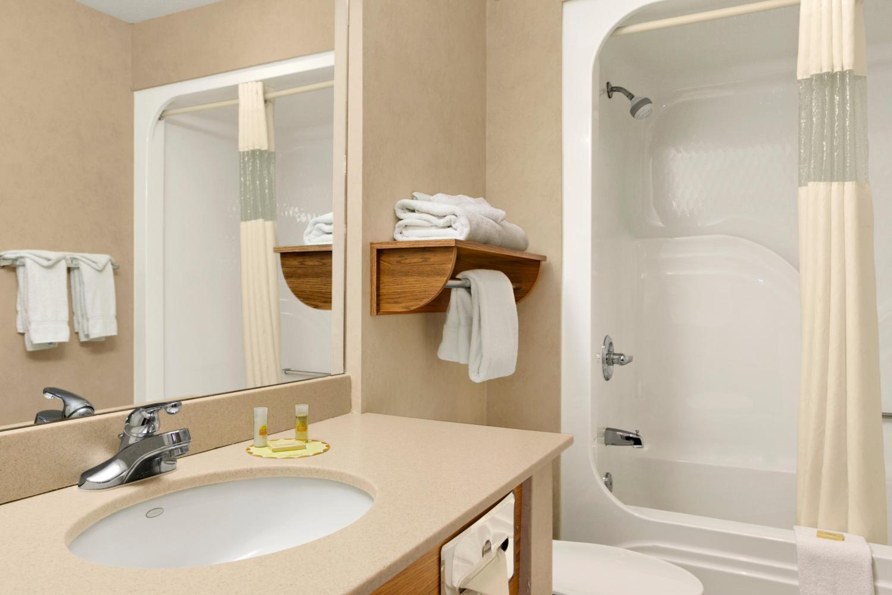 We weren’t given wash cloths with our towels. There was no remote for the tv, and the continental breakfast had about pieces of bread for toast, no milk for cereal, and no fresh fruit or packs of oatmeal!