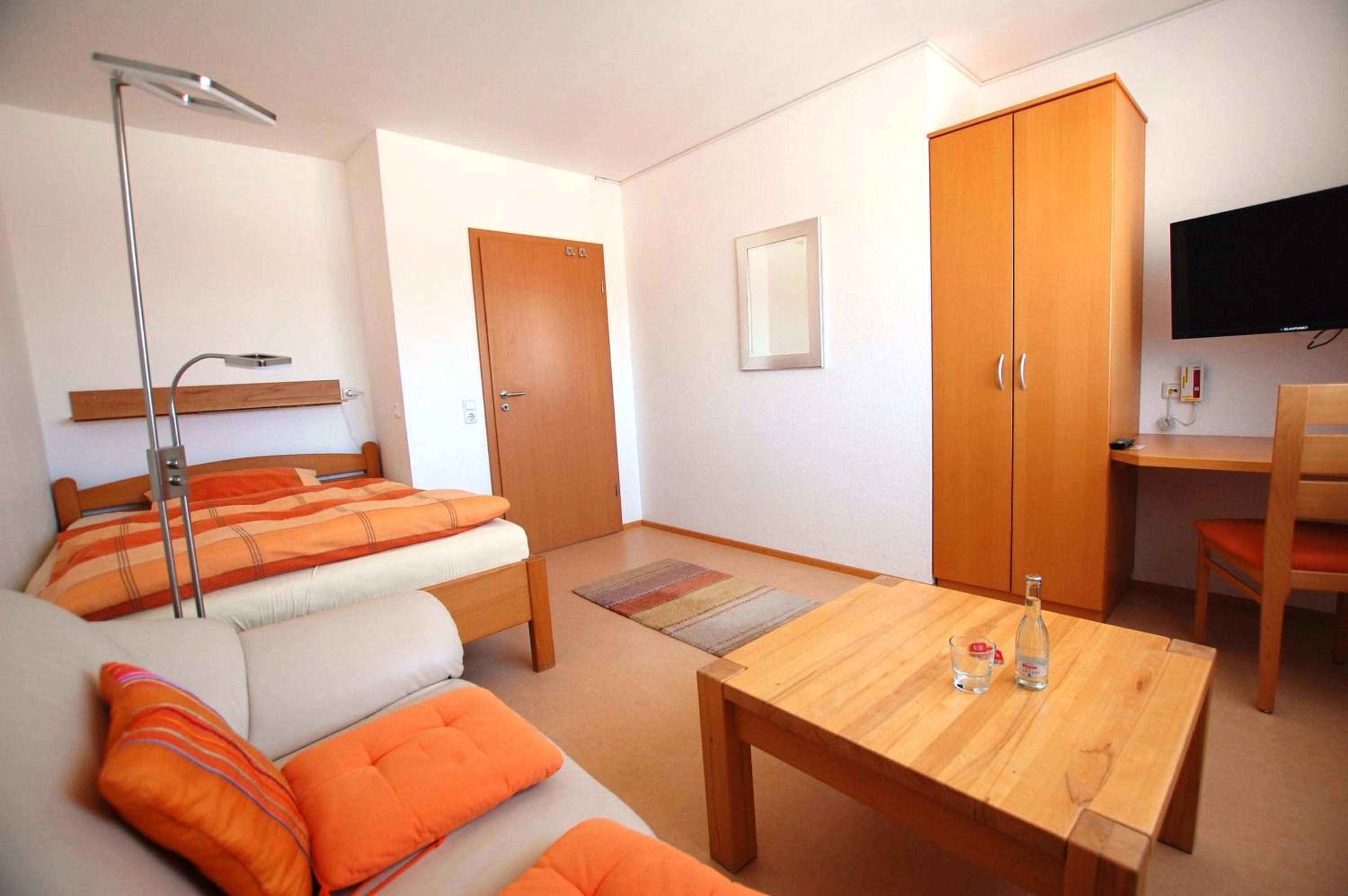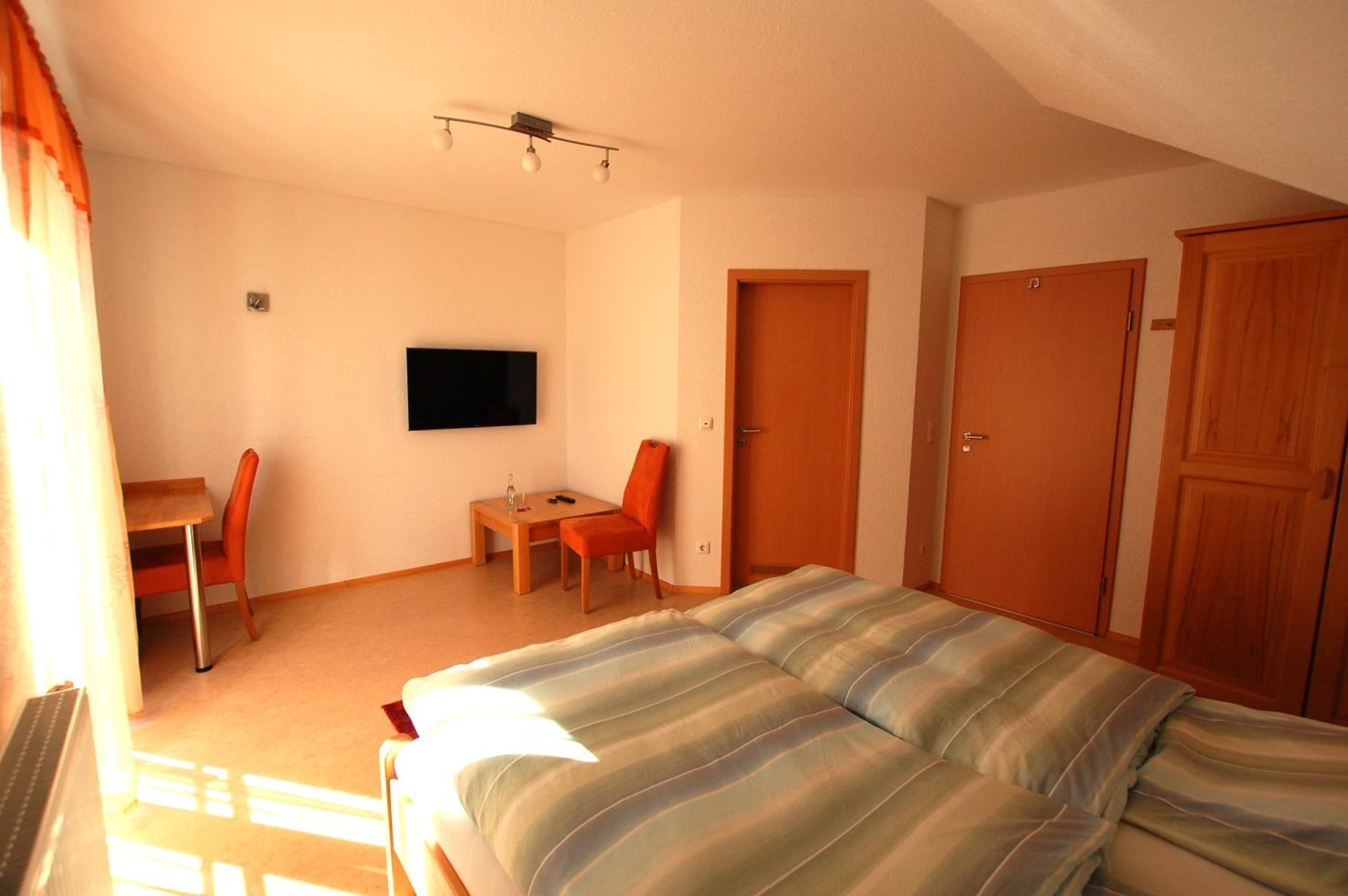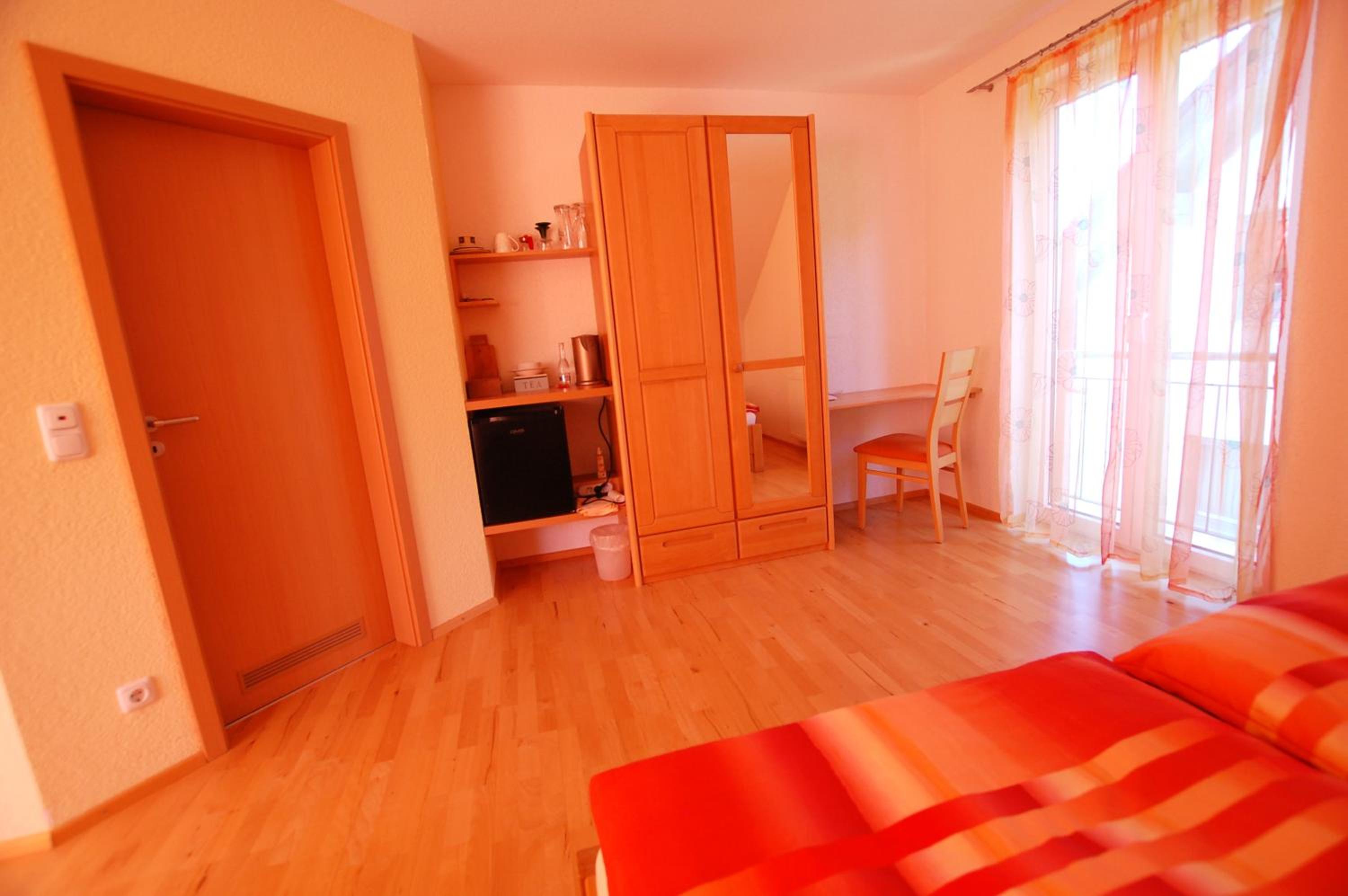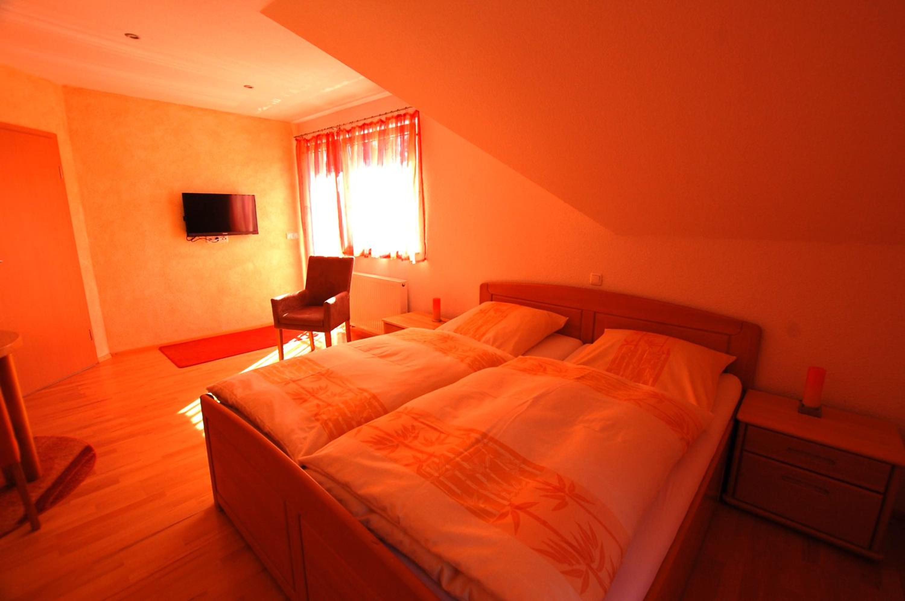 Comfortable Rooms with City View Balconies: The rooms at Gästehaus Jäger are thoughtfully designed with a cozy seating area, flat-screen TV, and modern bathrooms. Some rooms even feature a balcony with picturesque city views, providing a perfect spot to unwind.