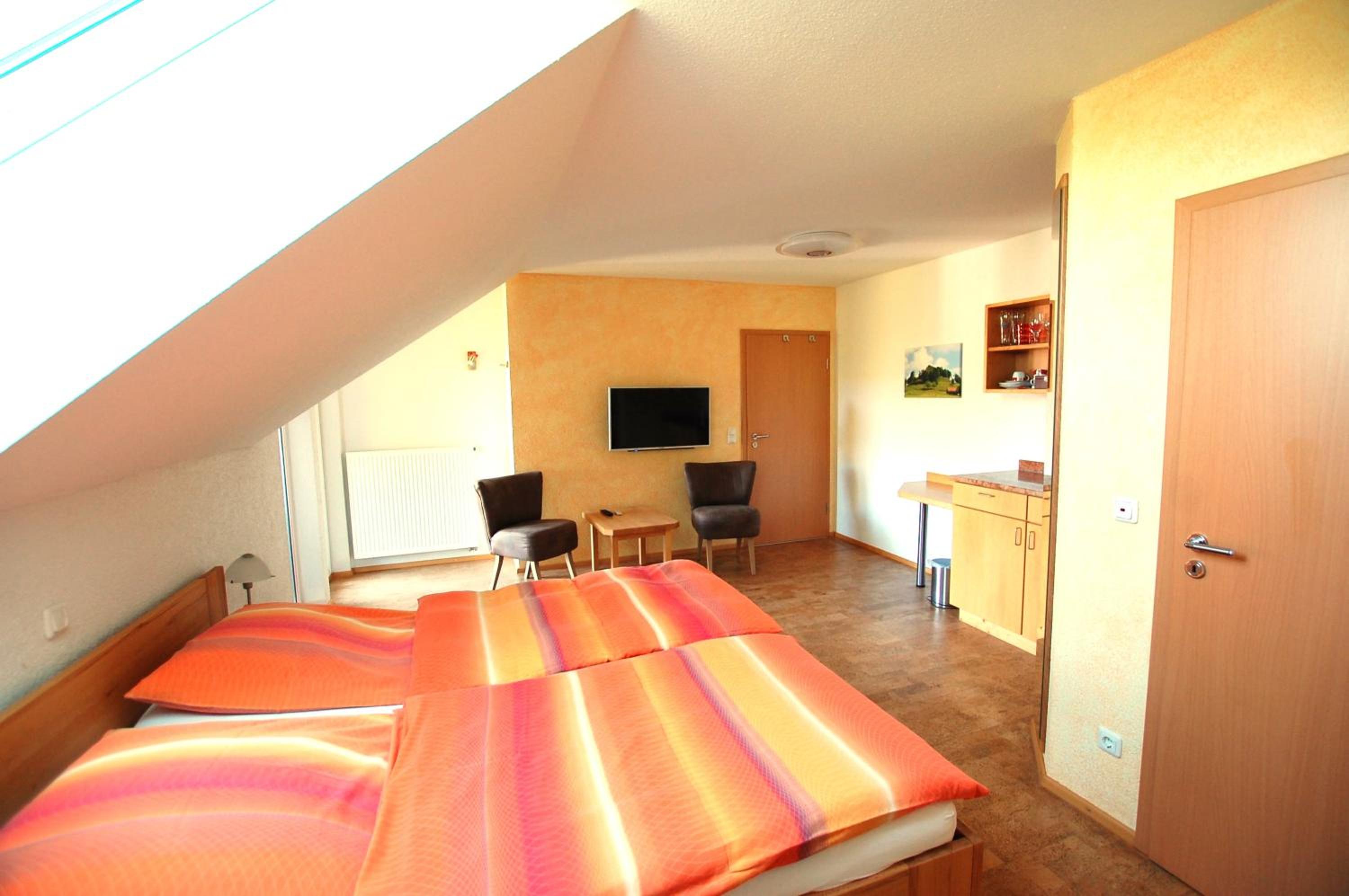 Super und sehr ruhige Lage, großes Zimmer und sehr gute Abstellmöglichkeiten für die Fahrräder. Sehr nette Inhaber. Kühlschrank mit Getränken im Haus vorhanden.