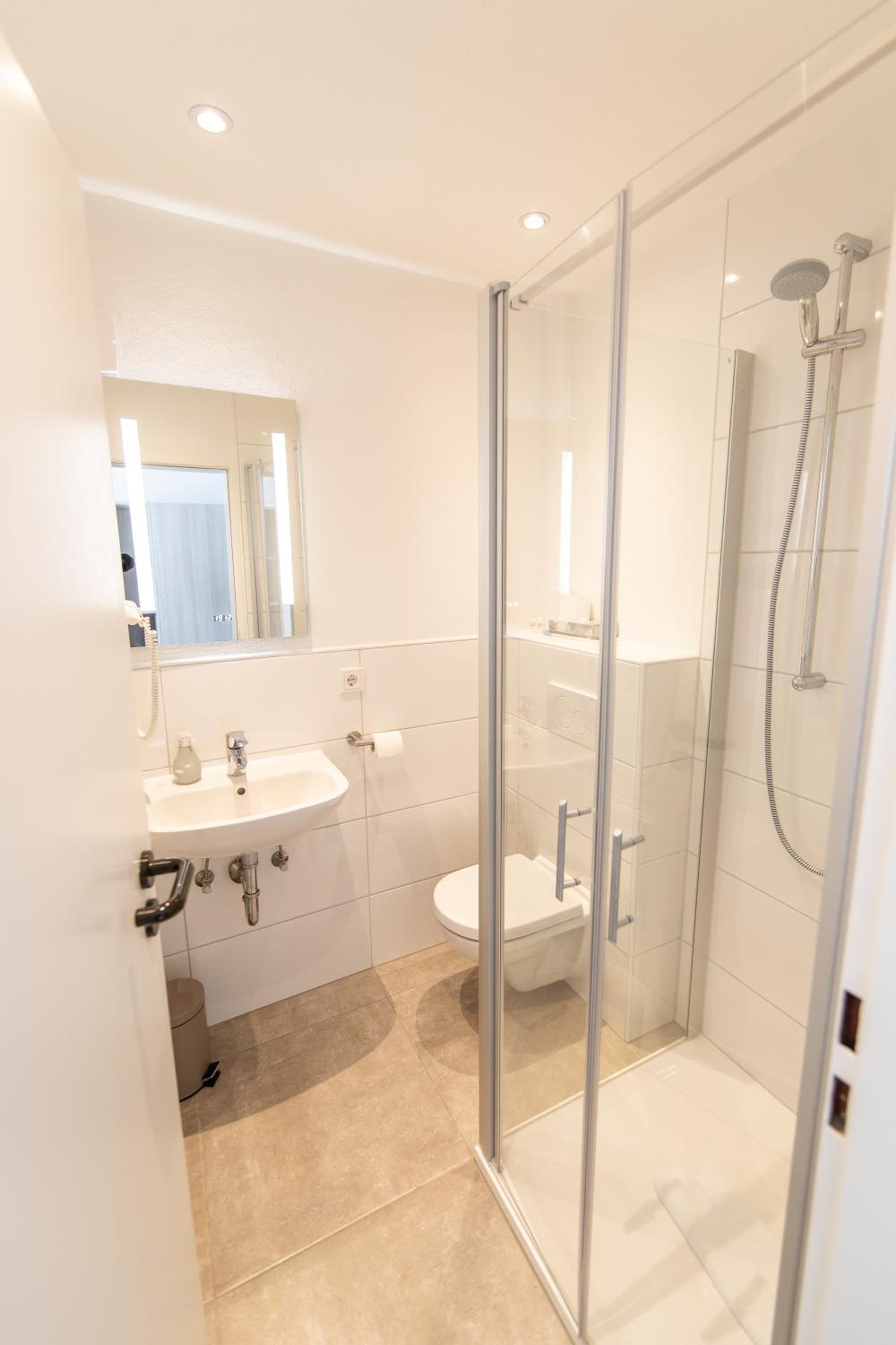 Duschtür schließt nicht richtig, das Bad sehr klein, Lüfter vom Bad zu laut