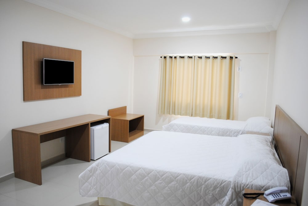 Hotel muito bem localizado, em frente ao Parque das Águas. Quarto grande e confortável. Café da manhã bom, com várias opções de bolos, frutas e pães. Nem precisa retirar o carro da garagem, já que o hotel está a alguns passos do calçadão , onde possui bons restaurantes, cafeterias e lojas . Também existe um supermercado na rua paralela ao hotel .