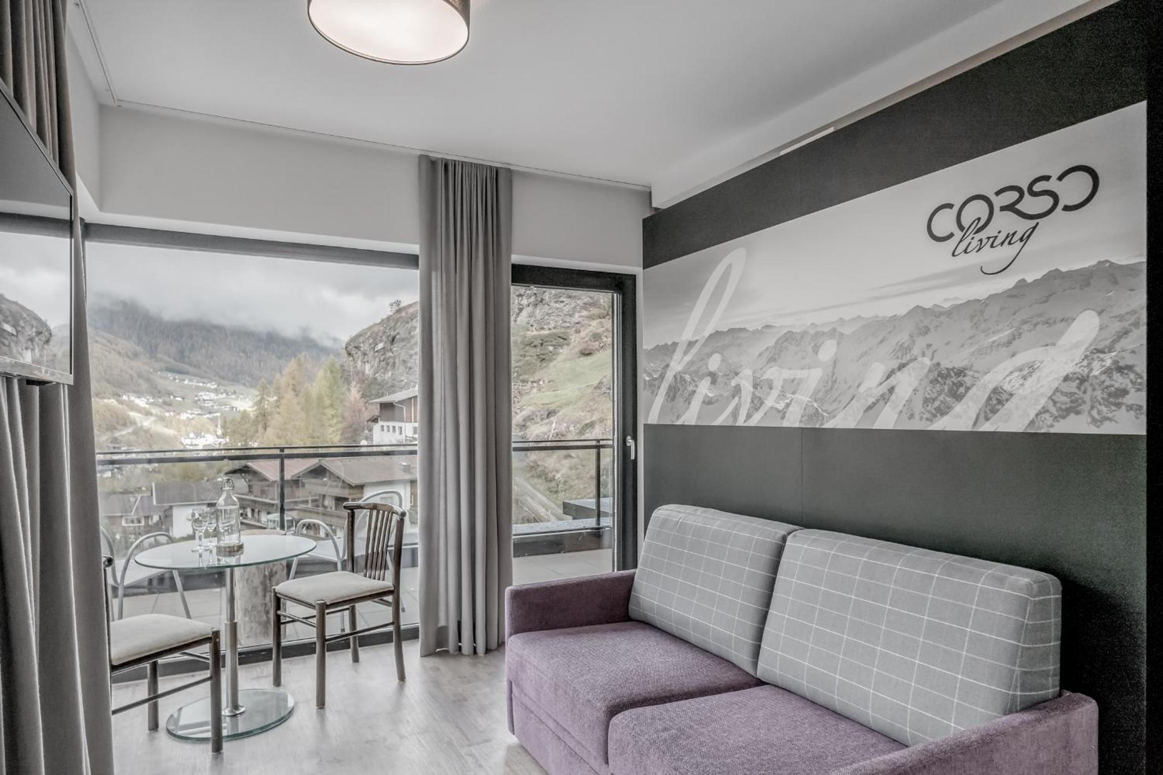 Enjoy breathtaking mountain views from the comfort of your own terrace or balcony at Corso Living. Relax in the seating area or whip up a quick meal in the fully equipped kitchen.
