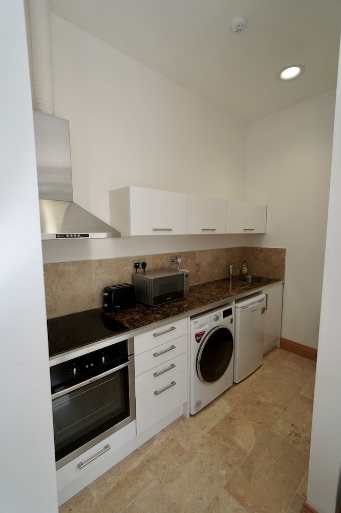 The two of us plus two dogs staid for two nights. The service was excellent and so friendly. The rooms wonderful. The dogs settled in straightaway. Kitchen with fridge for human and dogfood if needed. The parking is on street but plenty of free space in the road. Located in the Devonshire quarter near the Theatre and art gallery.