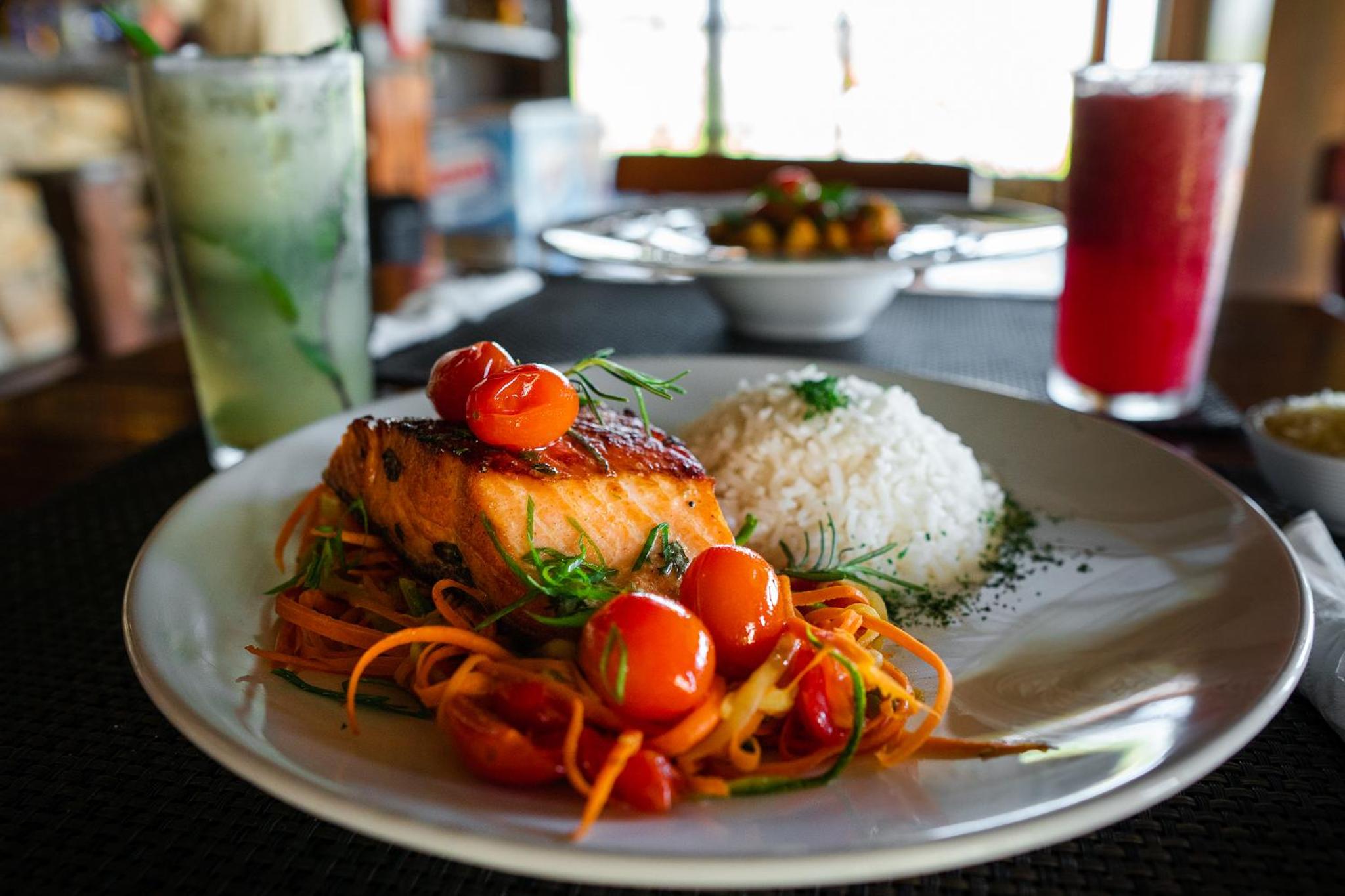 As poucas opções do cardápio quanto a peixes e frutos do mar.