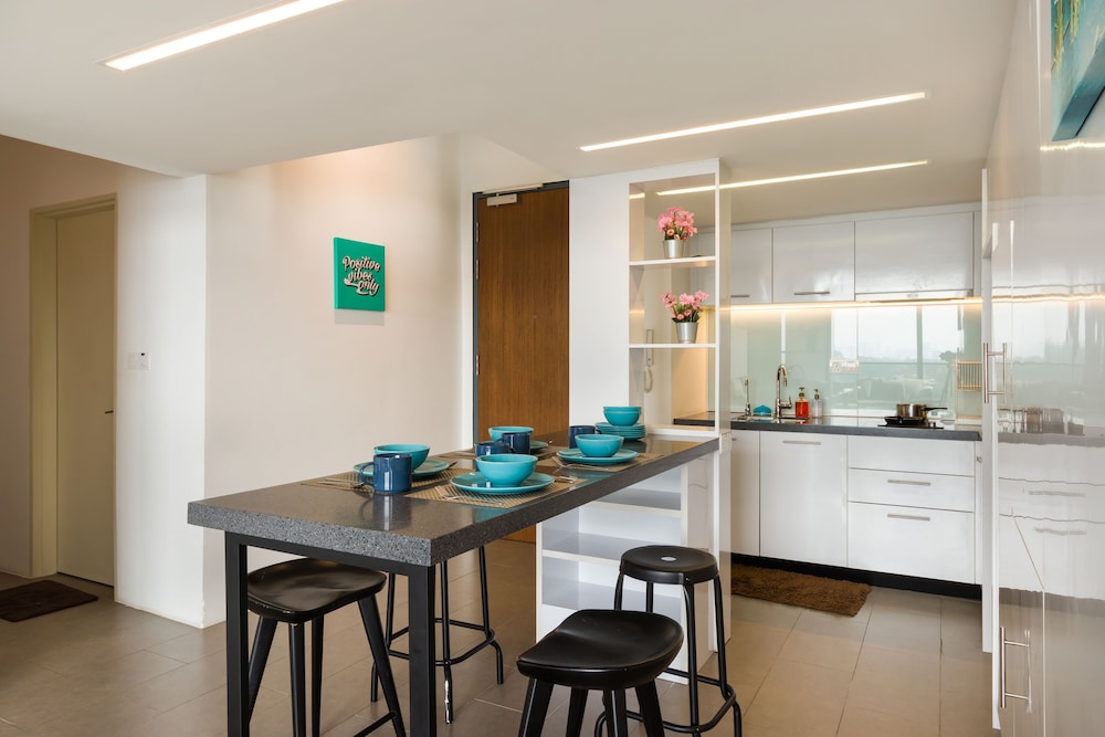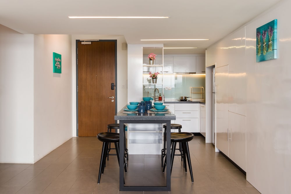 The apartment is spacious and clean with footbridge connected to the nearby MRT station, which is very convenient even under bad weather. There are some nice restaurants on the opposite side as well and very close to the Little Indian District which you can enjoy a little walk from KL Sentral back to the apartment.