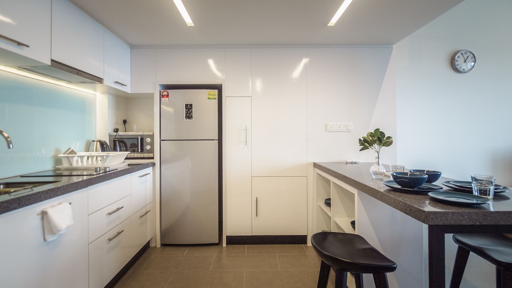 The location is very close to the metro station—the pedestrian bridge to the station was on the 1st floor connected to the property. It is only 1 stop to Sentral station so it is very convenient to get around. The on-site washer and dryer was very handy. The refrigerator didn’t work but the owner made a valiant effort to get it working the first day, then seemed to forget about it. There is no outlet on the bathroom, so hair dries, electric shavers, etc. have to be used in the hall.