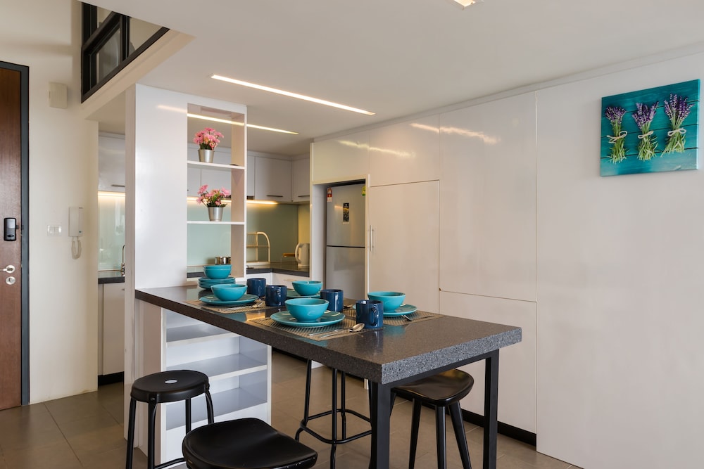 This is another apartment rental, which I was trying to avoid initially, so I was surprised when I arrived, and there was no front desk. Instead there’s a set of instructions on how to retrieve the key and passcodes and attachments with rules what to do and what not to do, etc. 🙄. I stayed for two nights, and it was very quiet and safe. The unit itself definitely needs some refreshing and glass cleaning so it comes off as dingy. Kitchen seemed fairly well equipped but not even a bottle of water for guests. Notably, the bedroom is up in the loft and the ceiling height is only about 165 cm. Also tends to be very hot so you’ll need a lot of AC and fans to be comfortable there. Constant security personnel around the lobby and a doorman. Great views from the 19th floor.