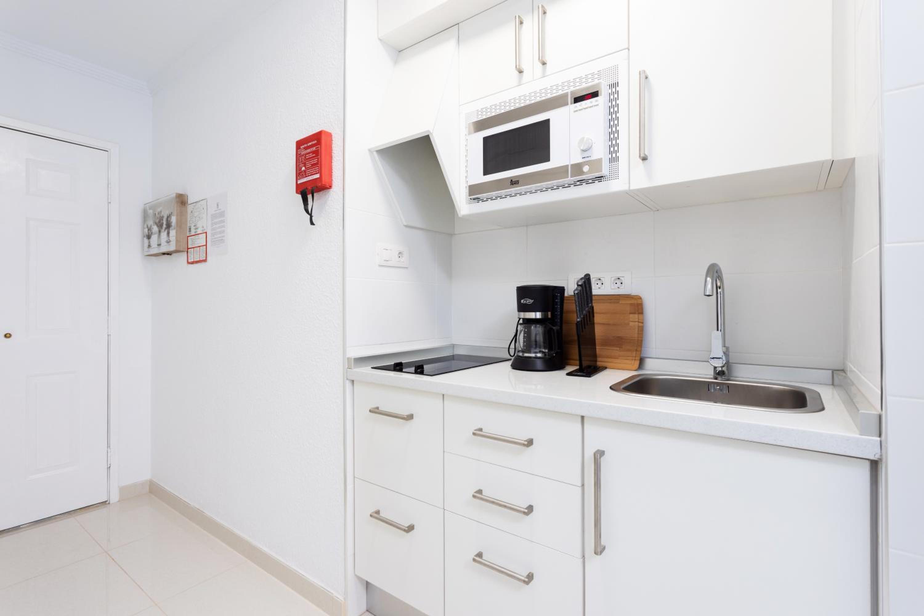 We were expecting a sea view but the unit overlooked the swimming pool . The security shutter was a bit alarming and worried me as to whether it could be opened in an emergency as it was key operated and a little stiff. The shower sliding door was stiff and difficult to operate. The washing machine only washed and didn’t work on spin cycle