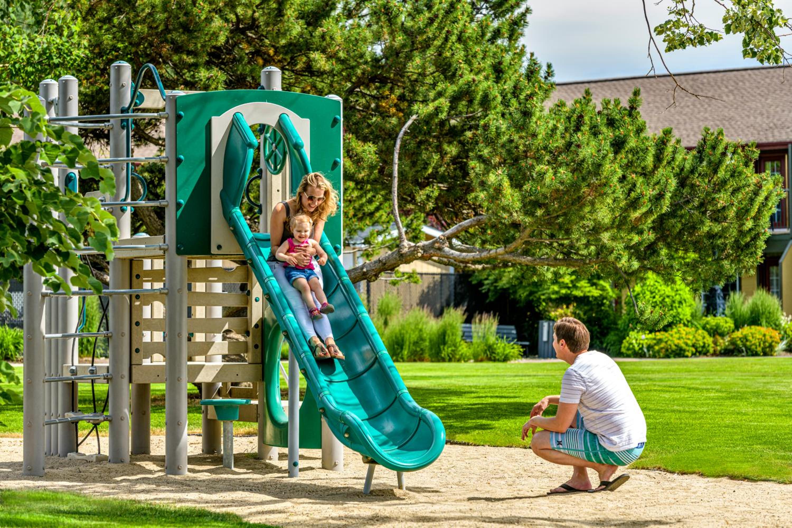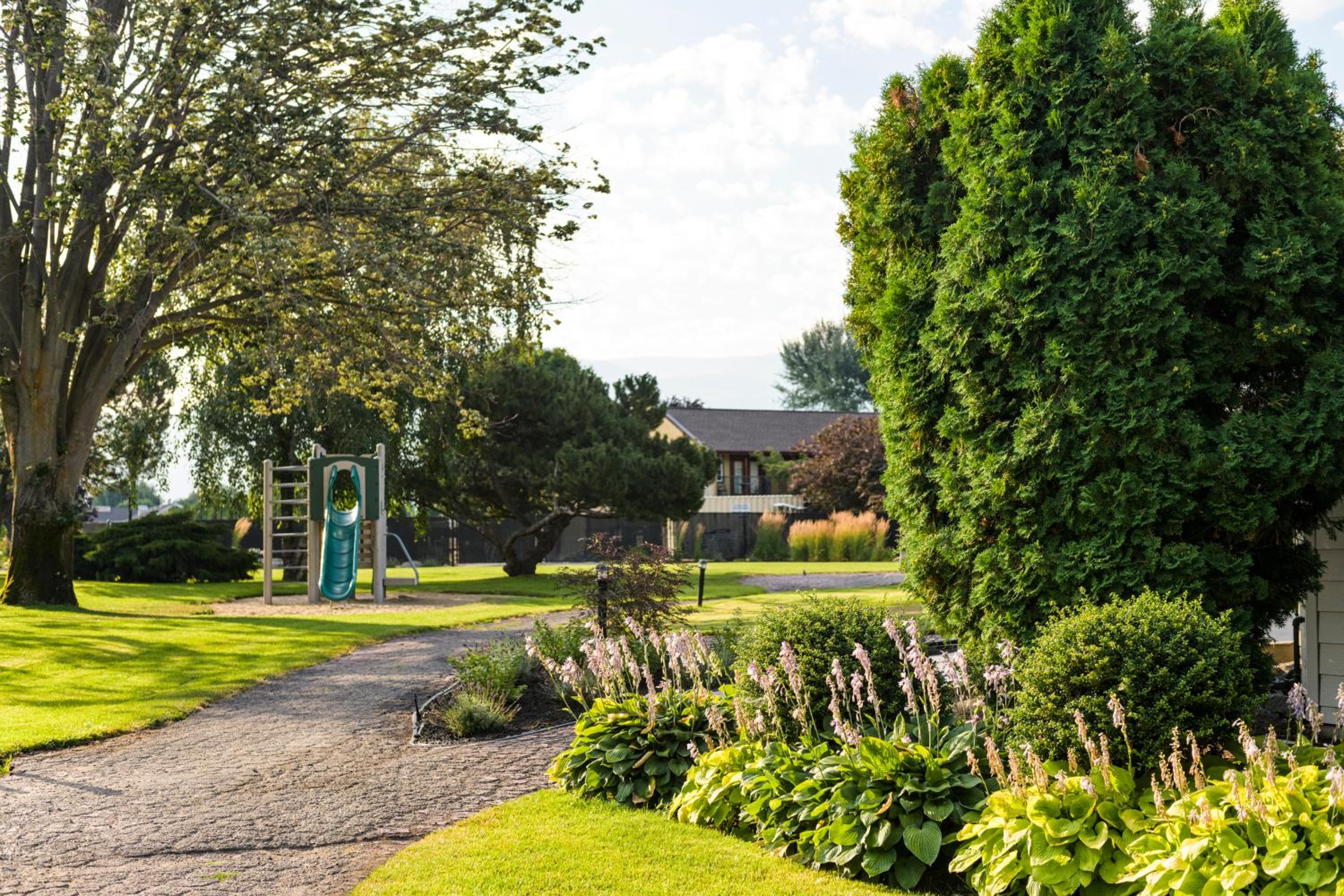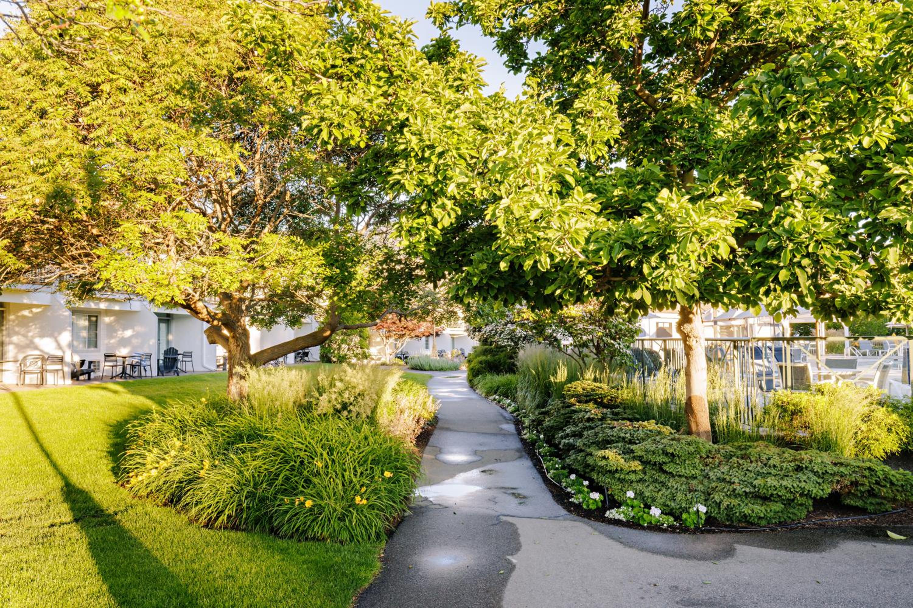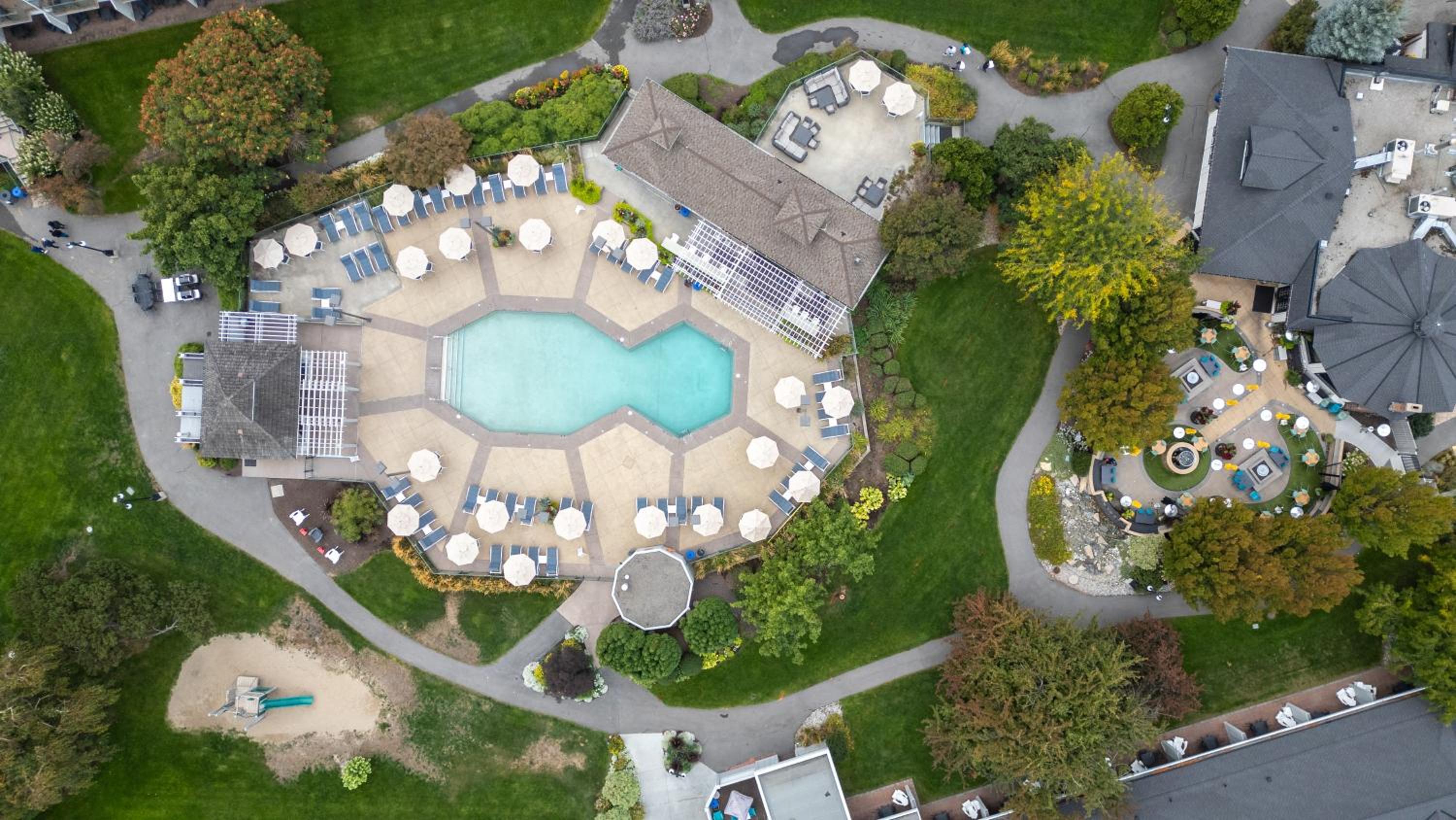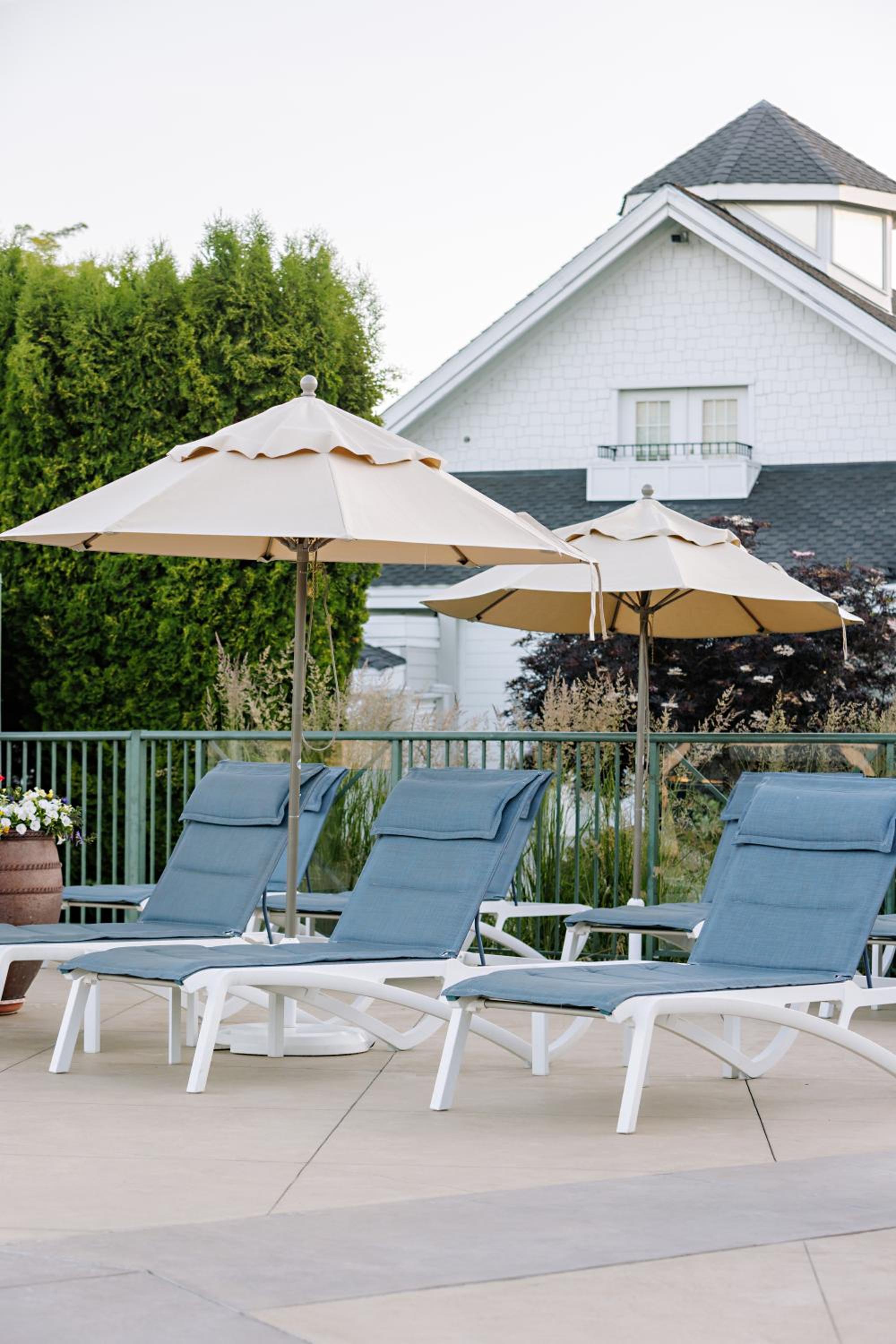 Enjoy stunning mountain skyline views from the outdoor pool and relax in rooms with private garden patios, offering a serene escape in the Okanagan Valley.