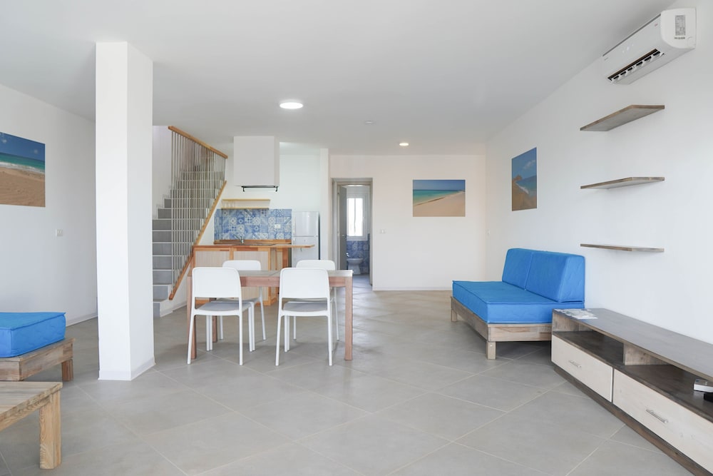 Loved the location of the hotel. 5 mins to amazing beach and lovely private beach area with loads of sun loungers, but also a short walk from town. Rooms worked well for us as a family, with a twin and a double with a lounge/ kitchen. Pool very cold which was disappointing. Good choice of food with lovely salads. Hotel was very multinational, staff were incredibly inclusive and able to speak about 4 languages. We took a few days to realise that there was a beach bar which was also all inclusive as the information wasn’t clear about that.